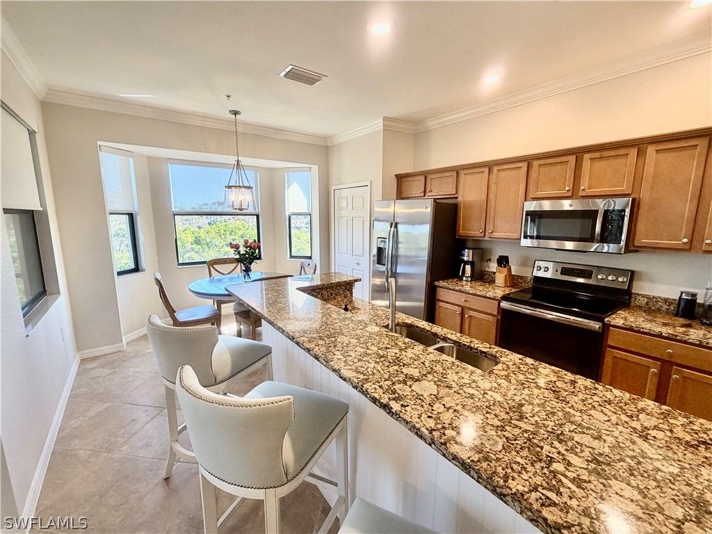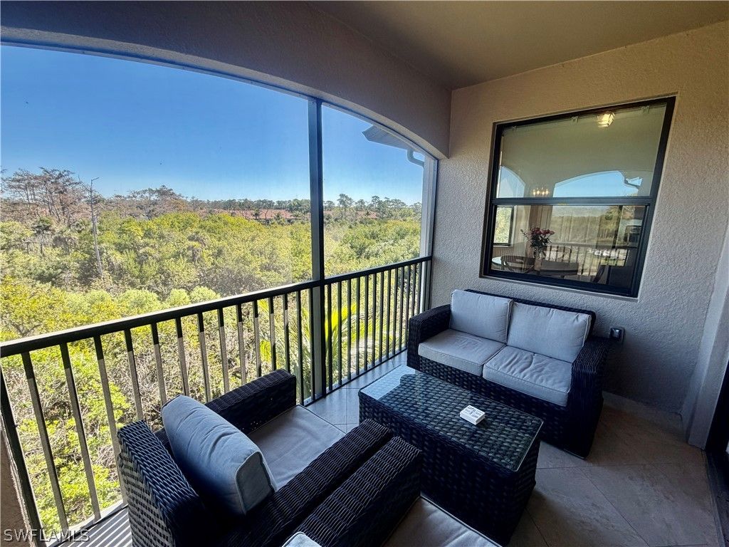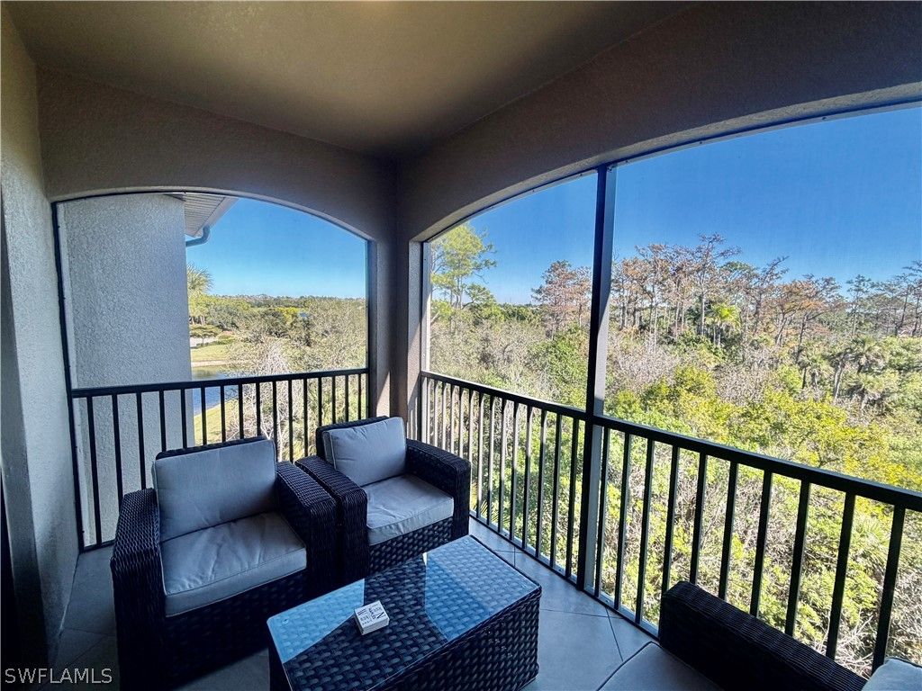 ***TPC BUNDLED GOLF INCLUDED*** Welcome to this beautifully maintained quiet, top 4th-floor condo in the highly sought-after Treviso Bay Golf & Country Club. Built in 2017 this is the newest building in Giaveno. This 2-bedroom, 2-bath residence offers 1,232 square feet of air-conditioned living space with a bright east-facing exposure that fills the home with morning sunlight. Current owners are in residence 3 months per year and it has never been rented. Freshly painted the condo features tile flooring in the main living areas and carpeted bedrooms, creating a light, coastal feel throughout. Enjoy peaceful outdoor living from the screened lanai (updated no-see-um screens & ceramic tile), perfect for relaxing/entertaining. The unit is move-in ready and in pristine condition. Updates include (approximately 40K): Window coverings; Premium queen bed, platform and upholstered head board, queen mattress in guest room; Sofas, 2 purchased from William E. Smith, June 2025; Lanai: sofa plus 2 arm chairs and coffee table; TV's mounted in 3 rooms; Wine Fridge; Replaced a/c coils; a/c serviced every 6 months; Replaced hot water tank 2025; Replaced plastic valves to metal as per condominium specifications 2025; Lanai tiled; Replaced screens in Lanai (no-see-ums); Paint of entire condo; Toilets replaced (2) and faucets. Ideally located across from one of the community’s six pools and just a short walk to the Country Club, this condo is perfect for full-time living, seasonal enjoyment, or investment. Treviso Bay is a gated, amenity-rich community offering bundled TPC golf, 6 pools, clubhouse, fitness center, tennis, pickleball, basketball, bocce, massages, manicure, pedicure, and beauty salon on-site dining, and more. Just 4.5 miles from downtown Naples and 5 miles from the Gulf beaches, shopping, and dining, this property also presents a great rental opportunity when not in use.