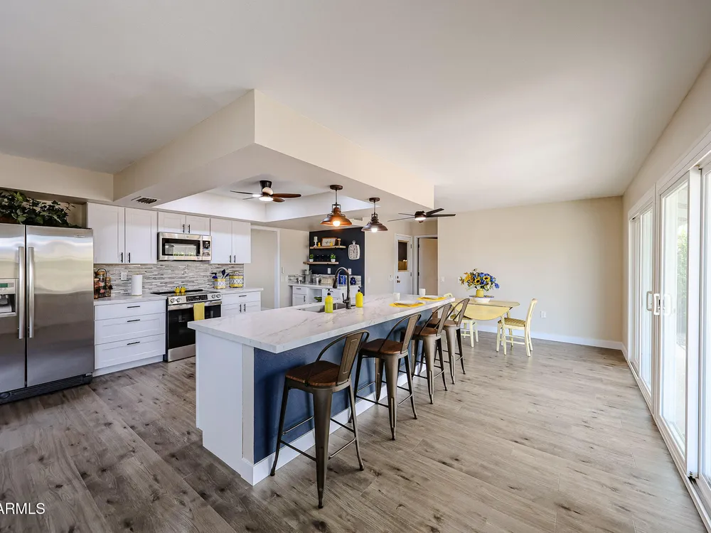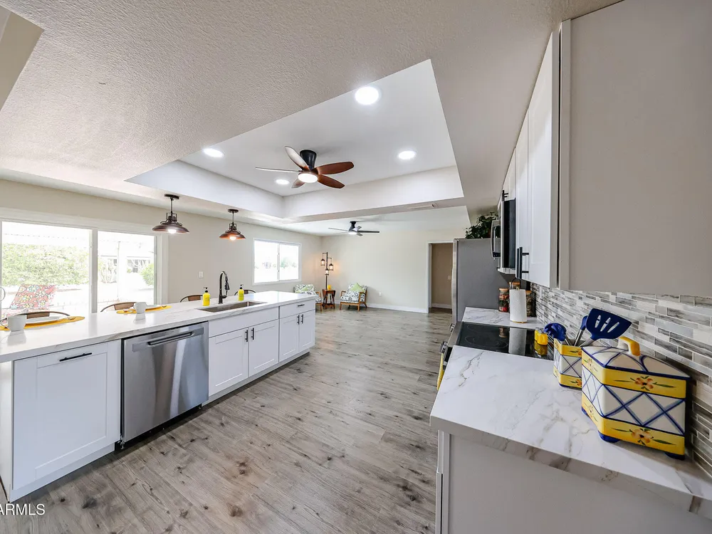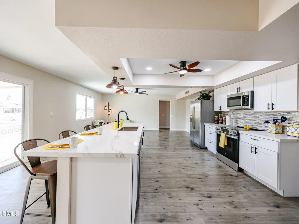 AWESOME REMODEL. THIS HOME WAS BUILT 1979. VERY QUIET AREA. ALMOST EVERYTHING NEW; FLOORS, WINDOWS, NO POPCORN CEILINGS, KITCHEN ALL CABINETS AND TOPS. VERY NICE COFFEE/WINE BAR.NEW.BATHROOM VANITIES AND MIRRORS. WALLS MOVED, NEW TOP IN LAUNDRY CABINETS, ROOF 2019, SEWER 2022, WATER HEATER 2024, HVAC 2024, BEAUTIFULLY REDONE. 13X13 UTILITY ROOM LOTS OF CABINETS. GARAGE HAS A LOT OF STORAGE CABINETS HAS REVERSE OSMOSIS. HAS A LARGE CITRUS COCKTAIL TREE. VERY LARGE COVERED PATIO AND 2 SMALLER UNCOVERED PATIOS. 6 NEW FANS FOR YOUR COMFORT ASSUMABLE HOME WARRANTY/ OWNERS LICENSED REALTORS. EASY TO SHOW
