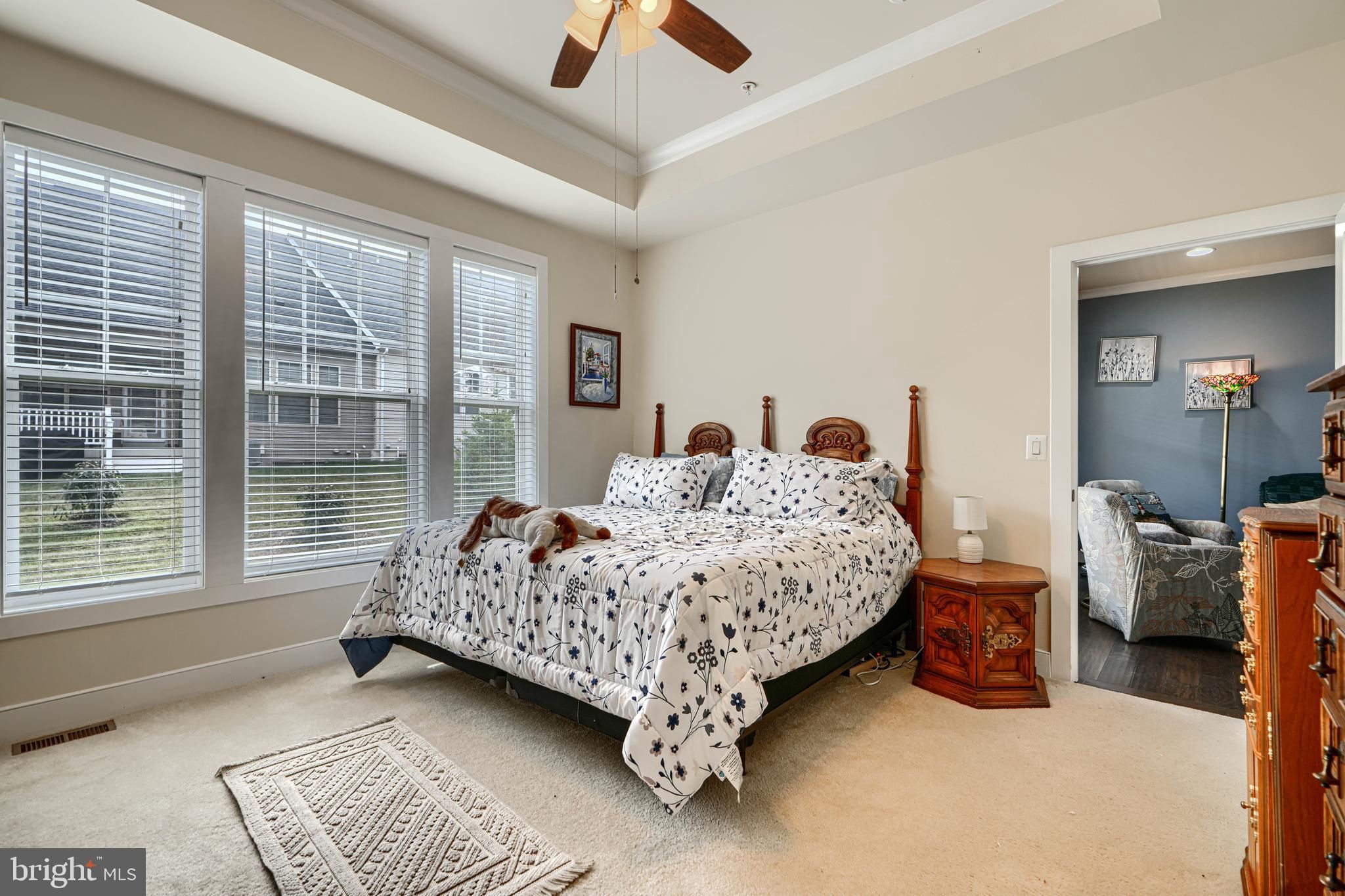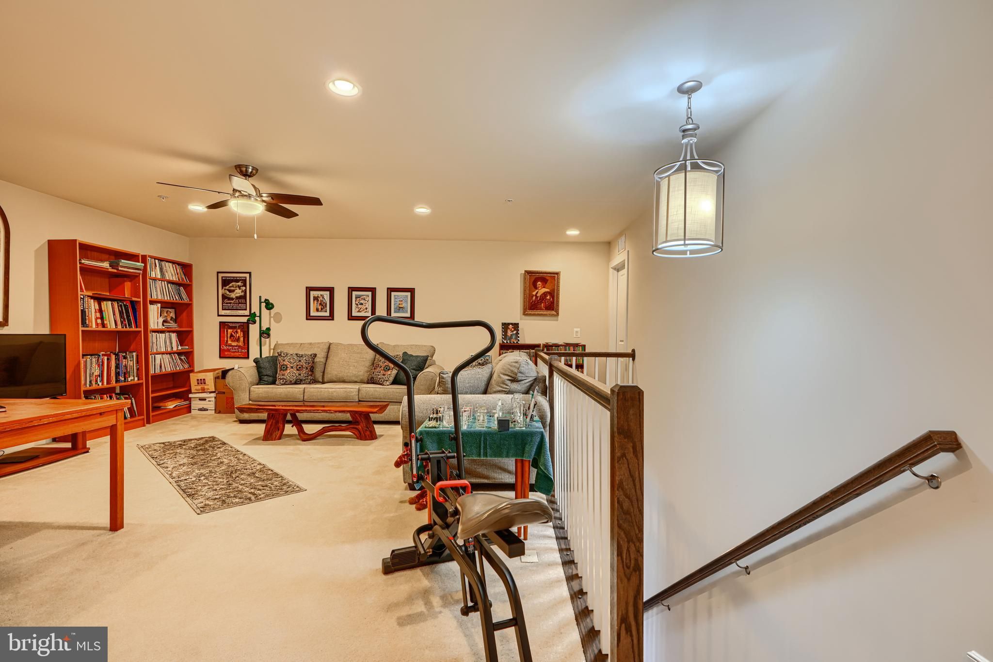 Welcome to Walden Woods! Vibrant adult 55+ community with much to offer you in activities and clubs and little for you to do with outdoor maintenance! Well maintained, looks like new. This home boasts 4 bedrooms and 3.5 baths, but you never have to leave the first level if you don't want to. Main floor welcomes you with foyer, powder room, hardwood floors, gourmet kitchen with gas cooking range, SS appliances, pantry, granite countertops, center island with sink and DW, custom tile backsplash, laundry, 2 car garage off kitchen with no stairs to traverse whatsoever, living area with door to back porch, and primary bedroom with tray ceiling and CF, walk-in closet and primary bath (dual sink, walk-in shower, soaking tub) (powder room and primary bath have raised toilets, grab bars and built-in shower bench). Upstairs has two good-size bedrooms with ceiling fans, an enormous loft for gathering and full bath. Lower level has huge entertainment/rec room space, an extremely large bedroom, full bath, and three storage rooms. Between the two-car garage and the storage rooms, there is ample space to store everything you want. This neighborhood is close to major arteries (Rt 29, 295, 95, Rt 1) and near the Laurel Howard County senior center, and all of Columbia and Laurel and Savage offerings. The location truly can't be beat! Don't delay and make your appointment today.