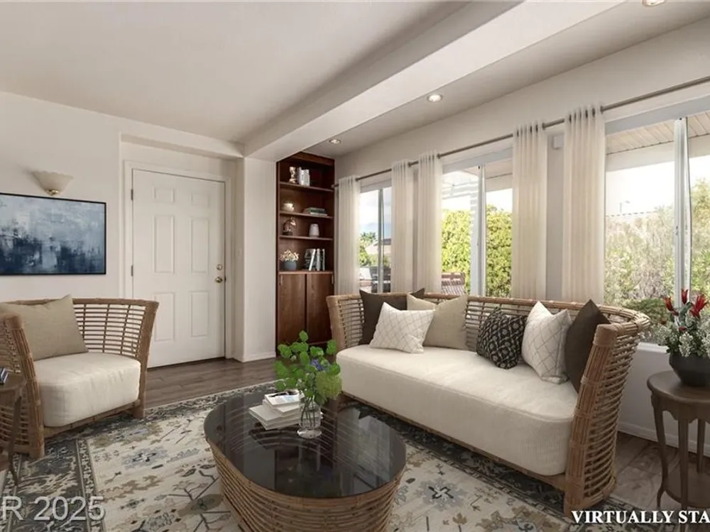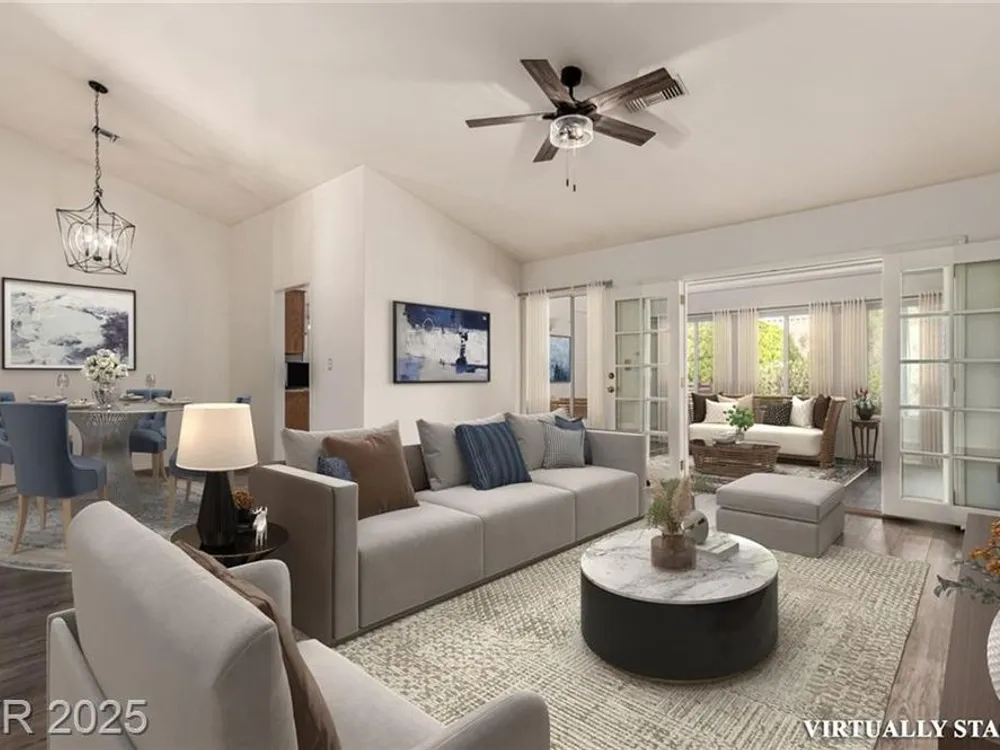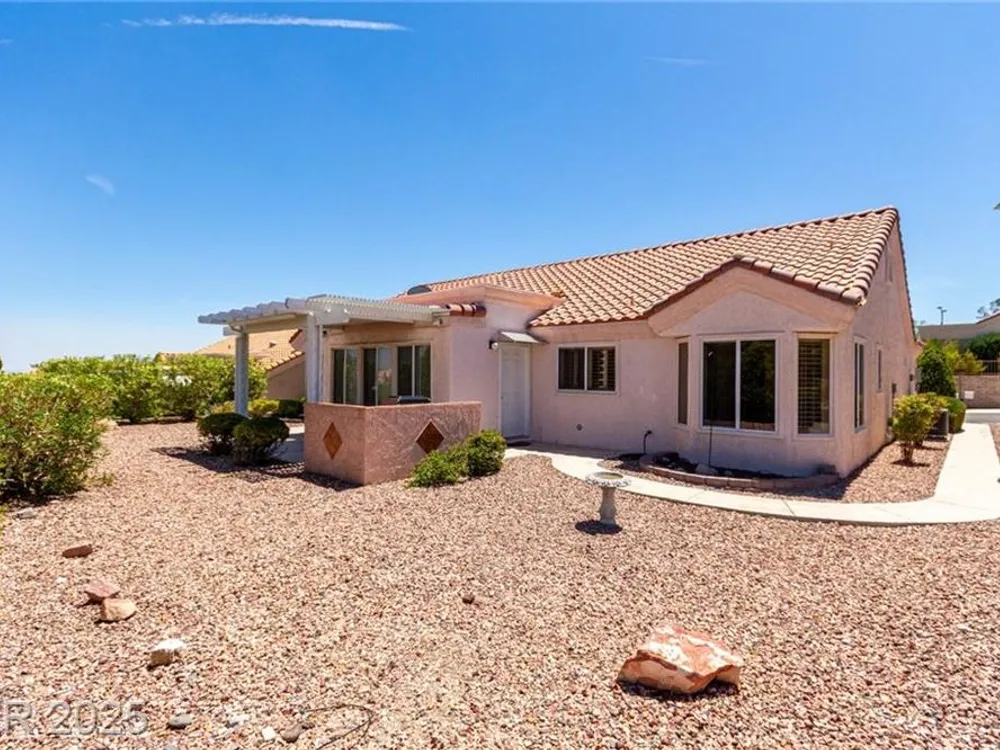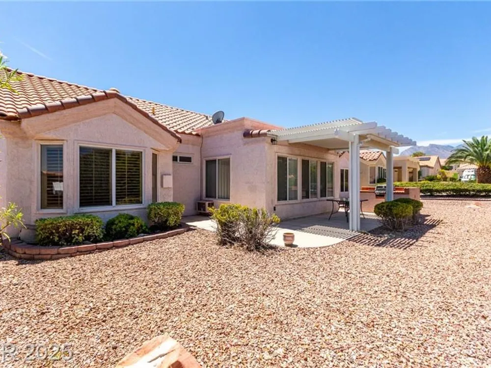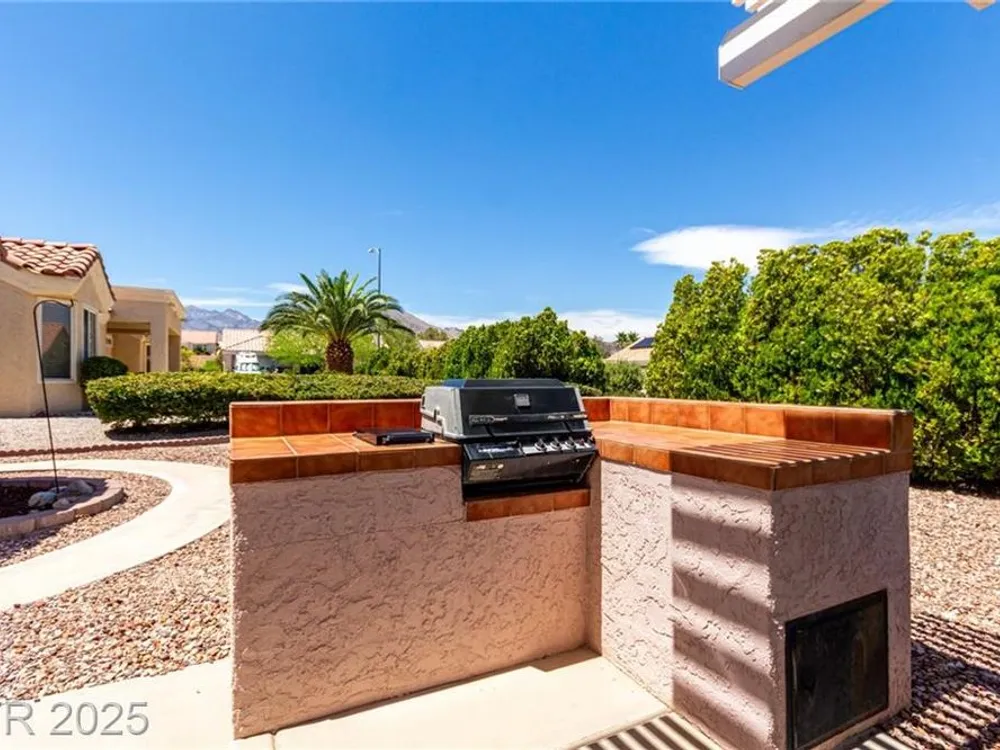 Tucked in the heart of Sun City Summerlin, this sought-after expanded Sandalwood model blends charm, function, and lifestyle. With 2 bedrooms, 2 bathrooms, a den, and an additional 165 sq ft enclosed sunroom not included in tax records, the home offers extra space to relax or host guests. Vaulted ceilings, bay windows, plantation shutters, and warm finishes fill the interior with natural light and comfort. The kitchen features granite countertops, built-in appliances, and a sunny breakfast nook. Step outside to enjoy mountain views from the covered patio complete with a built-in BBQ. With golf, pools, fitness centers, clubhouses, dining, and scenic trails nearby, this is 55+ living in Las Vegas at its most vibrant.