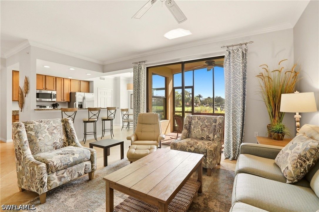 Settle into this turnkey-furnished residence in Venezia at Treviso Bay, where bundled golf, natural beauty, and everyday fun come together in a community built for connection. Bundled-golf opportunities in Venezia are exceptionally rare, and this home is among the select few where it conveys—placing you inside one of Naples’ most social and active golf communities and the only bundled TPC club in the world. The flexible 2-bedroom plus den layout makes living easy whether you’re hosting friends, working remotely, or locking up and heading downtown, while a private garage adds everyday convenience. Step out to the lanai and take in open views of the 11th hole, backed by more than 110,000 acres of protected Rookery Bay Preserve, where alligators sun along the water, exotic birds glide overhead, and deer occasionally pass through the landscape. Life at Treviso Bay centers around the kind of play and camaraderie people move to Naples for, with weekly traditions like Ladies Day on Tuesdays, Men’s Day on Wednesdays, annual championships, 9-and-dines, and popular member-member and member-guest events. Beyond golf, Treviso Bay delivers one of the most complete and vibrant amenity packages in Naples. Residents enjoy two clubhouses, a resort-style pool with full poolside service, a fully staffed fitness and aerobics center, eight Har-Tru tennis courts with pro shop, eight pickleball courts, 24-hour gated entry with patrolled security, and scenic walking paths and boardwalks winding through the preserve. A full calendar of weekly, annual, and holiday events—including popular Sunday brunches—keeps the community social, active, and connected. All of this is set just minutes from downtown Naples, its beaches, dining, and nightlife. This is a rare opportunity to pair championship golf with a truly second-to-none social lifestyle—or enjoy it as the perfect Naples getaway.