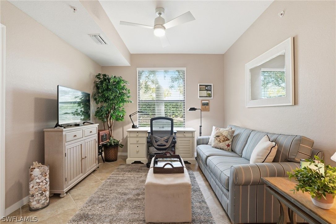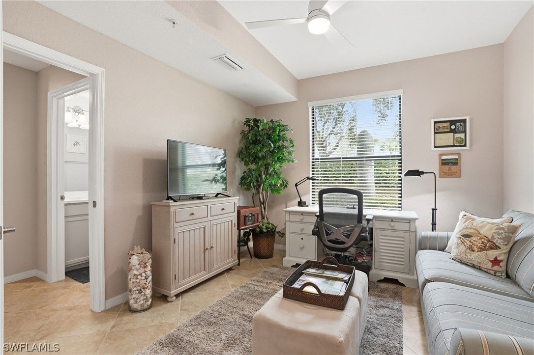 Turnkey Updated 2+Den End Unit with Golf & Lake Views | TPC Membership Included Enjoy sweeping golf and lake views from this first-floor Arabella end unit in Treviso Bay. Offering 2 bedrooms + den, 2 baths, and 1,661 sq. ft., this beautifully updated residence overlooks the 11th tee and includes a coveted bundled TPC golf membership. Designed for effortless Florida living, the open great room floor plan is filled with natural light from expansive sliders that lead to a private screened lanai with panoramic fairway views. Neutral tile flooring, elegant finishes, and tasteful turnkey furnishings create a refined, move-in-ready retreat. The den is currently configured as a third bedroom, providing added flexibility. The updated kitchen features quartz countertops, stainless appliances, abundant cabinetry, and a breakfast bar overlooking the course. The primary suite offers serene views, generous closets, and an updated en-suite bath, while the guest bedroom and updated bath provide comfort and privacy. A detached one-car garage and both front and rear lanais enhance convenience and outdoor living. As a TPC member, enjoy access to the TPC network of courses nationwide, along with Treviso Bay’s resort-style amenities including clubhouse, dining, fitness center, tennis, pickleball, and pool — all just minutes from downtown Naples and Gulf beaches. A rare opportunity to own a golf-included, end-unit residence with exceptional views.