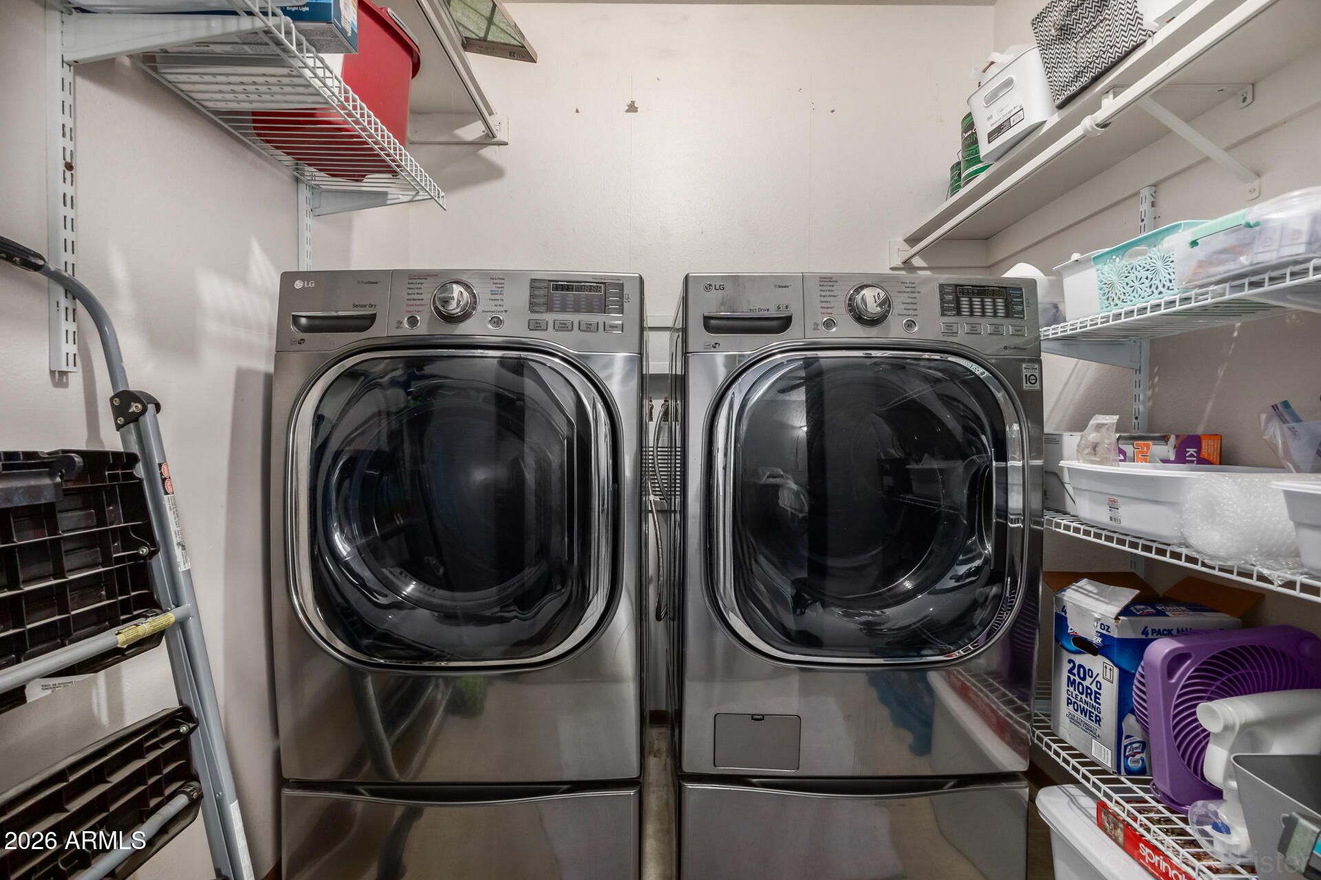 - Stacked Washer/Dryer, Dryer, Washer, Refrigerator, Built-in Microwave, Dishwasher, Disposal