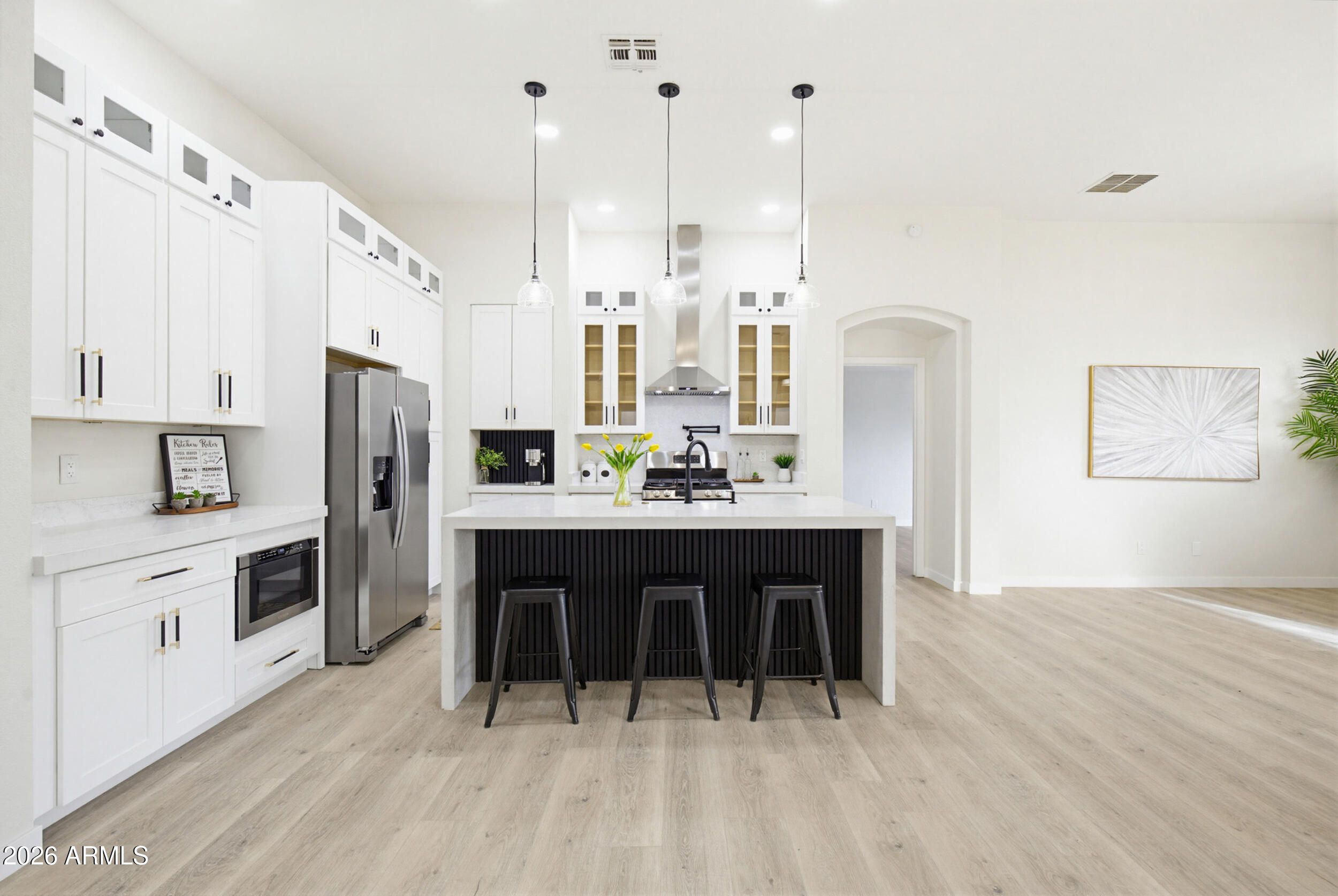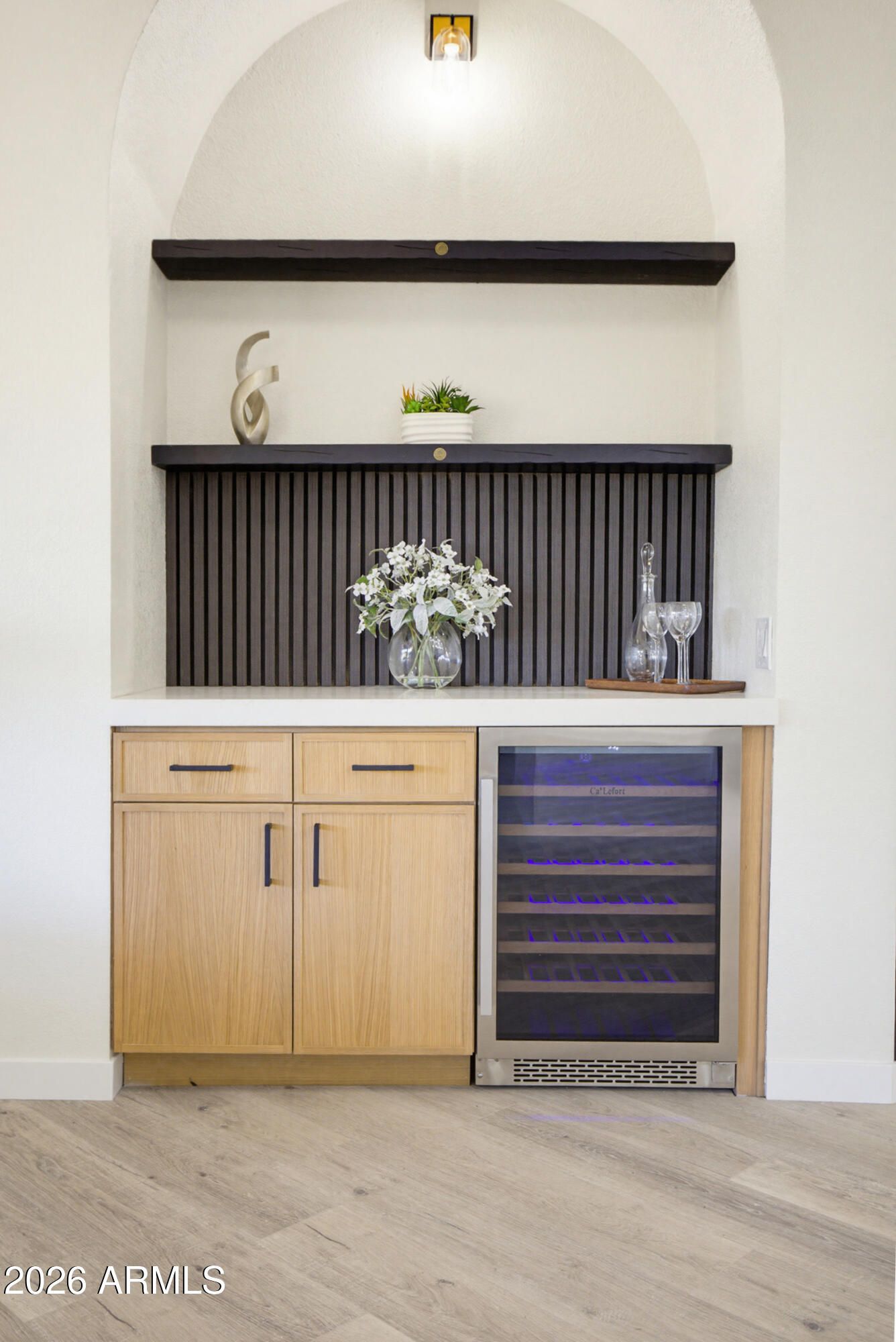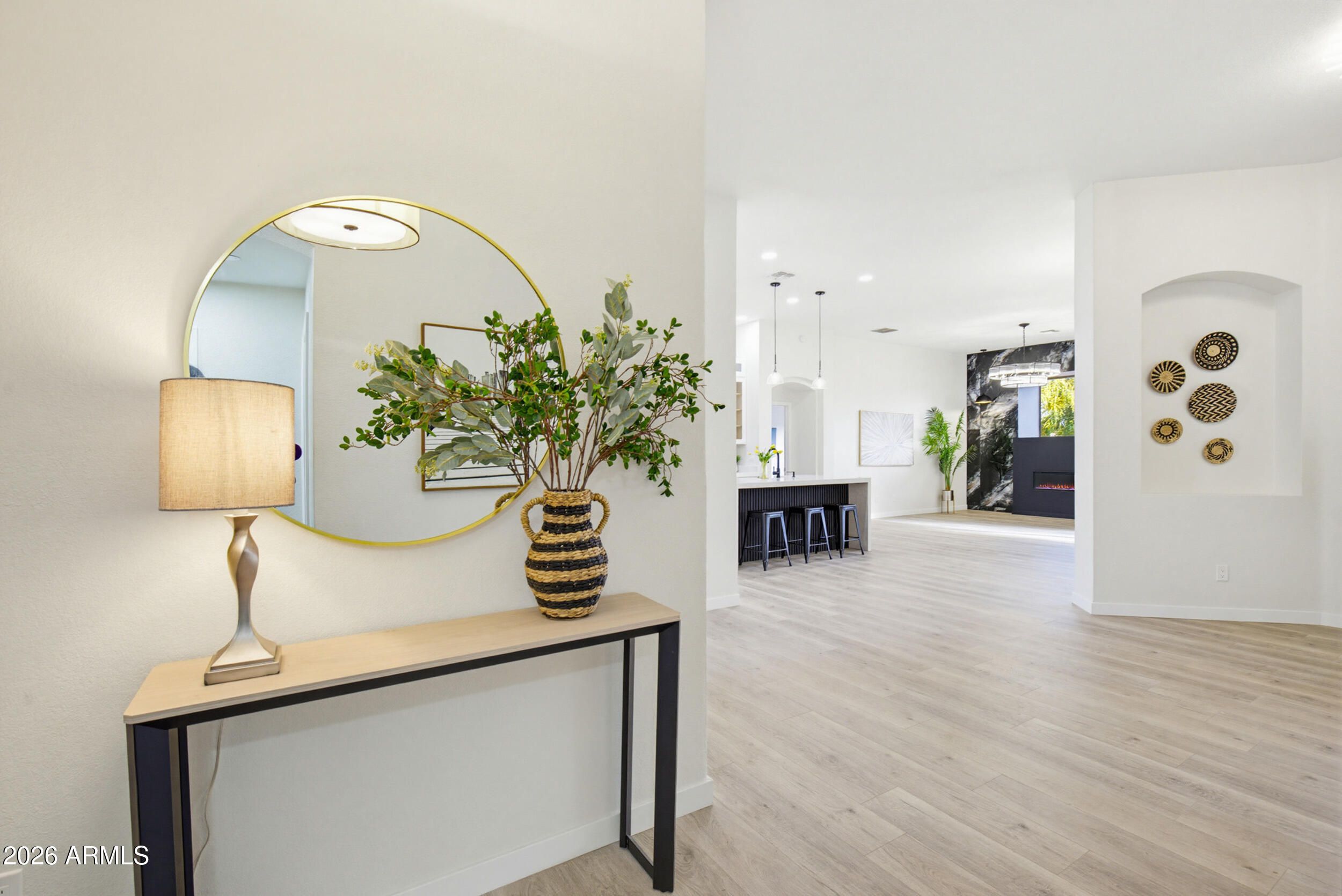 Exquisitely remodeled home located in the prestigious community of Sun Lakes. Thoughtfully Redesigned with Timeless Finishes and Modern Comfort in Mind, This residence Offers a Split Plan with 3 Spacious Bedrooms,Sitting Area With Bar, Plus a Private Office-Ideal for Guess, Hobbies, or a Work-From-HomeSpace. Completing the Home is a Spacious two-Car Garage plus A dedicated Golf Car Garage. At The Heart of The Home, the Fully REDESIGNED Kitchen Features Custom Cabinetry, Stunning Quartz Countertops, a Dramatic Quartz Waterfall Island Anchors the Space. ALL NEW PLEX PLUMBING Throughout and New Roof Underlayment, 2022 A/C Adds Long-Term Value and Peace of Mind. Residents Enjoy Golf,Resort Pools, Fitness Centers,Tennis and Pickleball Courts,On-Side Dinning, and a Vibrant Social Calendar.