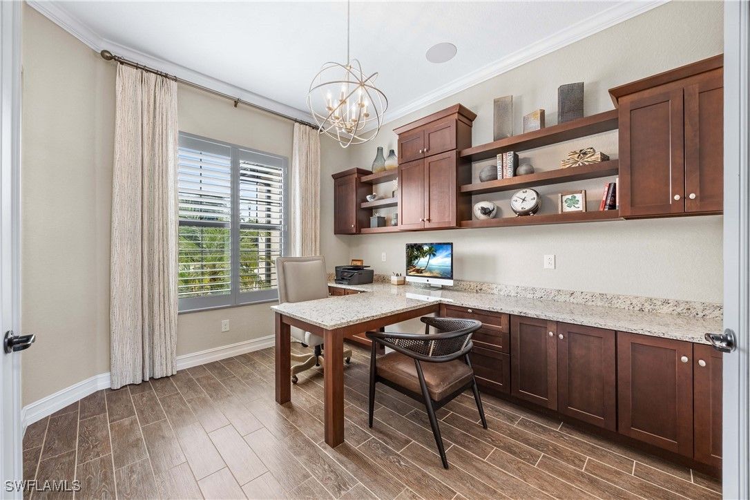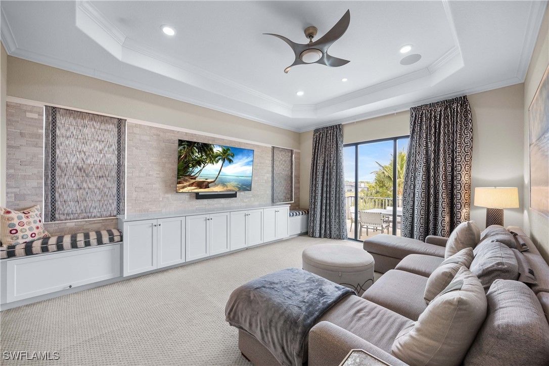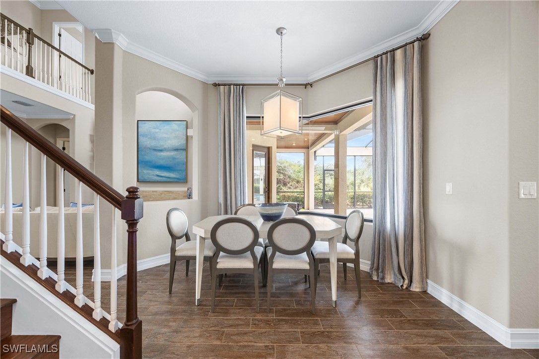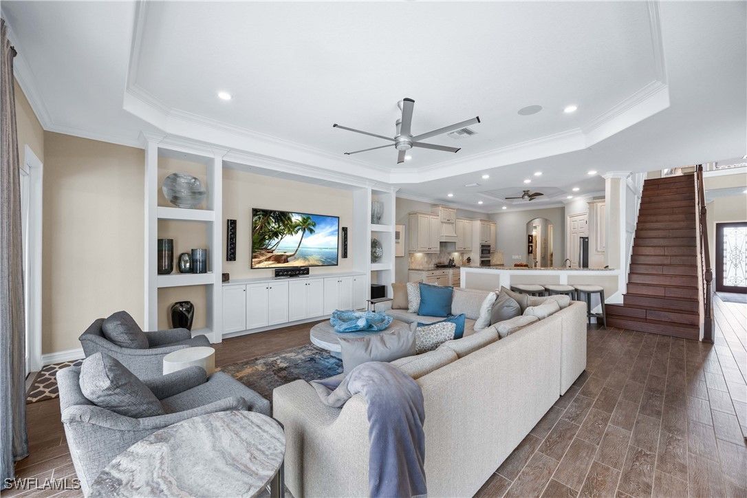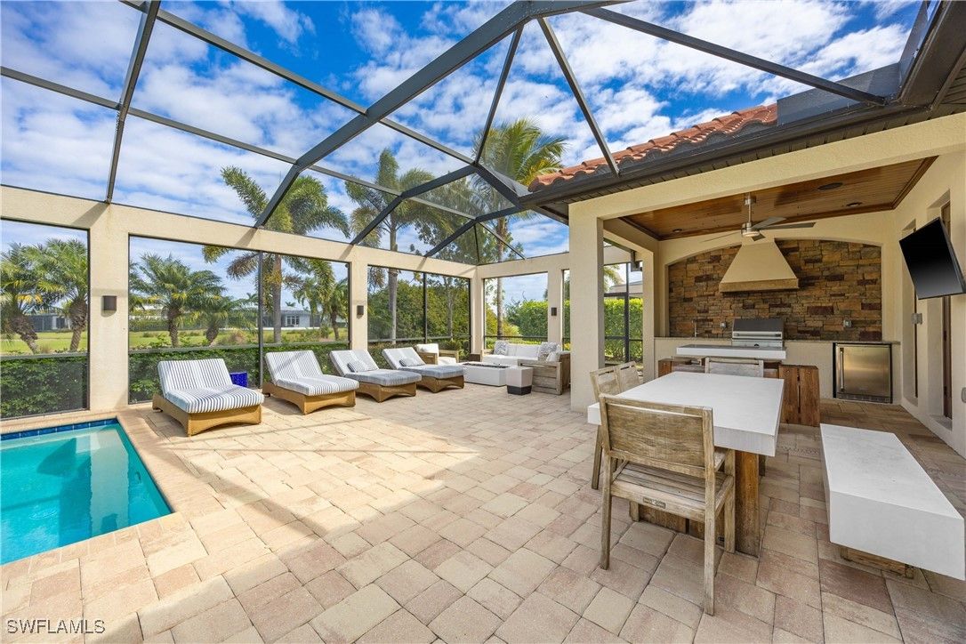 A truly one-of-a-kind, turnkey luxury golf estate with sweeping golf course views in Treviso Bay, offering exceptional privacy with no neighboring home on one side. Spanning 3,542 square feet of refined living, this magnificent residence delivers an elevated blend of craftsmanship, technology, and design—with no comparable home currently available in the community. Offered fully furnished with premium Clive Daniel Home interiors, the home features four spacious bedrooms plus a den, Upstairs Bonus Room with Balcony , three full baths and two half baths, including a dedicated pool bath. Every detail has been thoughtfully curated, from custom built-in cabinetry and extensive designer trim work to an integrated whole-house sound system ideal for both entertaining and everyday living. The open and elegant floor plan flows seamlessly to the outdoor living space, where a resort-style pool and spa overlook the golf course, creating a tranquil and private setting rarely found in Treviso Bay. With no adjacent home on one side, the property offers a heightened sense of seclusion while preserving expansive views and natural light. A rare highlight is the climate-controlled glass wine room, complemented by a three-car air-conditioned garage, setting this home apart from standard luxury offerings. Meticulously maintained and richly upgraded throughout, this residence represents a true turnkey opportunity for buyers seeking sophistication, privacy, and timeless elegance in one of Naples’ most sought-after lifestyle communities. An exceptional statement home—unmatched, irreplaceable, and ready to be enjoyed immediately.