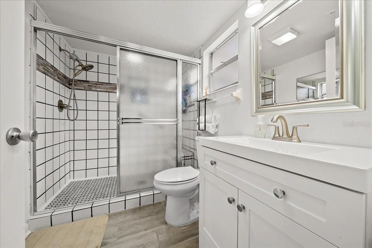 Completely Renovated Home in Golf Cart Community in On Top of The World. This beautifully totally renovated home is truly move-in ready and located in a desirable golf cart–friendly community. Major upgrades include a new air conditioner (2021), new high-quality luxury vinyl plank (LVP) flooring installed in 2025, fresh interior paint, recessed lighting throughout, and updated lighting fixtures in the home and garage, new garage door and garage door opener. Ceiling fans with integrated lighting enhances comfort, and walk-in closets feature new shelving. The modern kitchen offers granite countertops, a tile backsplash, stainless steel upgraded appliances, a garbage disposal, and an upgraded sink and faucet—perfect for cooking and entertaining. Both bathrooms have been fully updated with new cabinets, sinks, and toilets. The primary bathroom features all-new tile flooring and a walk-in tiled shower with grab bars and a built-in seat, along with new mirrors and updated lighting. Additional highlights include screen doors on both the front and back, a new screened-in lanai, and new gutters with gutter guards. The roof has over 10 years of remaining life, providing long-term peace of mind. The HOA covers all OTOW central amenities, lawn care, irrigation, and trimming, exterior insurance, trash service, roof repairs, and exterior painting every seven years, allowing for low-maintenance, worry-free living. This thoughtfully upgraded home offers modern finishes, exceptional community amenities, and carefree living—an outstanding opportunity you won’t want to miss.