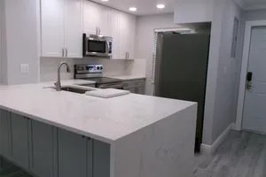 Feel Welcomed to this Beautiful and Fully Renovated (55+) Condo Located in the Heart of West Boca Raton! You'll Enjoy to find a modern and practical design with waterproof vinyl plank flooring throughout, for your peace of Mind there's Shutters at all windews and doors, the Patio as a Brand New Impact Window with views to the Lake and Gardens. Wonderful Kitchen showcasing Top-of-the-Line LG Appliances Quartz Waterfall Contertops, sleek cabinets with lots of storage. Walk-in Closet with the convenience of a Full Sized Washer and Drier, recessed lighting with dimmers, and a Super Bonus feature of having Hot Water included! This Home is Move-in Ready and Perfect for all year-round residents or the occasional Snowbird. Just minutes from Everything Beaches, Shopping, Dinning, Golf and Casinos!