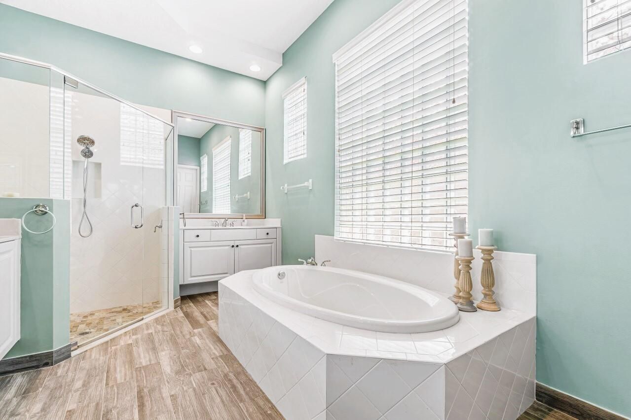 - Cathedral Ceiling(s), Entrance Foyer, High Ceilings, Pantry, Vaulted Ceiling(s), Walk-In Closet(s), Split Bedrooms, Garden Tub/Roman Tub, Breakfast Area, Separate/Formal Dining Room, Snack Bar, Dual Sinks, Main Level Primary, Separate Shower, Soaking Tub