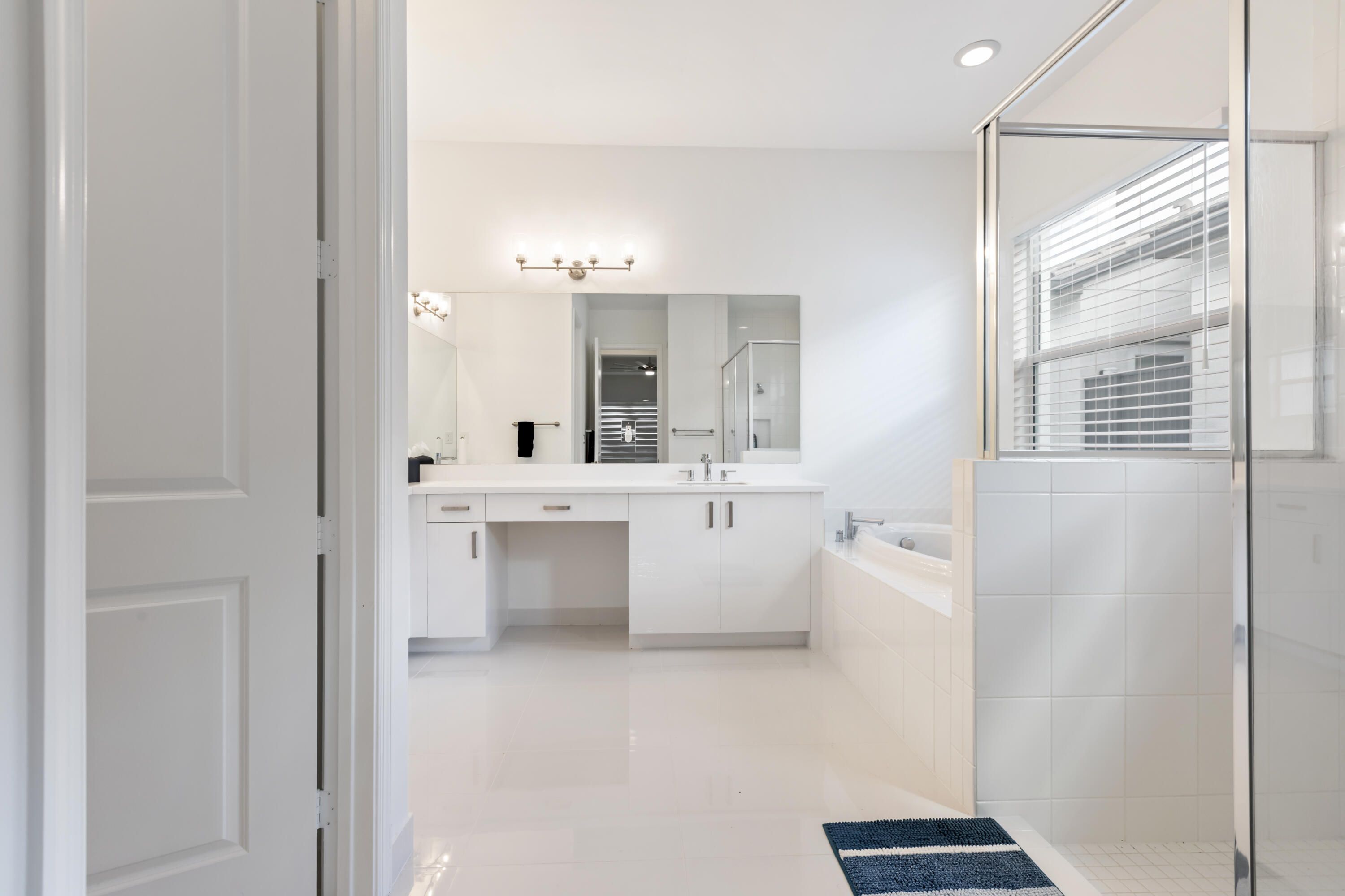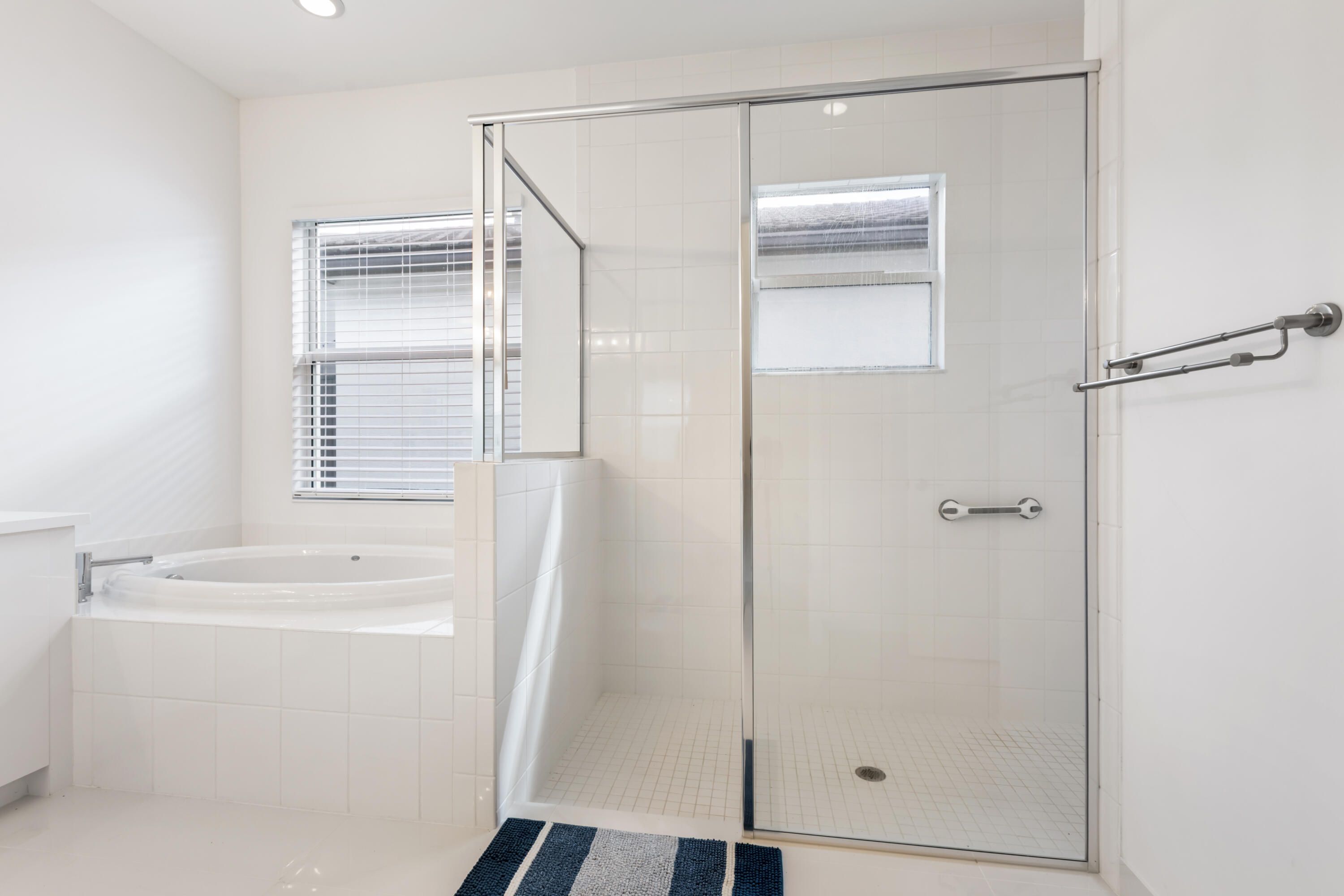 - Entry Level Living Area, Kitchen Island, Pantry, Split Bedrooms, Walk-In Closet(s), Home Office, Family Room, Blinds, Impact Glass, Dual Sinks, Primary Downstairs, Separate Shower, Bathtub
