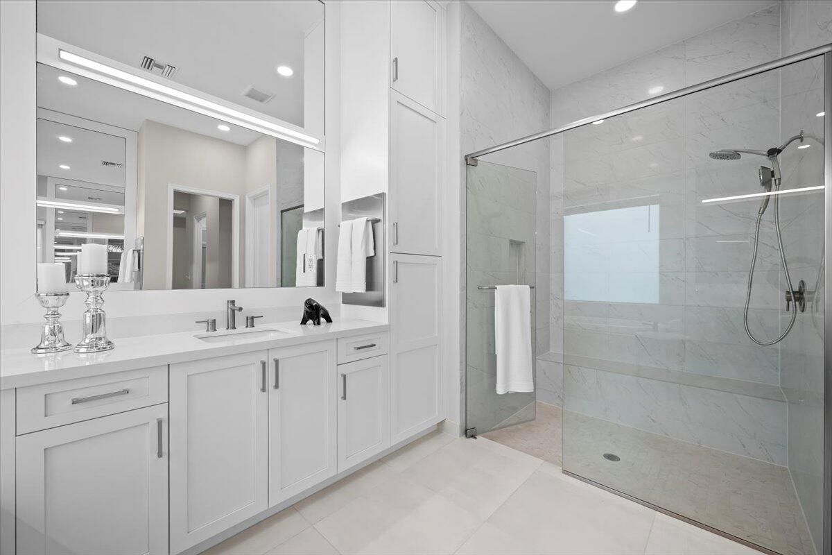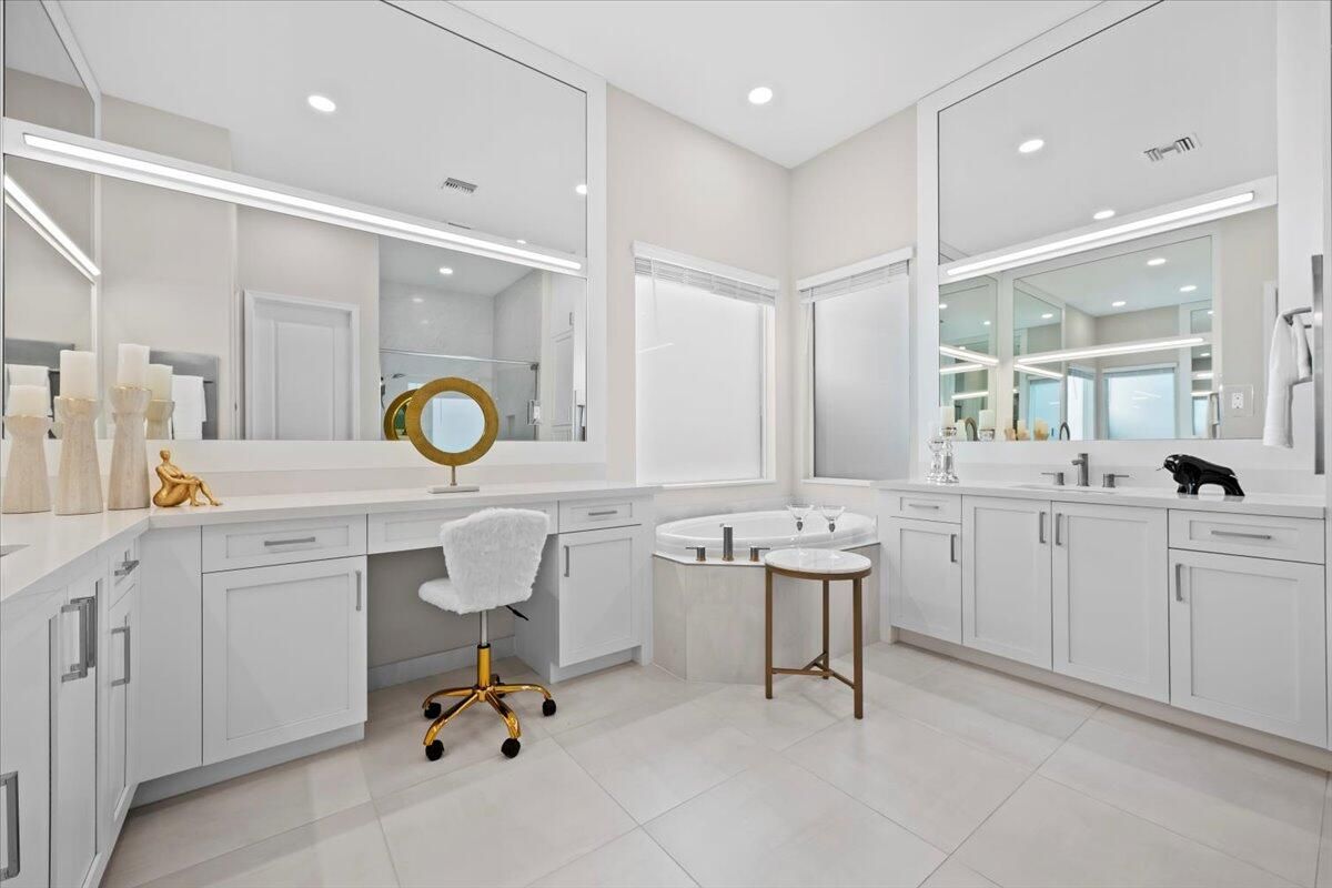 - Central Vacuum, Entrance Foyer, High Ceilings, Walk-In Closet(s), Split Bedrooms, Closet Cabinetry, Custom Mirrors, Impact Glass, Breakfast Area, Living/Dining Room, Family/Dining Room, Separate/Formal Dining Room, Dual Sinks, Main Level Primary, Separate Shower