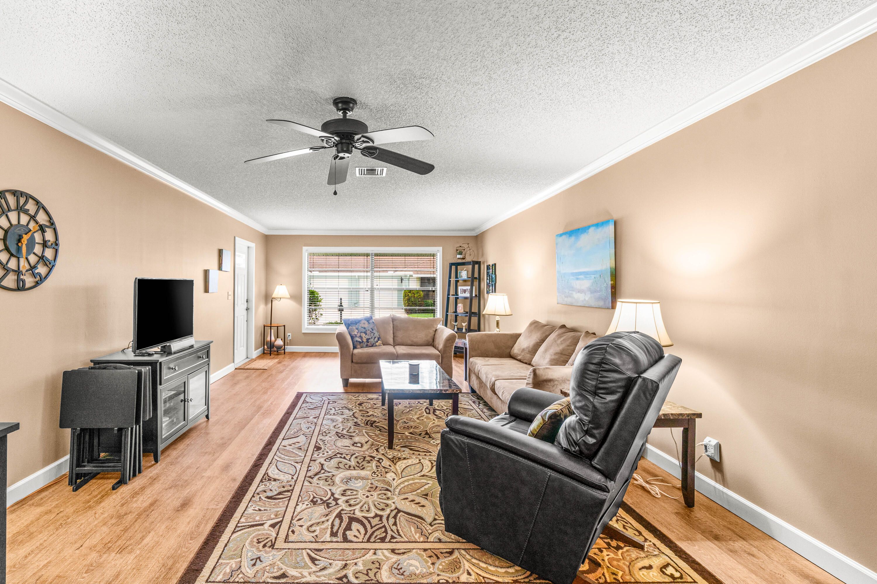 This one won't last long! A new roof will be installed in 2026, ensuring long-term value and peace of mind. Inside, you'll find an updated kitchen, elegant crown molding, and accordion shutters for added protection. Step outside to your spacious paver patio, perfect for outdoor living and entertaining. This vibrant community offers a saltwater pool, clubhouse, library, and a variety of social clubs to enjoy. The new Hotwire cable and internet service keep you connected and entertained. The association fee includes cable, internet, water, sewer, trash, roof and gutter maintenance, landscaping, and exterior building care—providing both convenience and confidence in maintenance-free living.