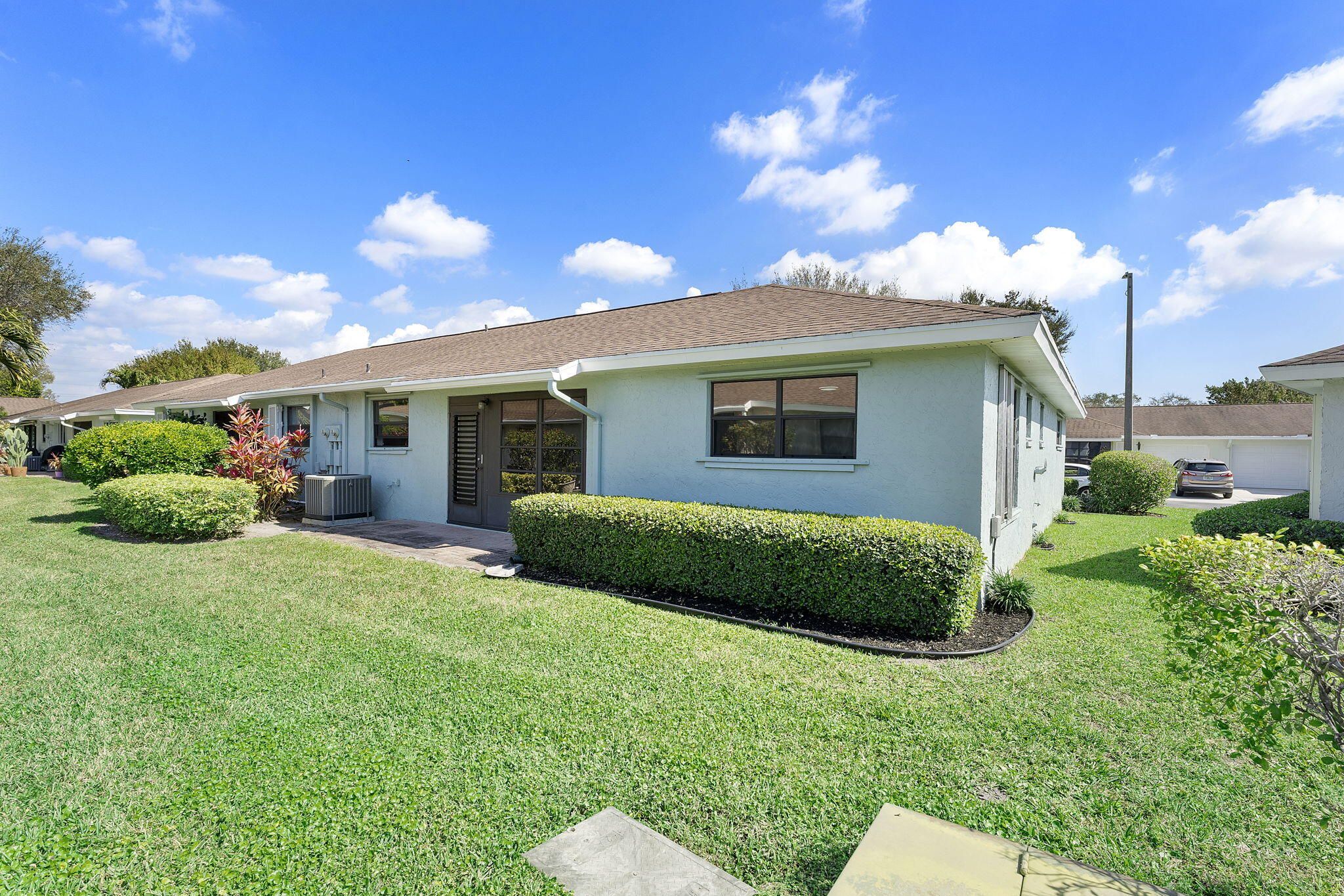 Welcome home to Bent Tree East, this quiet Villa community is nestled in the heart of Boynton Beach. This villa comes complete with a new roof by June of 2026, no assessment. New Vinly flooring as you enter along with all fresh paint inside the home. Attached one car garage that offers extra storage in the attic along with washer and dryer inside. Kitchen offers a large pantry and slider to your screened in patio. Large Master bedroom has 3 closets including one as a walk-in and separate bathroom. Guest bathroom has a walk-in shower with new tile. Hurricane protection with 100% panels. AC is 11/2021. HOA covers landscaping, pest control, water, sewer and trash, pool, cable and internet and COMPLETE roof coverage.