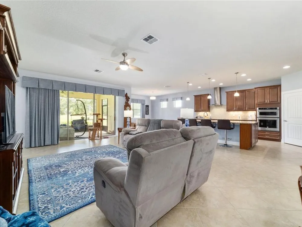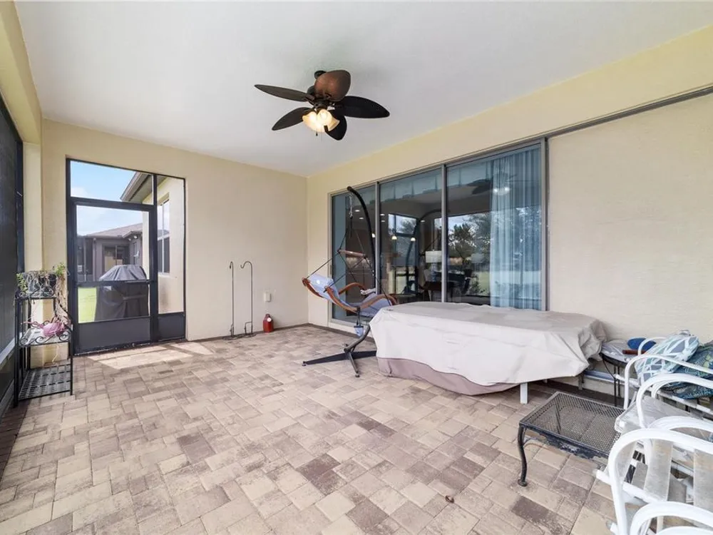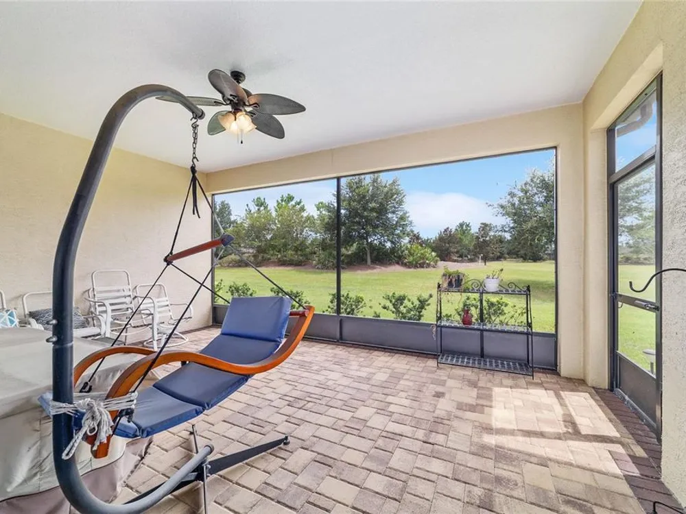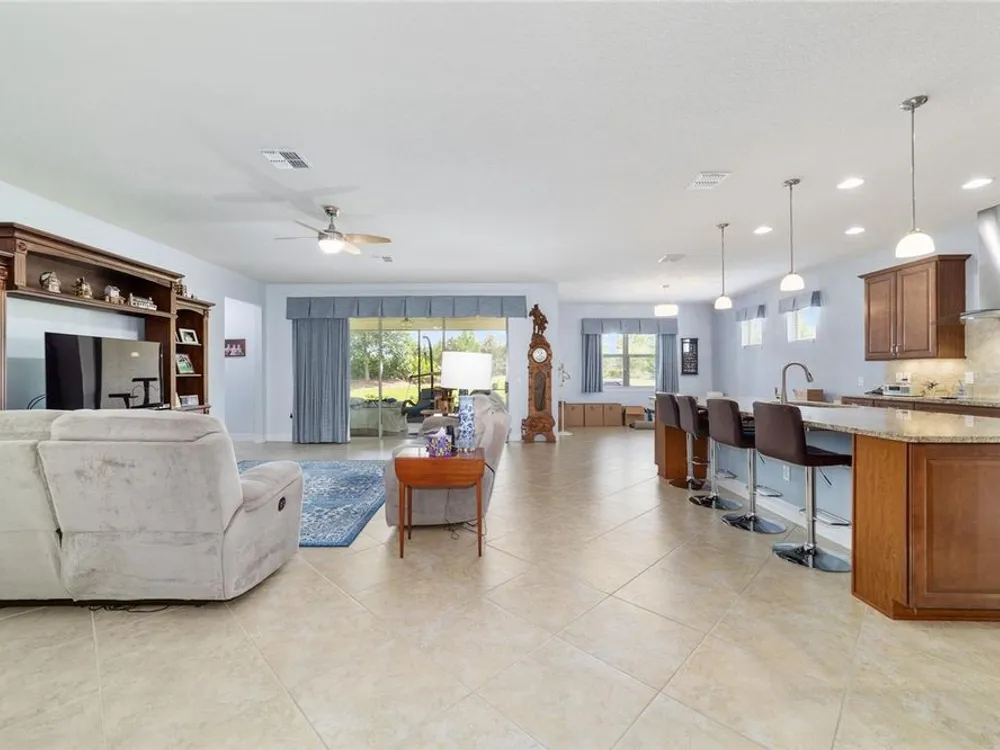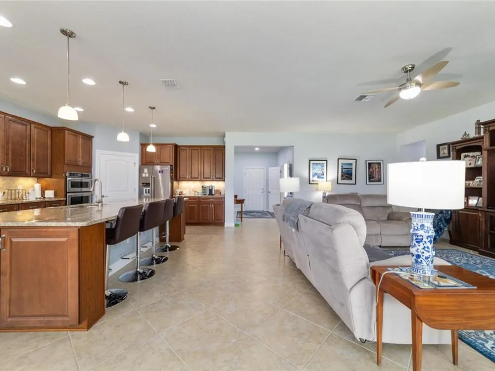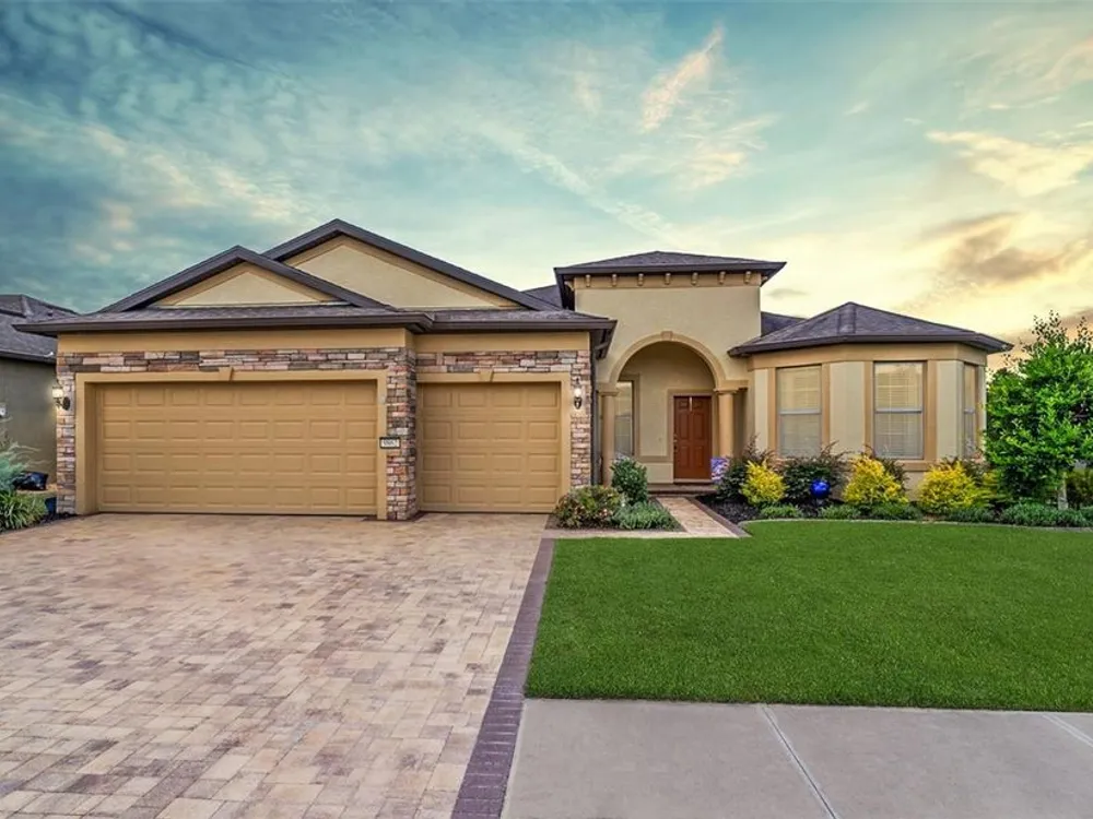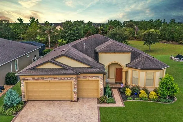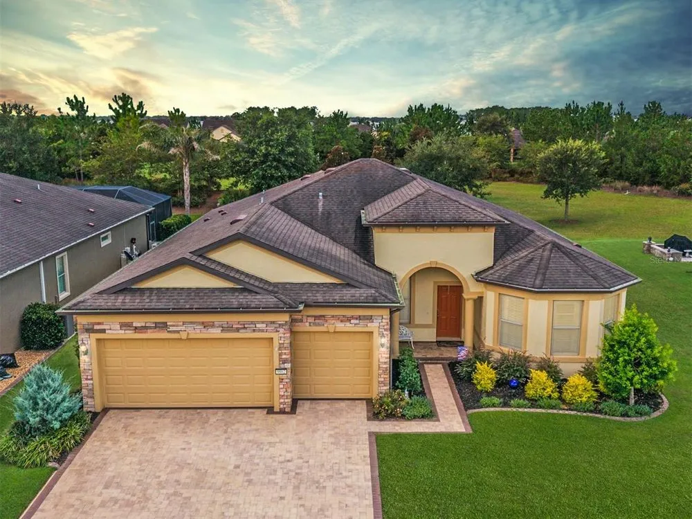 Don’t miss your opportunity to claim this spacious Pinnacle model, ideally positioned on a premium lot overlooking a peaceful, tree-lined greenbelt in the gated 55+ Stone Creek Golf Course Community. This home offers the perfect blend of comfort, functionality, and an active adult lifestyle—all in a setting that feels like a year-round getaway. From the moment you arrive, the curb appeal is undeniable—mature landscaping, decorative concrete curbing, stacked stone accents, and a paver-lined driveway create a welcoming first impression. Inside, this spacious home offers something for everyone, including a versatile bonus den or office and an extended 3-car garage with ample space for a golf cart, workshop, or hobby area. Step into a bright and inviting space where the open layout begins with a welcoming foyer and flows into a beautifully lit interior featuring high ceilings, subtle recessed lighting, and tile flooring in calming neutral tones set on the diagonal. The Chef’s kitchen is thoughtfully designed with everyday living in mind, featuring an oversized island that’s great for casual meals or catching up with friends. Granite countertops, a tiled backsplash, stainless steel built-in appliances, and a roomy walk-in pantry make it as practical as it is welcoming. The kitchen connects seamlessly to the spacious gathering room, offering an easy flow for everyday living and entertaining. Panoramic recessed sliders open wide to a large screened-in patio—an ideal spot to relax, host a gathering with friends, or simply enjoy the quiet beauty of the greenbelt views. The Owner’s suite is a private retreat, offering a large walk-in closet and an elegant en suite bath with a granite-topped double vanity and a glass-enclosed walk-in shower enhanced by a transom window for natural light. Both guest bedrooms include walk-in closets, and the front guest suite features a charming bay window and a private bath, providing comfort and privacy for visiting friends and family. This home is more than just a place to live—it’s a gateway to the vibrant lifestyle that Stone Creek is known for. Enjoy access to a championship golf course, resort-style pools, a full-service health spa, social clubs, entertainment, excursions, and so much more.