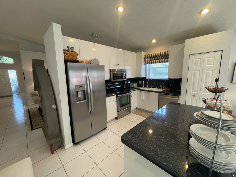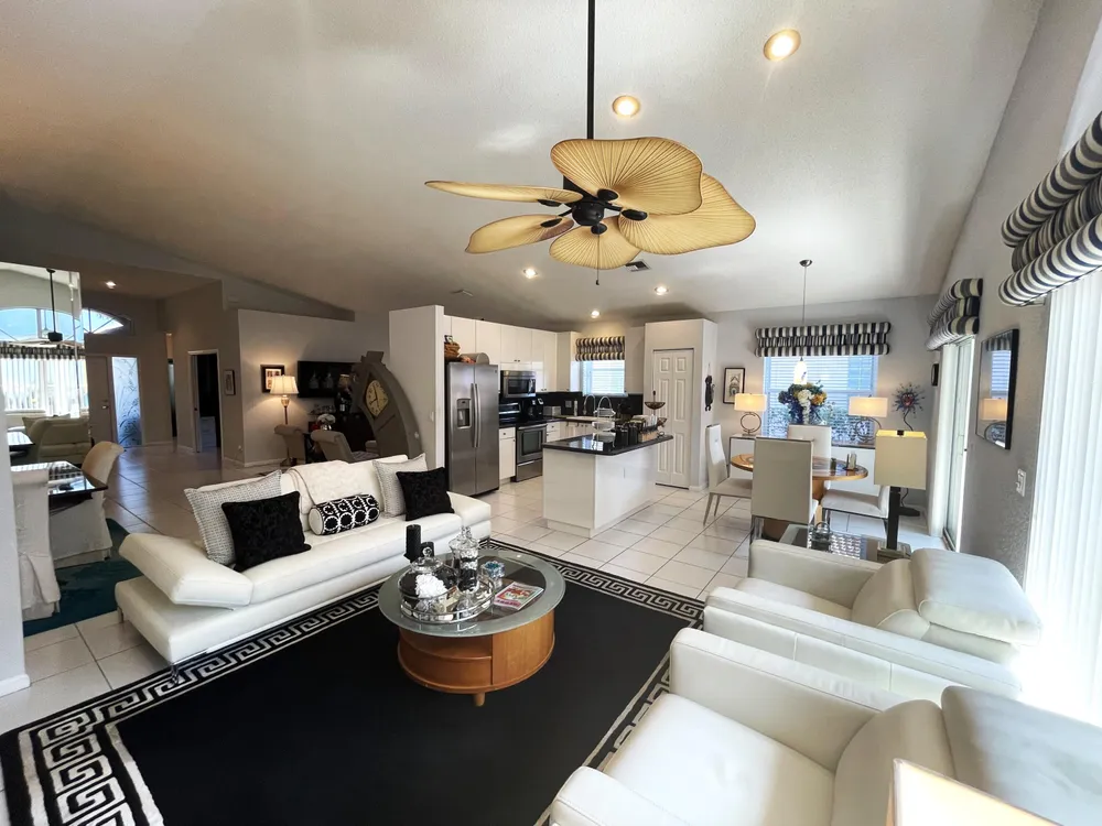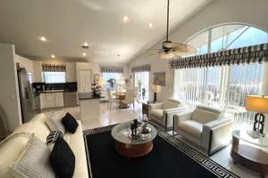 Affordable, Active Living with Resort-Style Amenities! - Warm and inviting 3-Bed, 2-Bath Home in the 55+ Manned Gated Community, The Grove. Welcome to this well-maintained 3-bedroom, 2-bath home on a cul-de-sac in a desirable 55+ manned gated community offering comfort and a vibrant social lifestyle. This residence features a lush front entrance with long driveway, vaulted ceilings, walk-in closet, a formal dining room, granite countertops, pull out drawers, instant hot water, welcoming screened front porch, and a spacious enclosed patio, perfect for relaxing or entertaining. Equipped with accordion shutters and an exterior generator connection, you'll enjoy peace of mind and convenience year-round.Live affordably with low monthly maintenance fees.