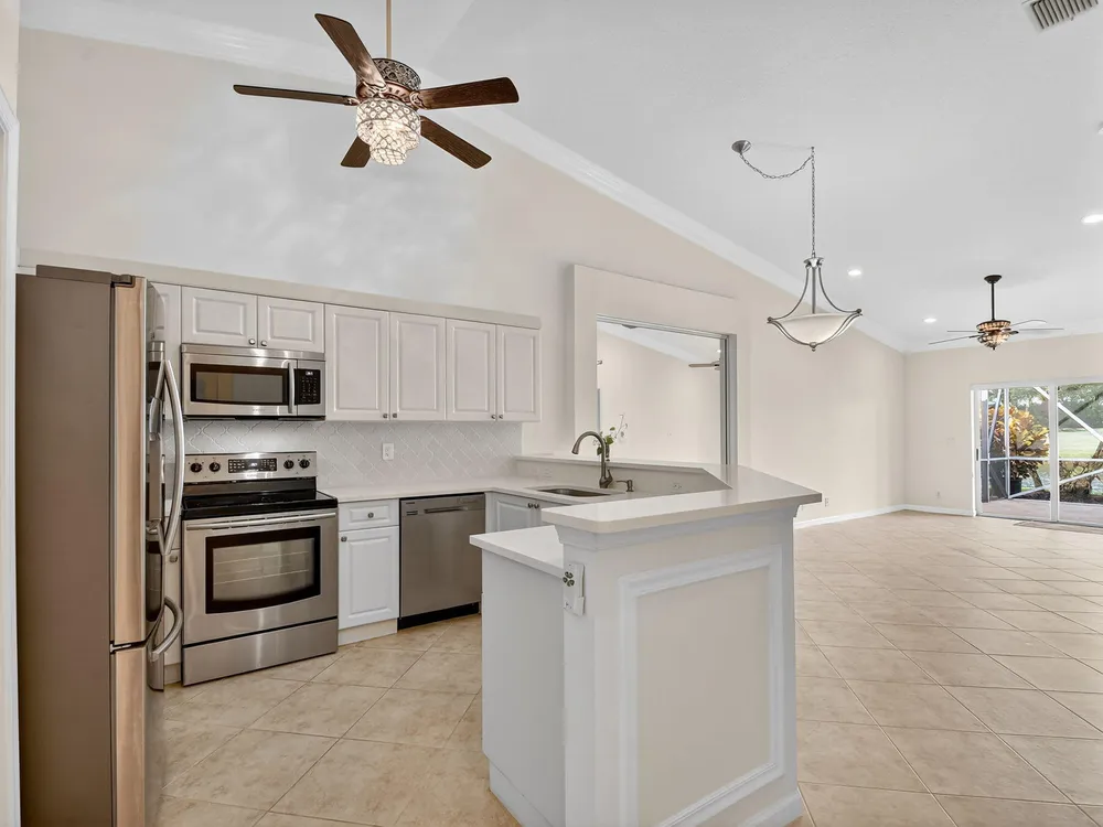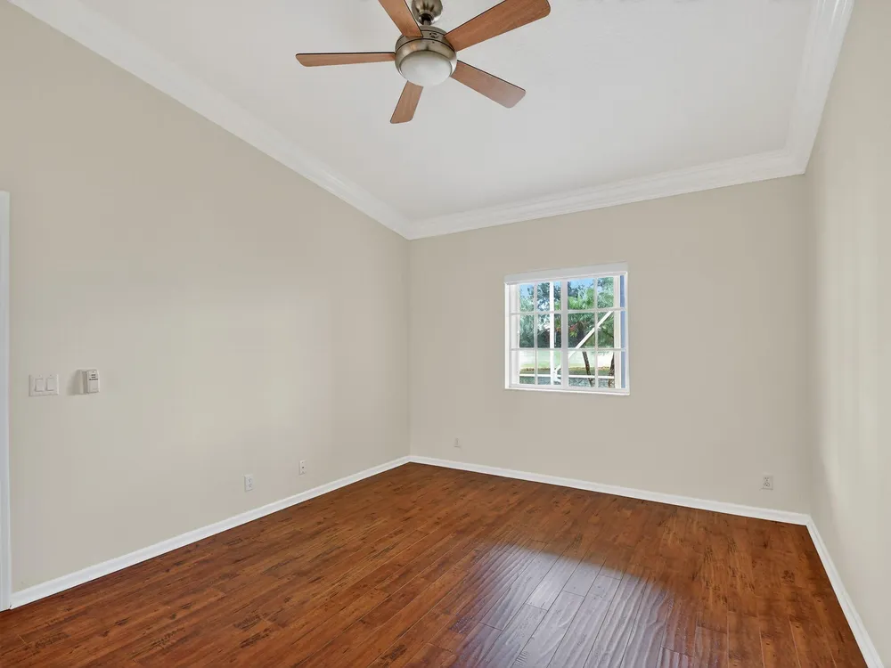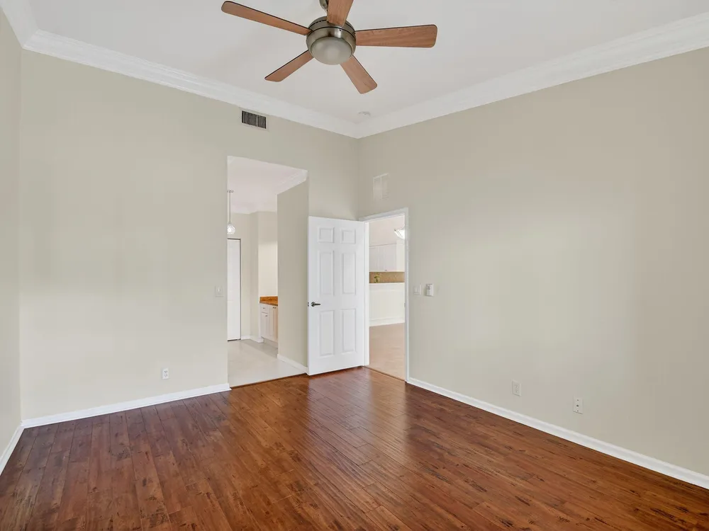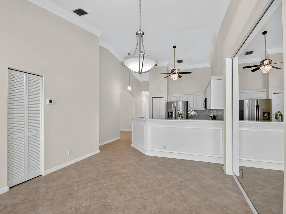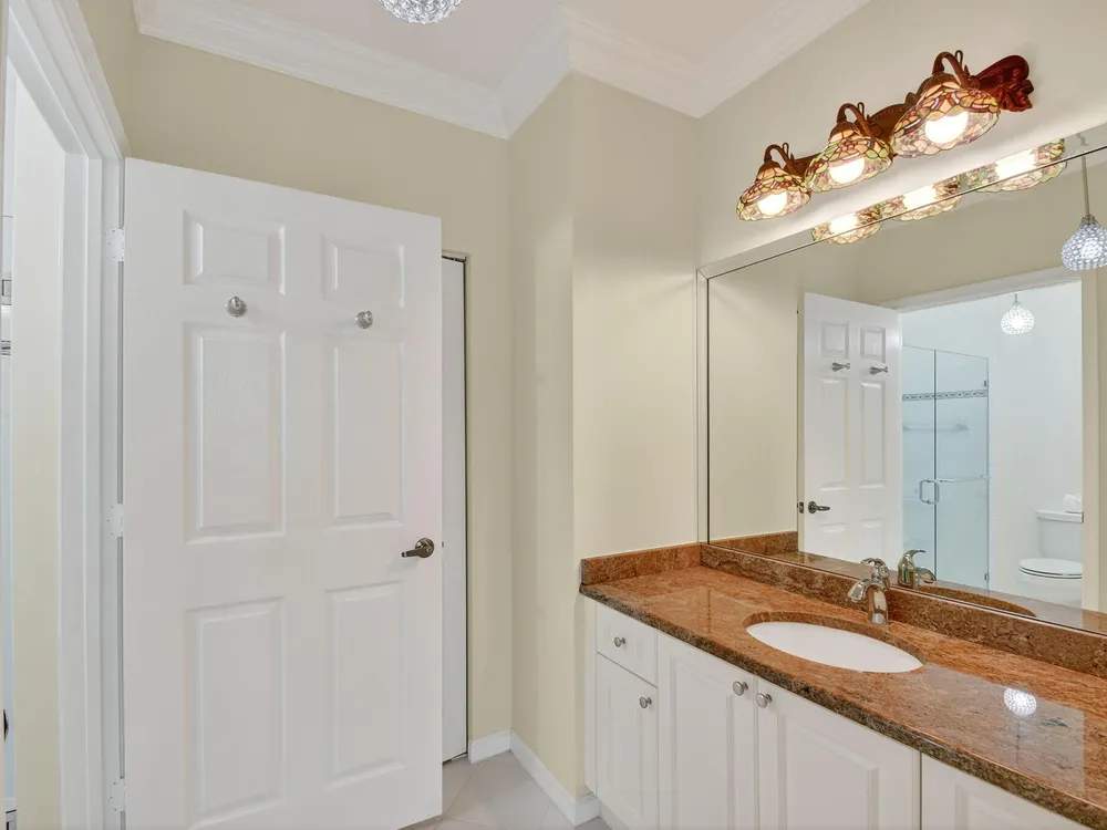 Stunning Lakefront 2/2 Villa with Flexible Den/Office SpaceWelcome to this beautifully maintained 2-bedroom villa with a versatile den that can serve as an office, formal dining room, or bonus space to fit your lifestyle. From the moment you walk in, you'll notice the attention to detail and quality upgrades throughout.Enjoy peaceful lake views from your screened-in patio--perfect for barbecues, entertaining, or simply unwinding at the end of the day. Inside, the home features crown molding, fresh interior paint, designer window treatments, upgraded ceiling fans, and custom mirrors. Tile flooring is laid on the diagonal in the main living areas, with laminate in the bedrooms for a warm, inviting feel.The kitchen is a chef's delight with quartz countertops, stainless steel