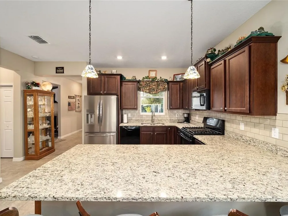VERY MOTIVATED SELLER! SOLAR: Welcome to your dream home in the heart On Top of the World, a premier 55+ active adult, golf course community. This well maintained 2 bedroom+ flex, 2-bathroom, 2 car garage is being offered by the original owners and has been pet-free and smoke-free. The well-appointed kitchen features staggered wood cabinets, granite counter, subway tile backsplash, black appliances, and a convenient breakfast bar for casual dining. The spacious master suite offers an ensuite bathroom with dual vanity sinks, large shower, and an impressive walk-in closet. The second bedroom is the perfect size for guests and the flex room is a great spot for an office, home gym, or hobby room and features a large closet for storage. This home has excellent curb appeal with a designer painted driveway, fully sodded and irrigated lot with raised curb landscape beds. Furniture is available for purchase outside of sale. Crescent Ridge is close to all amenities and includes curbside mail and trash collection.