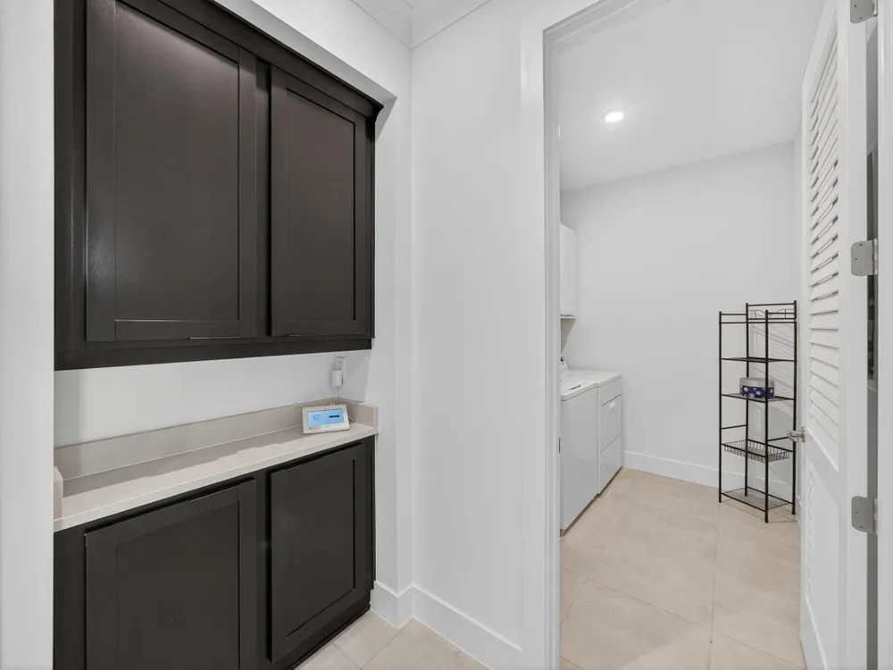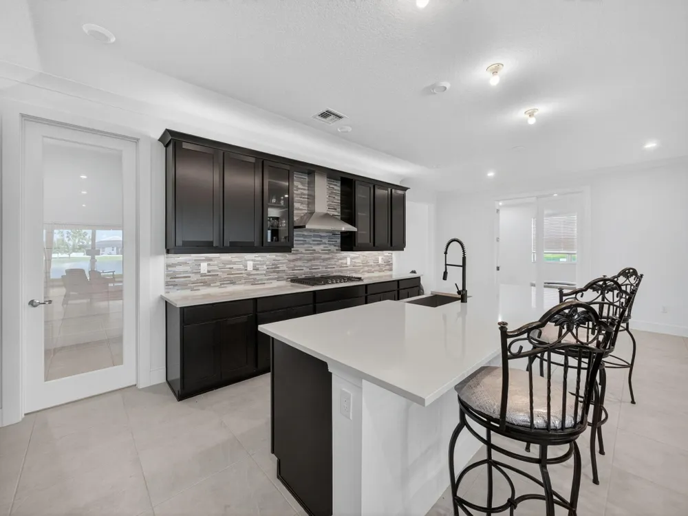 - Entry Level Living Area, Entrance Foyer, French Door(s)/Atrium Door(s), Kitchen Island, Pantry, Split Bedrooms, High Ceilings, Walk-In Closet(s), Wet Bar, Attic, Home Office, Great Room, Living/Dining Room, Blinds, Impact Glass, Dual Sinks, Primary Downstairs, Separate Shower, Bathtub