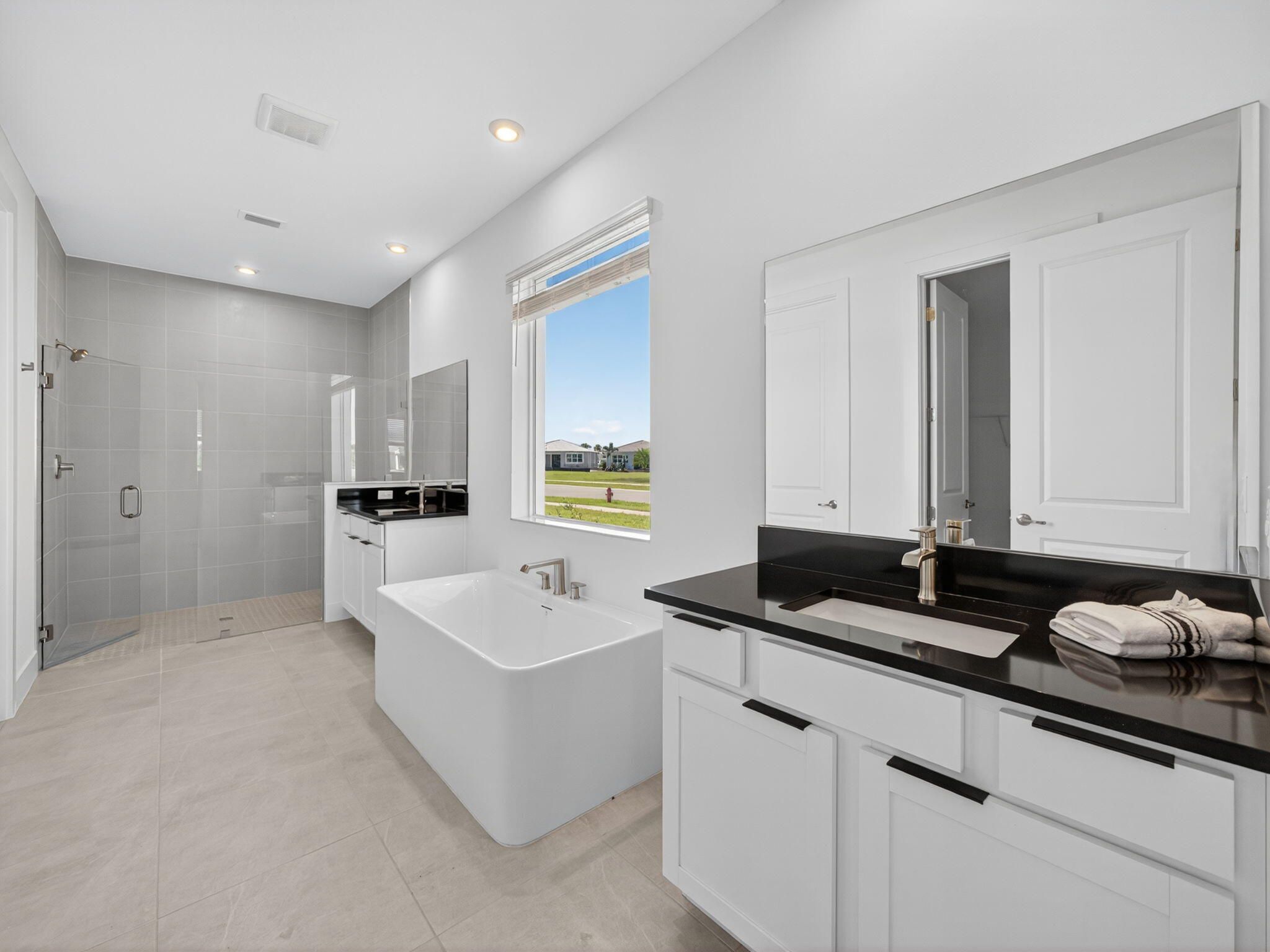 ULTRA-PREMIUM LAKEVIEW CLARION MODEL IN TELARO! Experience luxury 55+ living on the most coveted lot, boasting sweeping lake views to the rear and west for unforgettable sunsets. This stunning Mattamy home features 2 Bedrooms, 2.5 Baths, a 2-Car Garage, and a Den with French Doors (convertible to a 3rd bed). The open floor plan centers on a gourmet kitchen with extensive lighting upgrades, including under-cabinet illumination. Retreat to the Primary Suite featuring double sinks, a separate shower, and a free-standing tub. Added luxuries include an inside laundry, Wet Bar, and a lanai prepped for your custom outdoor kitchen. Enjoy resort-style amenities in vibrant Tradition. Incredible Value: INCLUDES a $28,000 Lot Premium, $54,840 in Structural upgrades, and $69,990 Design upgrades.