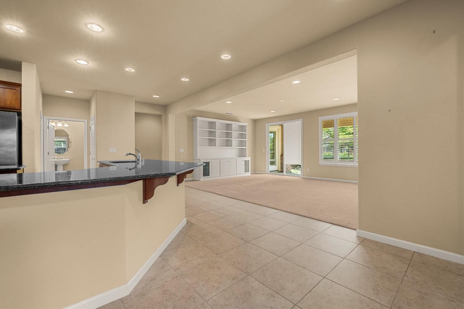 Welcome to this beautifully maintained home in the highly sought-after Del Webb Glenbrooke 55+ community in Elk Grove. This thoughtfully designed residence offers 2 bedrooms plus a versatile office/den, 2.5 bathrooms, and a spacious great-room concept ideal for comfortable living and entertaining. The kitchen features granite countertops, ample cabinetry, and opens seamlessly to the main living area, which includes custom built-in cabinetry for added style and functionality. A separate living room provides additional space for relaxation or hosting guests. The home comes complete with washer, dryer, and refrigerator, making it truly move-in ready. Enjoy peaceful outdoor living with a charming covered backyard patio overlooking a beautiful rose garden view, perfect for morning coffee or evening gatherings. The inviting front porch adds curb appeal and a welcoming place to unwind. Conveniently located near community walking trails and resort-style amenities, this exceptional property offers the perfect blend of comfort, convenience, and active adult living. Garage has extra space could possibly fit a golf cart.
