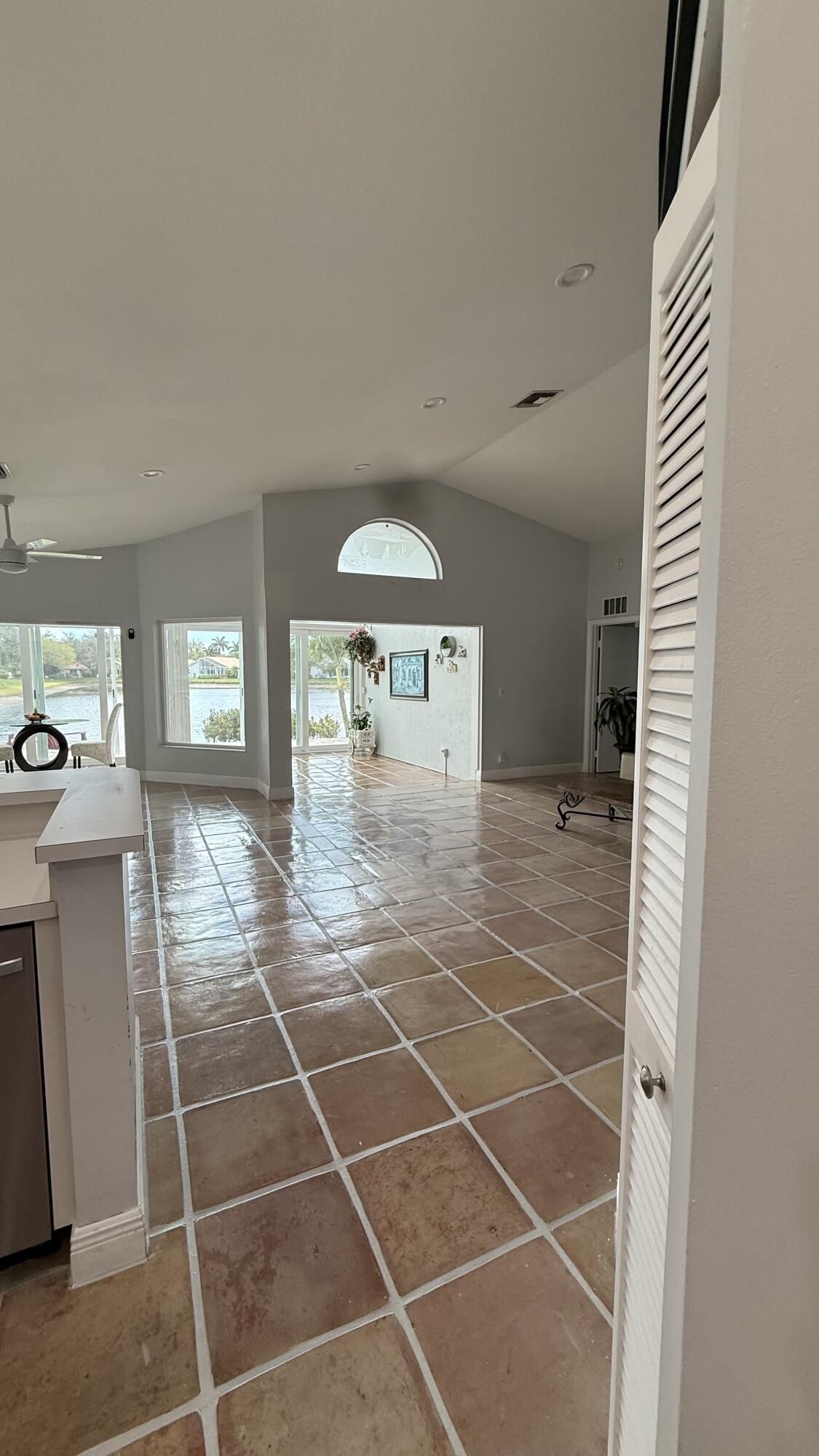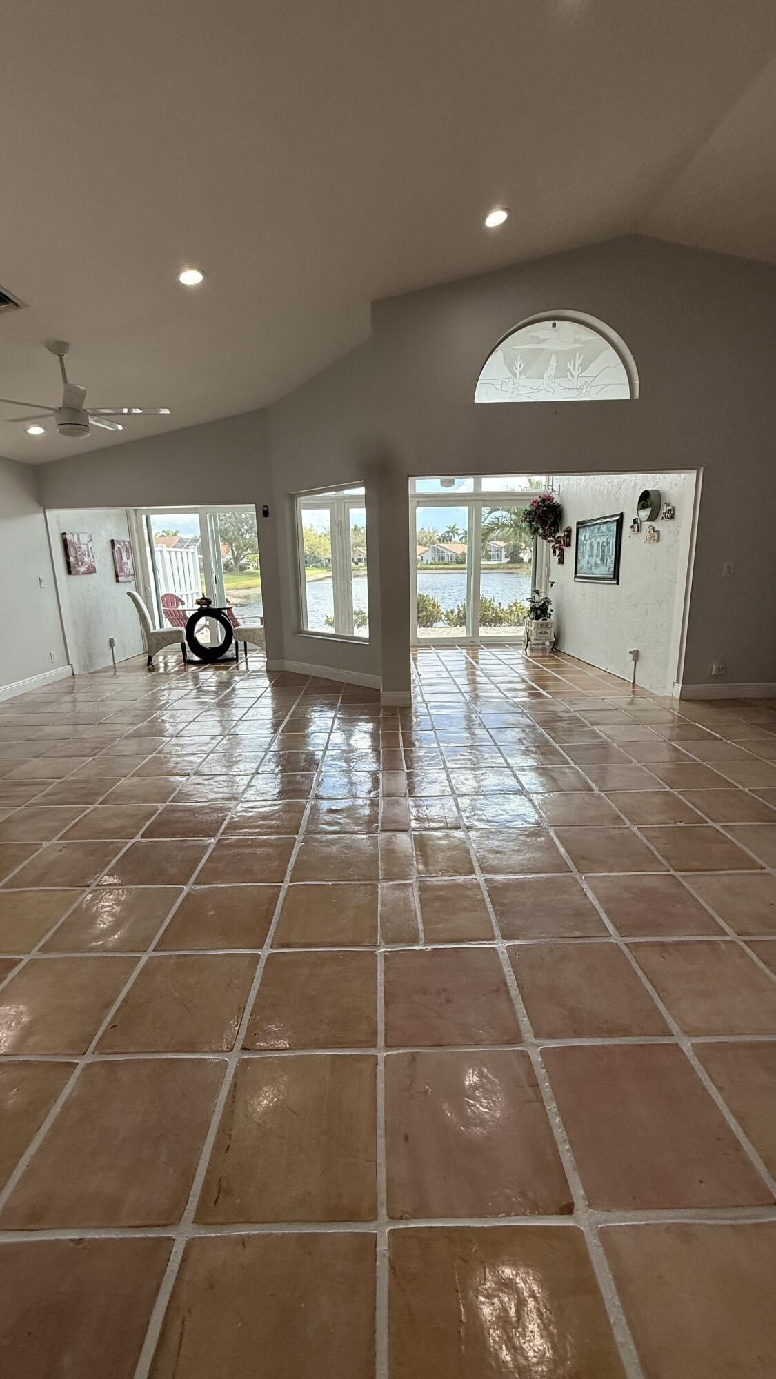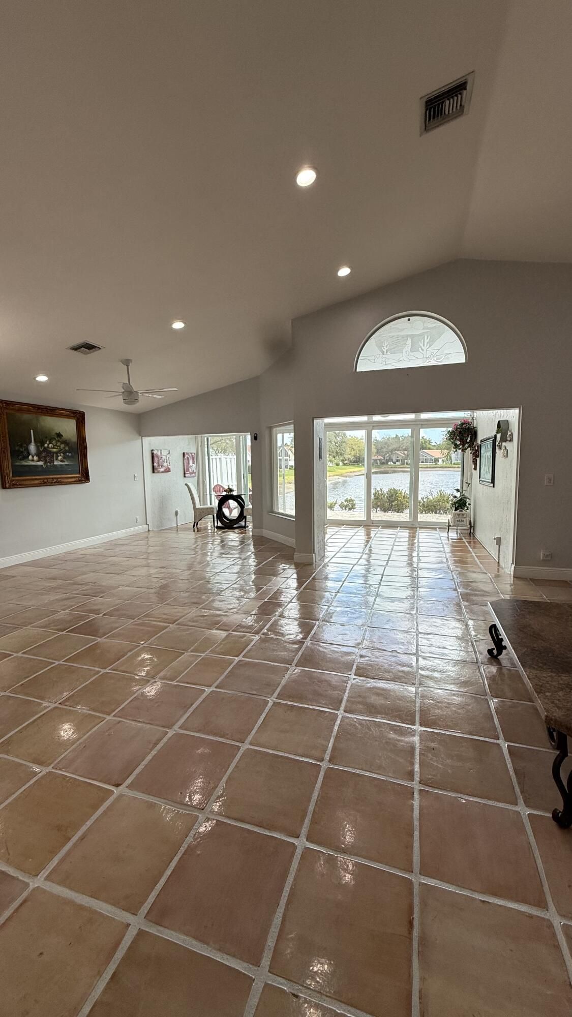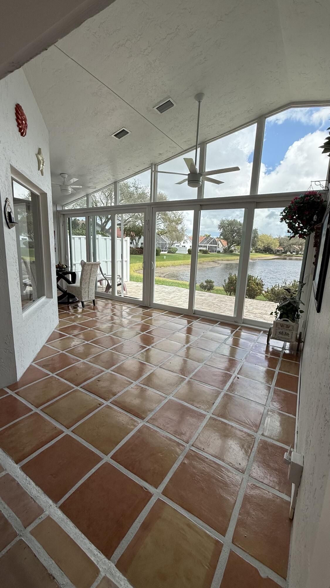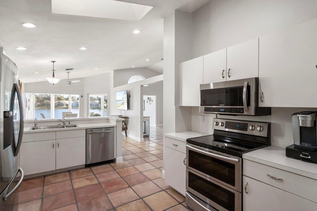 Located in the desirable PALM ISLES SOUTHWIND ESTATES 55+ community, this spacious 2,374 sq ft under A/C lakefront home offers bright living open concept areas with beautiful water views and abundant natural light. Upgrades include impact windows and doors (2021), hurricane-rated garage door (2021), roof (2016), A/C (2021), and water heater (2020). Saltillo tile floors have been professionally cleaned, resurfaced and sealed. Renovated guest bath and laminate flooring in two of three bedrooms. Well maintained and move-in ready with opportunity to update kitchen and primary bath. Enjoy resort-style amenities with renovated clubhouse opening soon, plus 3 pools, fitness, tennis, pickleball and active social lifestyle. Seller is motivated.
