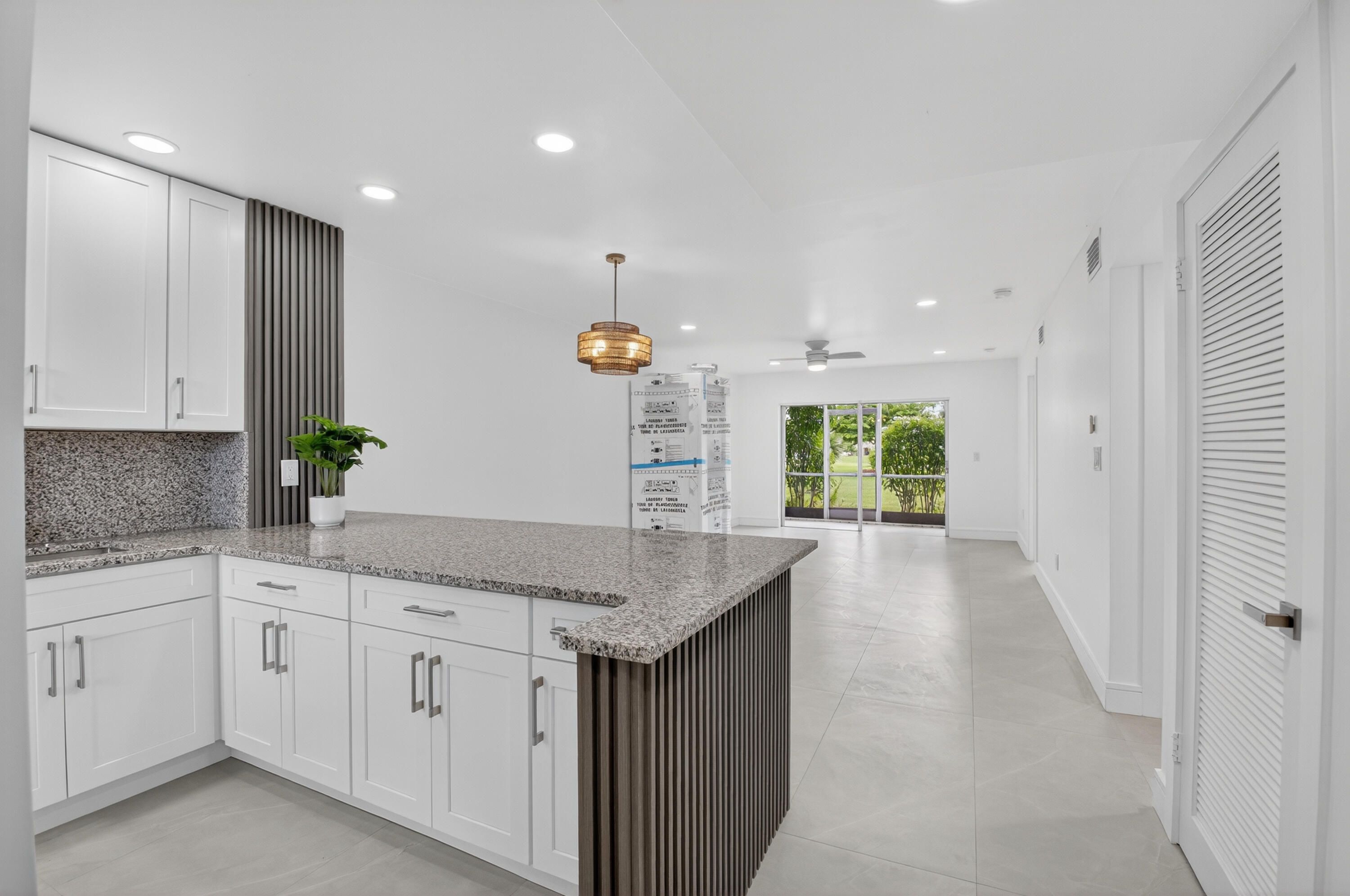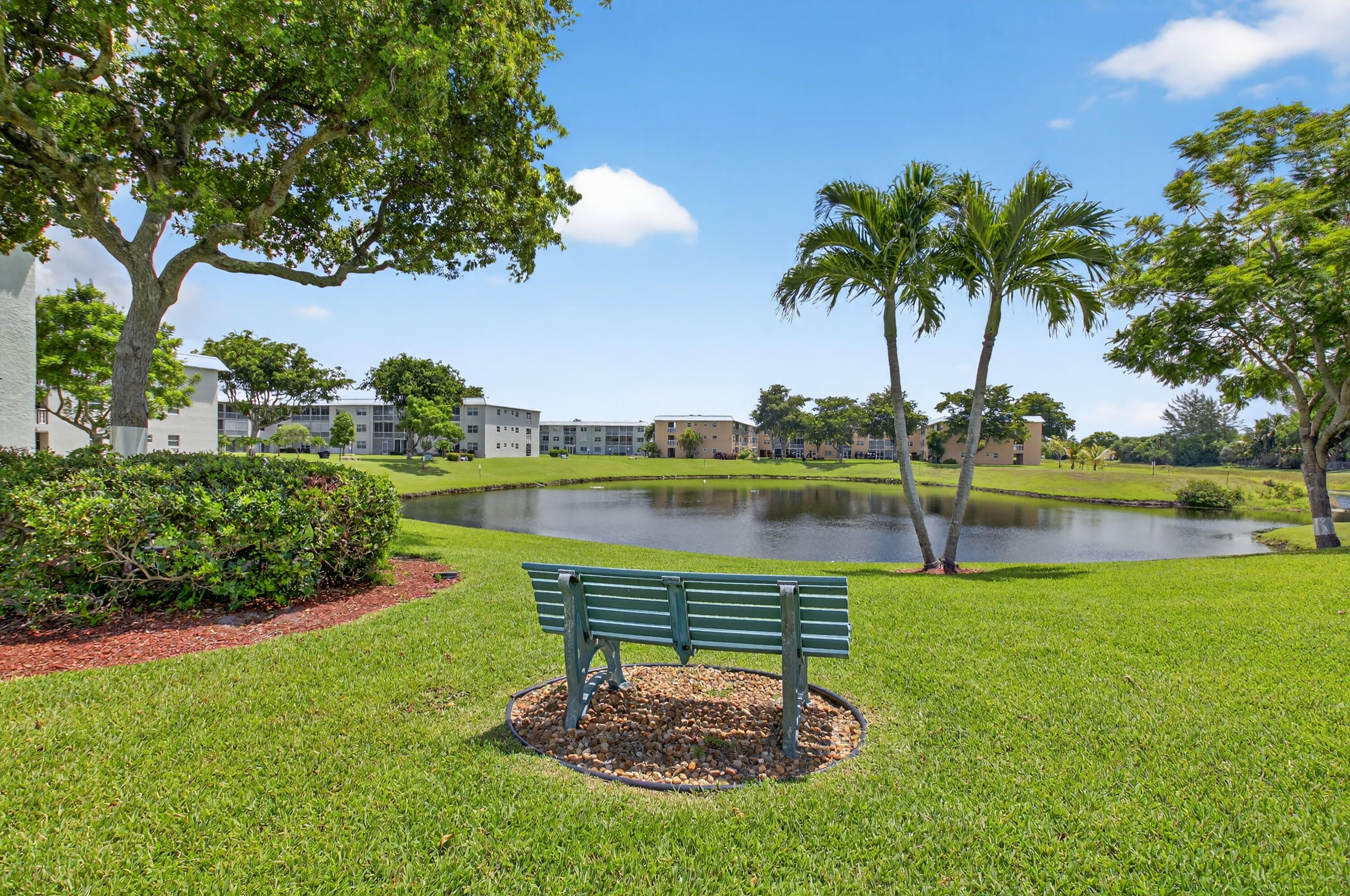 Magnificently remodeled 2 bedroom, 2 bath first floor unit overlooking the lake and garden beyond. 55+ Community. Sheer luxury featuring:. New AC system, New Electrical Panel, Neutral Porcelain tile throughout along with skimmed ceilings. Kitchen boasts New stainless steel appliances with extended granite counter. , impact windows. Greet guests in the formal foyer entry. Enjoy your gourmet white kitchen with granite counters. Great room with dining area is perfect for relaxing or entertaining. Primary bedroom with walk in closet and lavish primary bath. Guest bedroom and guest bathroom is ideal for friends. Close to shopping, major roadways and 25 minutes to the beaches. Florida living at its best. Great room and primary bedroom has staged photos