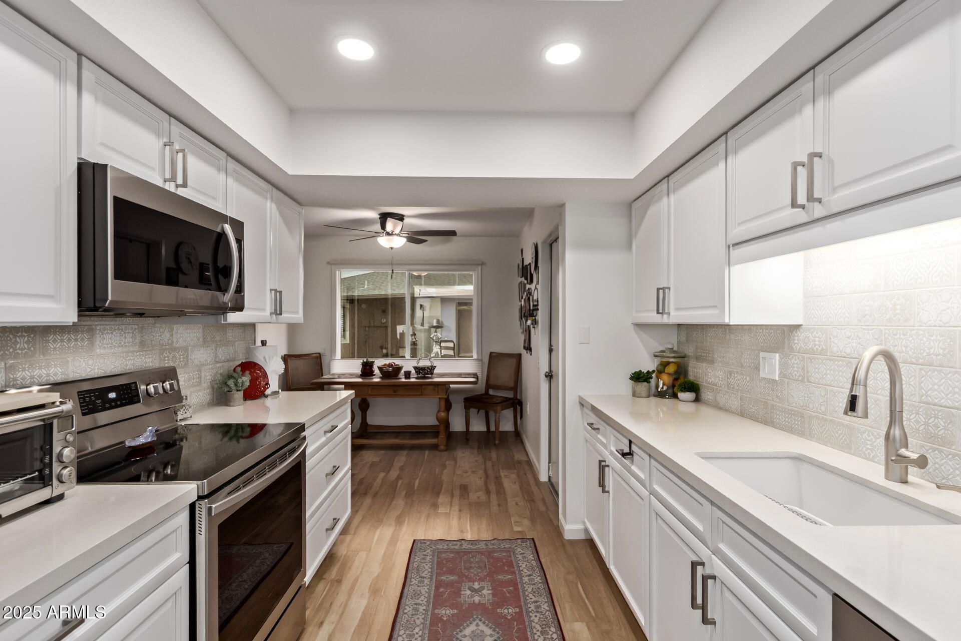 Stunning Updated 2 Bedroom, 2 Bath Home in a Premier Active Adult Community! Move-in ready and beautifully updated, this bright and spacious 2 bedroom, 2 bathroom home offers modern comfort in turnkey condition. This home features fresh neutral paint, updated flooring throughout, updated kitchen and bathrooms, and abundant natural light. The renovated kitchen boasts contemporary cabinetry, quartz countertops, stainless steel appliances, and a convenient breakfast nook. The inviting living and dining areas flow seamlessly for relaxing or entertaining. The primary suite includes a generous walk-in closet and an updated en-suite bath with a step-in shower. A second bedroom and renovated hall bath provide comfort for guests. Enjoy the outdoors in the front courtyard, or under the covered back patio overlooking the lush, green grass. 2025 garage door opener for the 2.5 car garage with ample storage with attached cabinets, 2024 roof, and in 2021 water heater, interior repaint, remodeled bathrooms and kitchen, luxury vinyl plank flooring, and sound-reducing, heat-reflective windows, 2020 Trane HVAC, and the list goes on! November 2025 sewer scope reflects clean pipes with no issues. Furnishings are negotiable. Enjoy the peace of a low-maintenance lifestyle with access to exceptional amenities - located in a vibrant 55+ active adult community clubhouse, fitness center, pool, and social activities. You can be as relaxed or active as you like here.