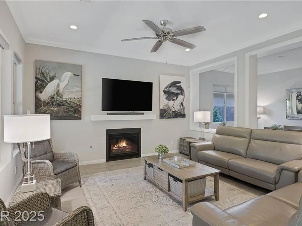 This stunning home shows like a model. Originally offered by Builder as a move-in ready home so the Builder added thousands of high quality upgrades not included in the basic homes. The Seller added thousands more in additional upgrades. Huge Covered Patio & ceiling fan. The yard is a beautiful, green Oasis. Unlike the common Desert & Rock landscape at Regency this low maintenance yard has mature trees, shrubs and ground cover. Huge patio with electric shades creates a versatile sunroom. 12 ft sliding doors from Great room also create additional enjoyment of indoor outdoor living. Crown Molding accents Soaring Ceilings. Designer Paint, Custom Window coverings including Plantation Shutters & Electric Shades, Reverse Osmosis System, Beautiful Tile Showers, upgraded Stainless Steel Appliances, pull out shelves, Den currently used as formal dining room. Additional dining space is between Kitchen & Main Great Room& barstool seating at Island for casual dining Furniture Negotiable.