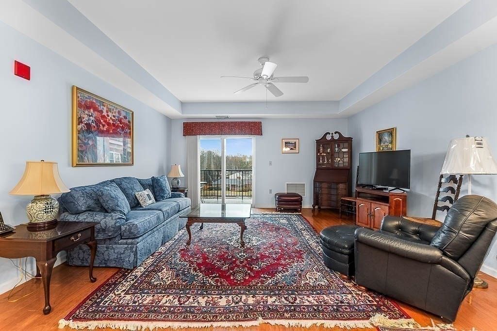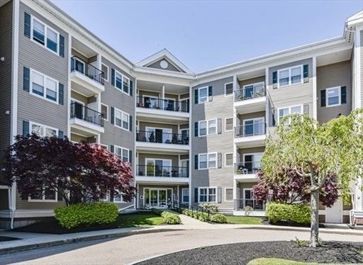 Tired of mowing the lawn, shoveling snow, and maintaining a house? Try the condo life! Tucked into a residential area, this 55+ community offers the convenience of condominium living with a neighborhood feel. This top floor unit features an open floorplan with a spacious living room and slider to the balcony. Modern kitchen with granite counters, newer stainless steel appliances and a breakfast bar. Dining area with room for table and hutch. Primary bedroom with fabulous walk in cedar closet. Full bath with generous counter space, tub/shower combo. Full size stackable washer and dryer in unit. Two parking spaces, including a coveted garage spot. Additional storage outside of unit. Updated systems. Gas heat, central air. Common amenities include function room with kitchen, library, fitness room, and screened porch overlooking conservation land. Walking distance to Endicott rail station, minutes to highways, Legacy Place and University Station. Easy to show! OH Sat Sun 12-1:30