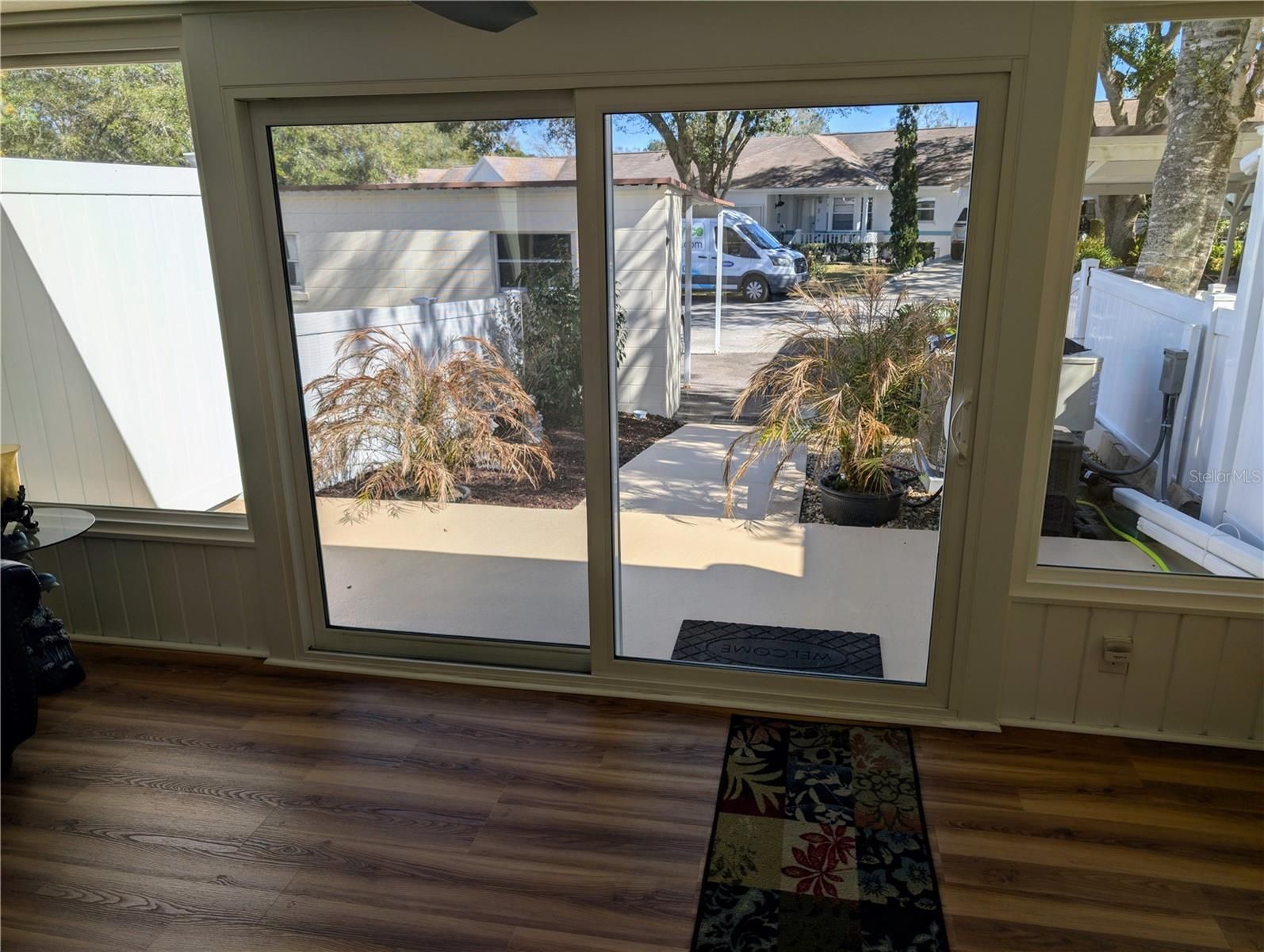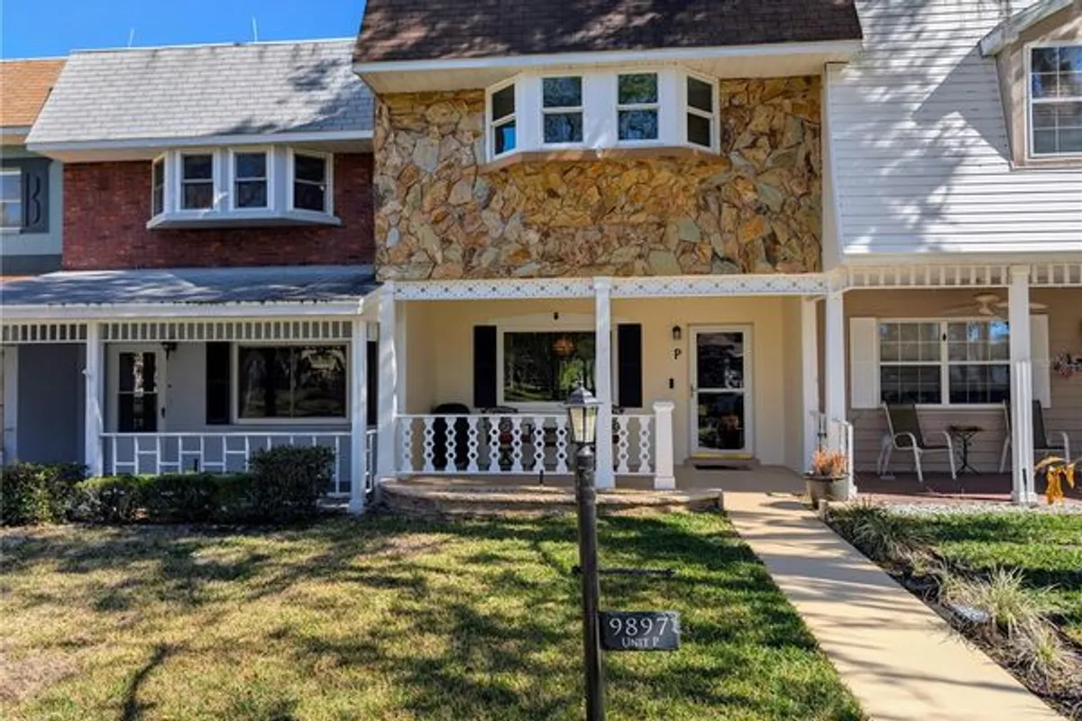 Move-In Ready! This updated well kept spacious home (2050 SF Under Roof) sits in a European Style Neighborhood and is conveniently located by golf cart to many amenities, restaurants, banks, Publix and more. Updated with solid wood cherry stained kitchen soft-close cabinets with glass door inserts, kitchen granite countertop with a full height granite kitchen backsplash, high end stainless steel kitchen appliances including a convection oven, and a reverse osmosis drinking water system. Updated interior trim, electrical outlets and Decora light switches, lever handle door knobs, roof: 2020, hot water heater: 2020, double hung insulated windows throughout: 2020, rear gutter: 2020, front door window insert with blinds inside, 4 Ton HVAC: 2021, exterior paint: 2022, five smart DC motor ceiling fans, a smart thermostat, upgraded landscaping, and a Sun Room enclosure (160 SF): 2024-2025. All baths have been updated and a 2025 smart GE Ultrafresh Washer and Steam Dryer are included as well. Two parking places and a storage shed. Dual kitchen pantries, a kitchen island, a beautiful crystal chandelier, a wall-to-ceiling wood burning stone fireplace are also included features. Conveniently, the HOA covers your lawn mowing, fertilizing, edging and blowing, shrub and tree trimming, roof repairs, exterior building repairs and exterior painting, exterior building insurance, cable TV, lawn sprinklers, lawn irrigation, monitored entry gates, trash and recycling, and access to many enjoyable amenities and clubs.