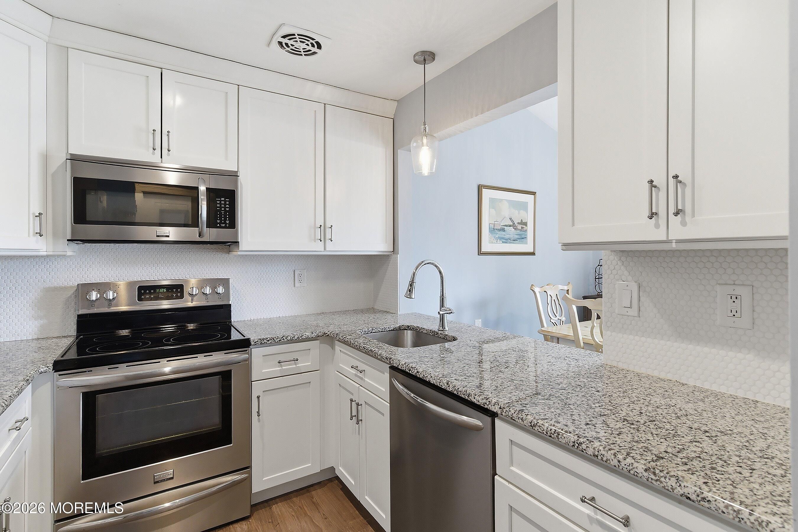 This is a Coming Soon listing and can not be shown until 4/6/2026. Welcome to your dream home in gated Shadow Lake Village! This updated first-floor condo features 2 spacious bedrooms and 2 full bathrooms. Cathedral ceilings in the sitting and dining rooms create an airy atmosphere, solid wood 5-panel doors add elegance throughout. Enjoy both front and back patios for relaxing or entertaining. Parking is easy with a spot right in front plus your own private garage. The kitchen boasts granite countertops, generous cabinet space, and modern stainless steel appliances. Step outside to walking trails and enjoy a variety of community amenities--golf, tennis, pool, pickleball, shuffleboard, fitness center, clubhouse with pool table room, ping pong, library, and entertainment center. Convenient to downtown Red Bank, beaches, GSP, and NYC ferry