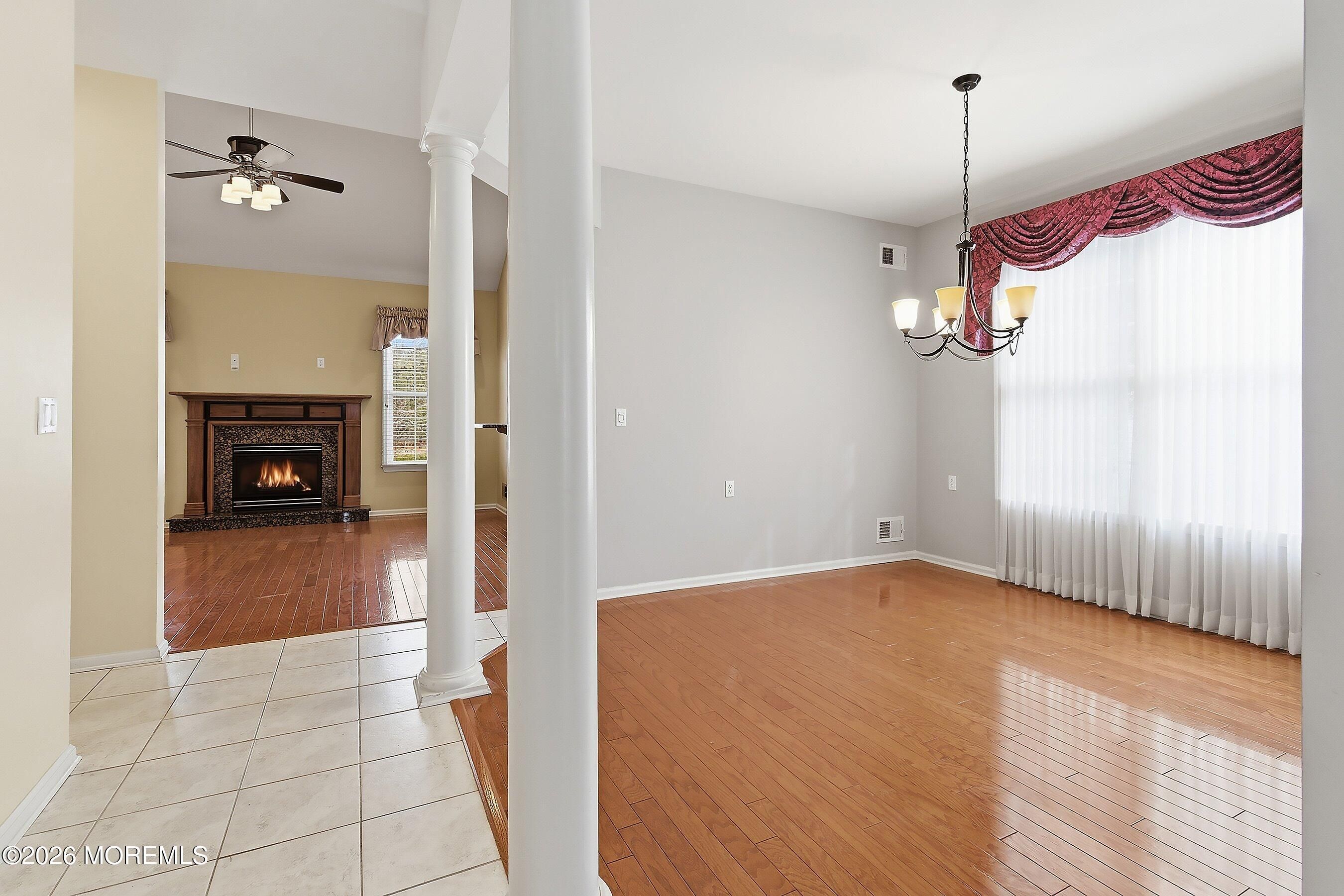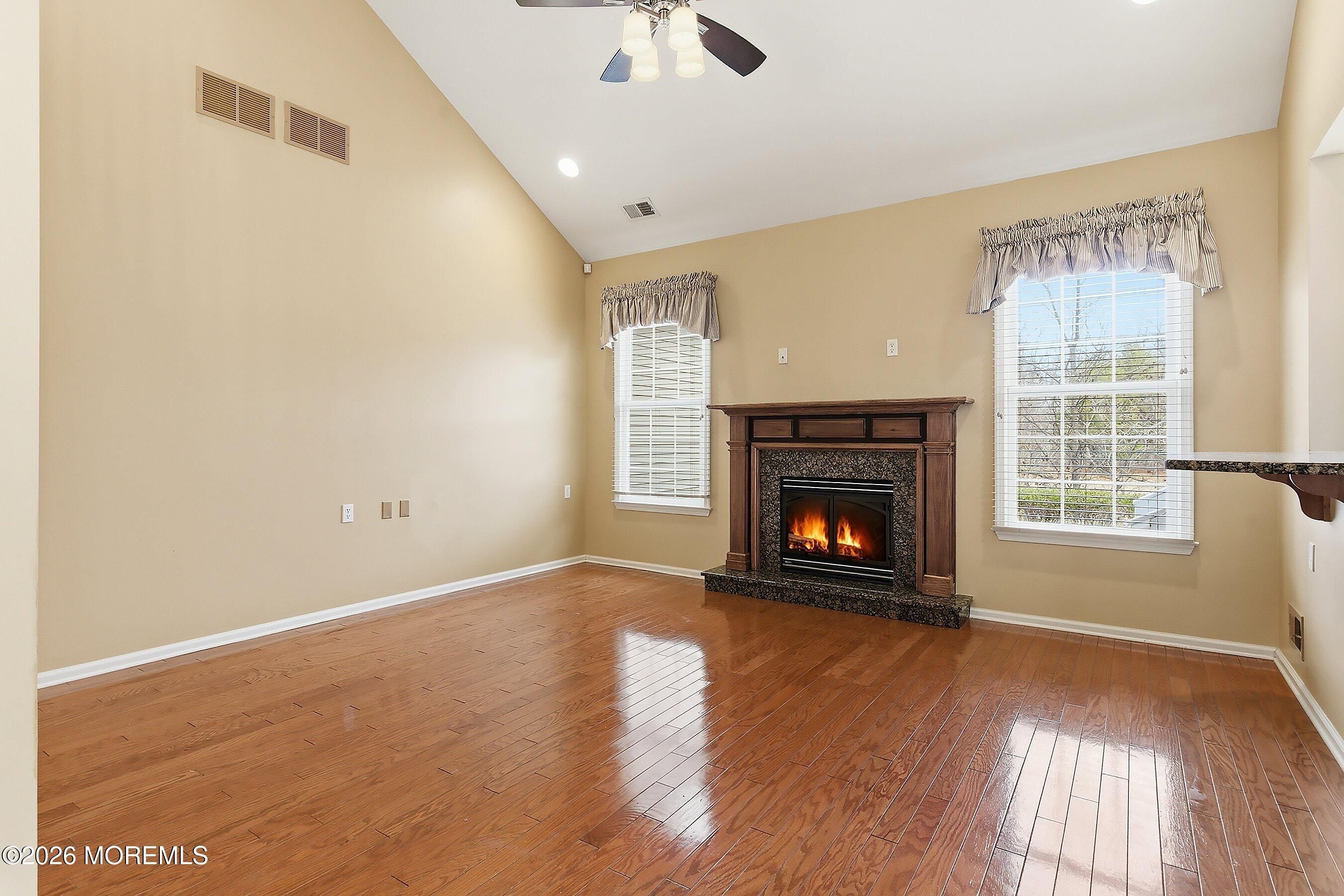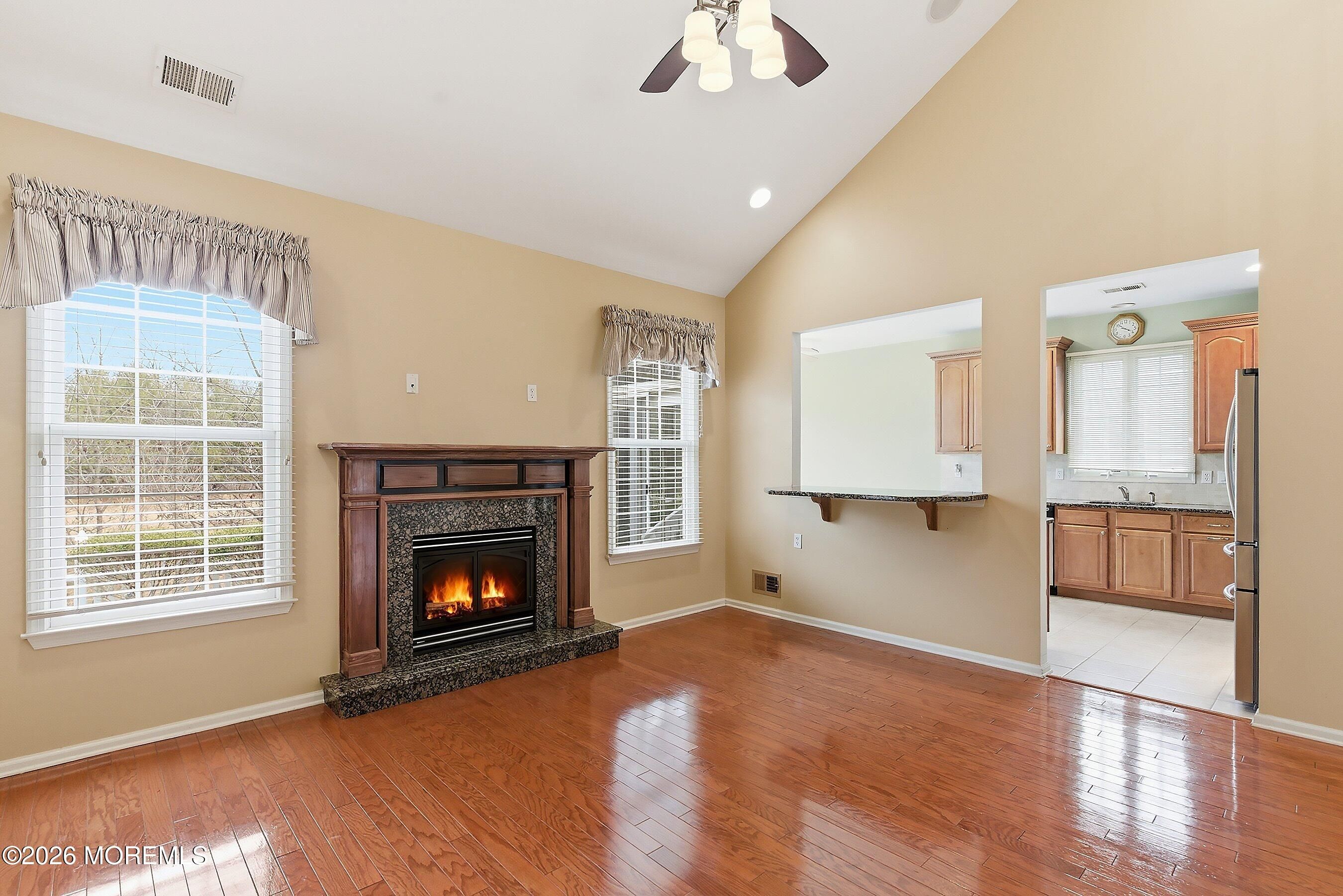 Welcome to this beautifully maintained home in the highly desirable Rolling Meadows adult community. This inviting residence offers comfort, space and low-maintenance living in one of Ocean Township's most sought after neighborhoods. Step inside to a dramatic two-story entry with ceramic tile flooring that opens to a bright and welcoming layout. The eat in kitchen features granite countertops, tile flooring and backsplash and stainless steel appliances with sliders leading to a private concrete patio, perfect for outdoor dining or relaxing. The spacious family room showcases a vaulted ceiling, recessed lighting, engineered wood floors and a cozy gas fireplace creating the perfect gathering space. A formal living room and dining room, both with engineered flooring provide great space for entertaining. The first floor primary suite offers engineered floors, tray ceiling and two walk in closets. The primary bath includes double sinks, a soaking tub, and separate shower. A convenient half bath completes the main level. The second floor features a versatile loft area, guest bedroom and full bath with tub, ideal for visitors, hobbies or a home office. Enjoy the lifestyle offered at Rolling Meadows conveniently located near shopping, dining, parks and Jersey Shore beaches. Don't miss the opportunity to make this your next home.
