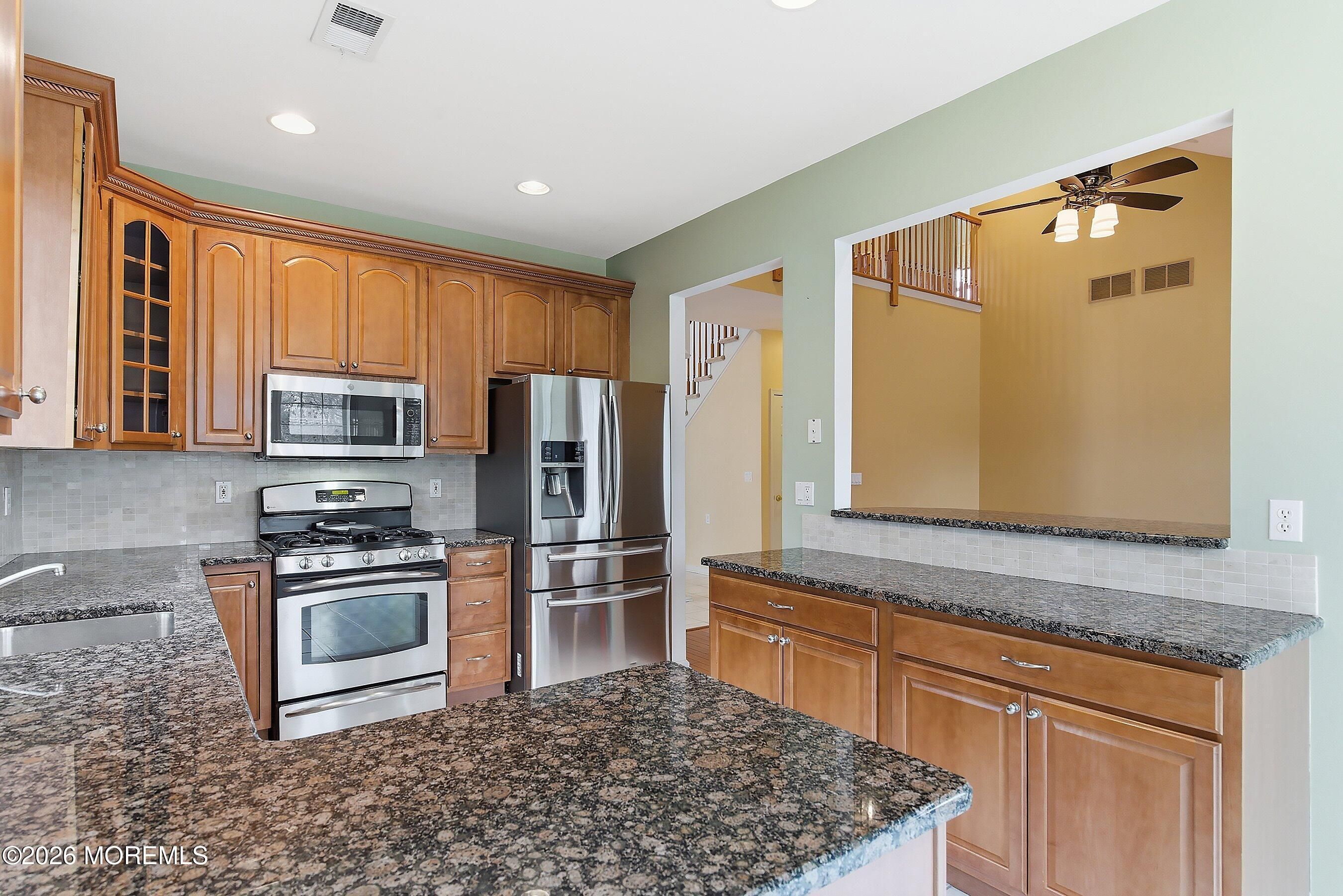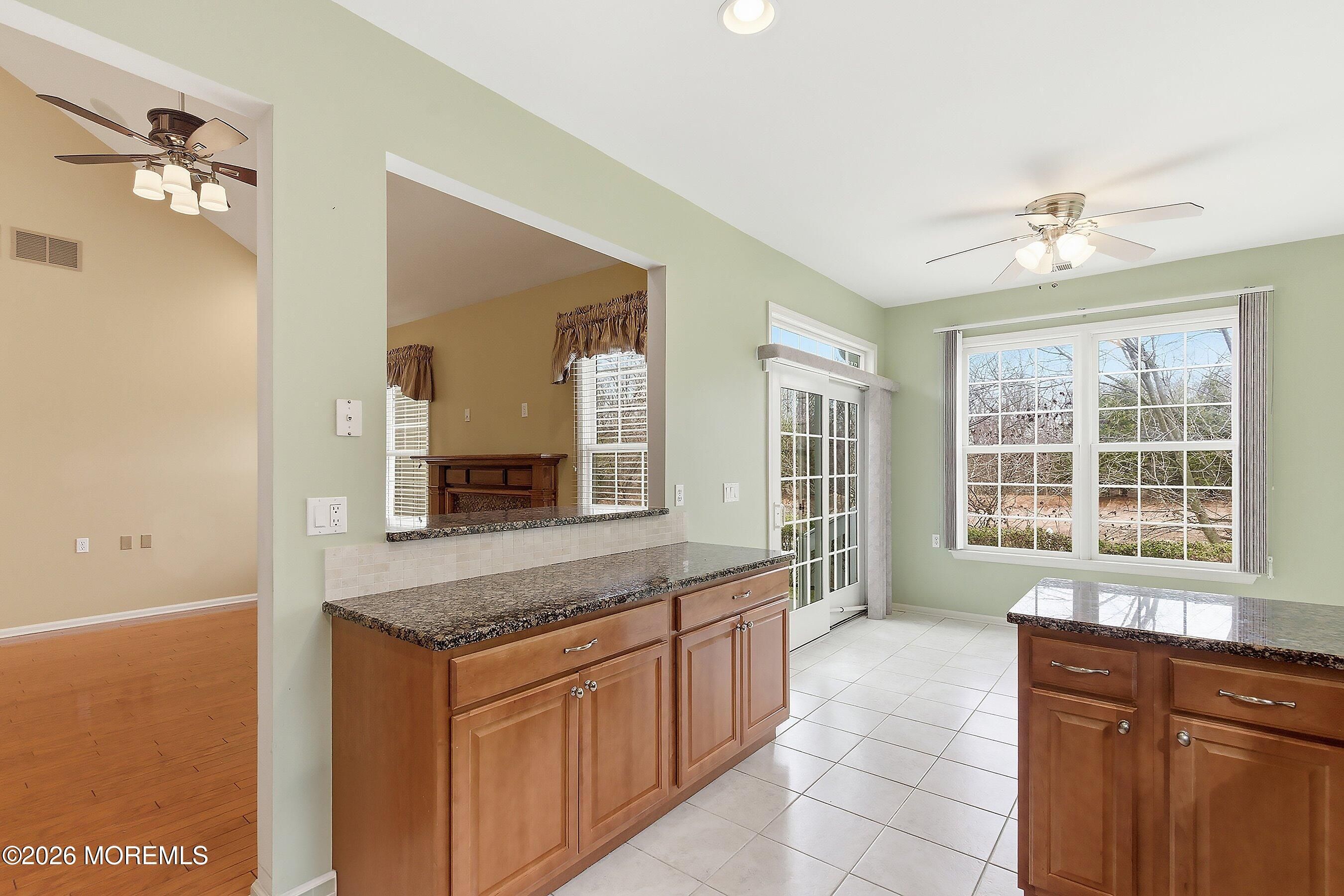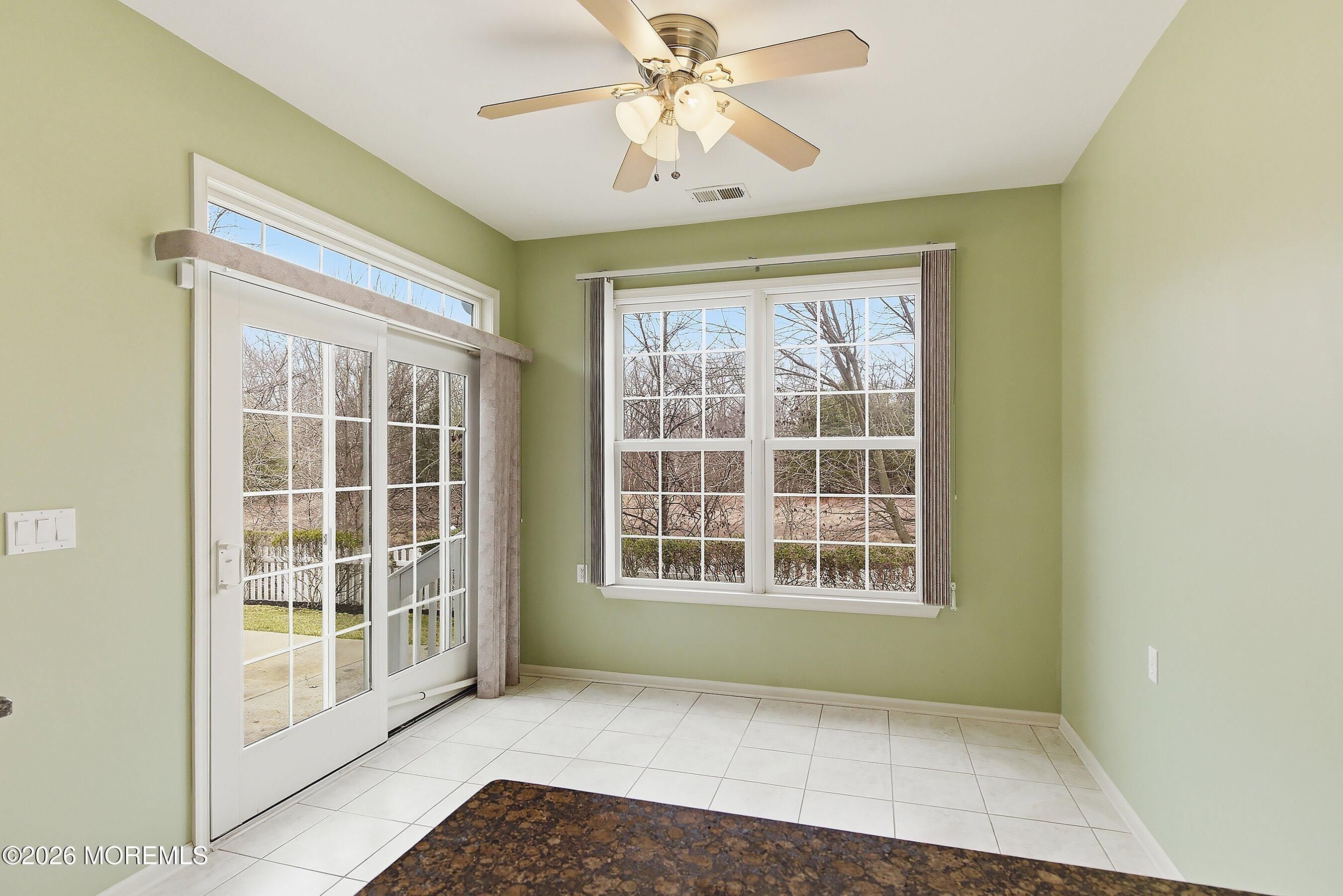 Welcome to this beautifully maintained home in the highly desirable Rolling Meadows adult community. This inviting residence offers comfort, space and low-maintenance living in one of Ocean Township's most sought after neighborhoods. Step inside to a dramatic two-story entry with ceramic tile flooring that opens to a bright and welcoming layout. The eat in kitchen features granite countertops, tile flooring and backsplash and stainless steel appliances with sliders leading to a private concrete patio, perfect for outdoor dining or relaxing. The spacious family room showcases a vaulted ceiling, recessed lighting, engineered wood floors and a cozy gas fireplace creating the perfect gathering space. A formal living room and dining room, both with engineered flooring provide great space for entertaining. The first floor primary suite offers engineered floors, tray ceiling and two walk in closets. The primary bath includes double sinks, a soaking tub, and separate shower. A convenient half bath completes the main level. The second floor features a versatile loft area, guest bedroom and full bath with tub, ideal for visitors, hobbies or a home office. Enjoy the lifestyle offered at Rolling Meadows conveniently located near shopping, dining, parks and Jersey Shore beaches. Don't miss the opportunity to make this your next home.