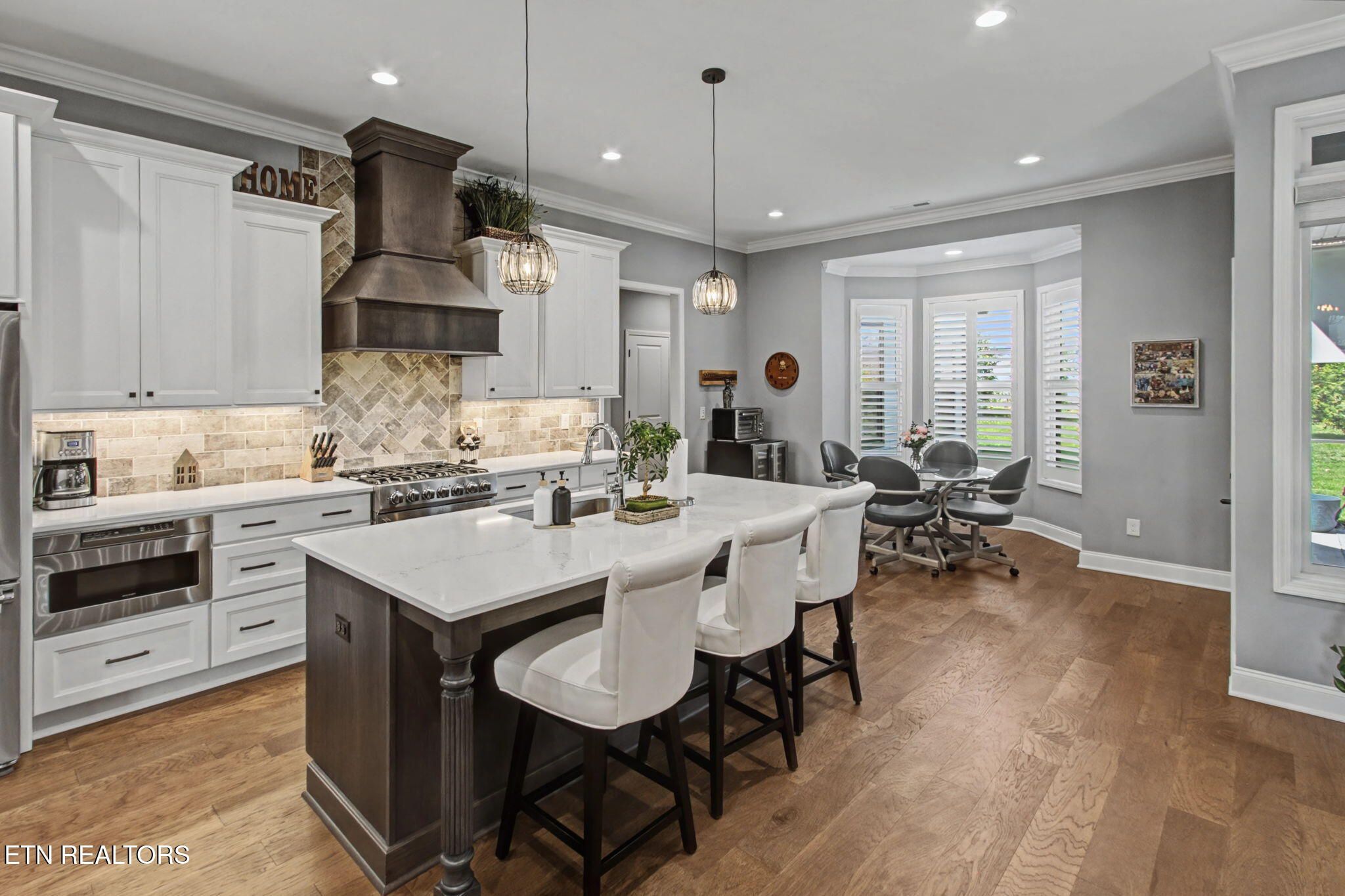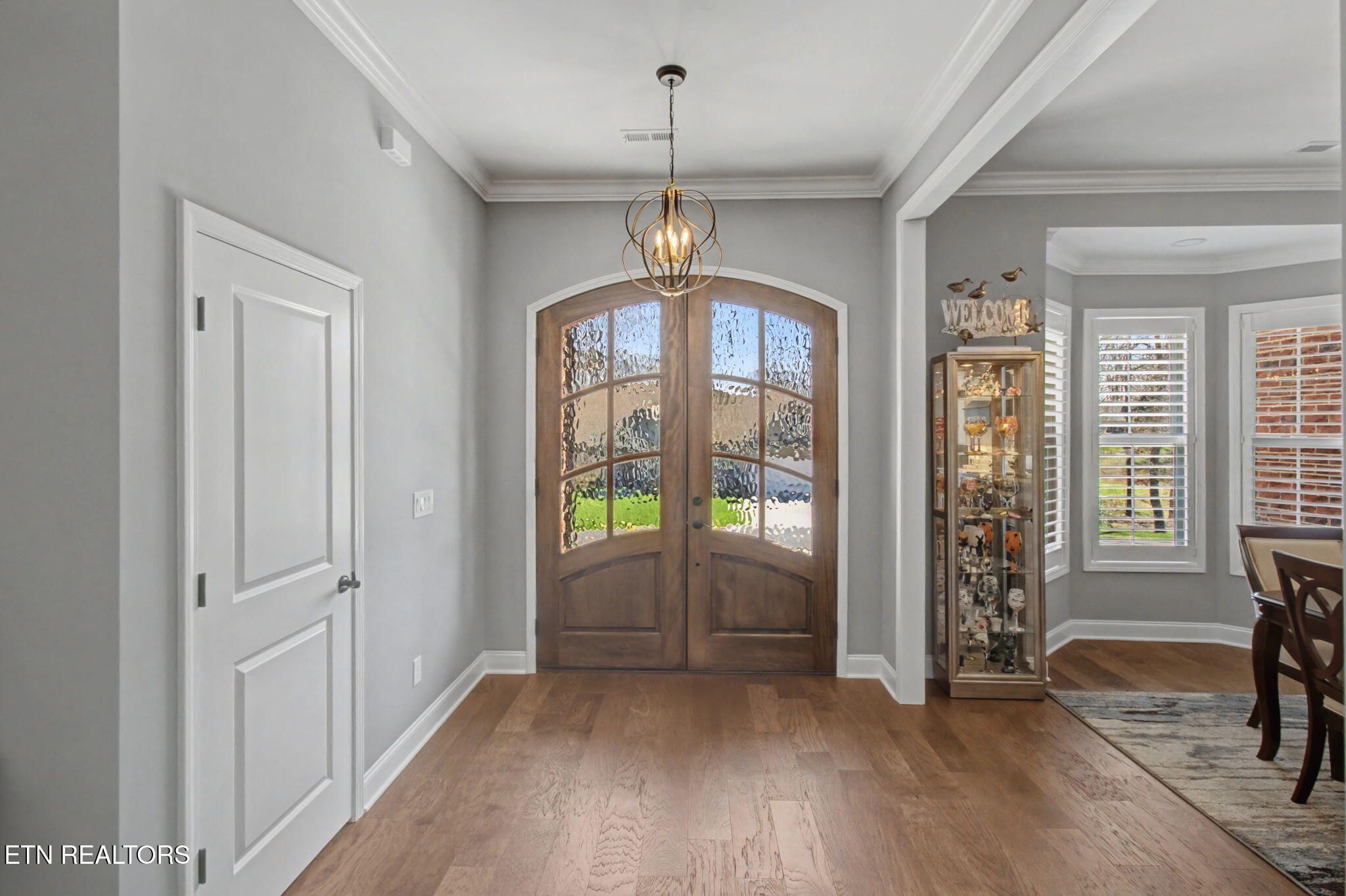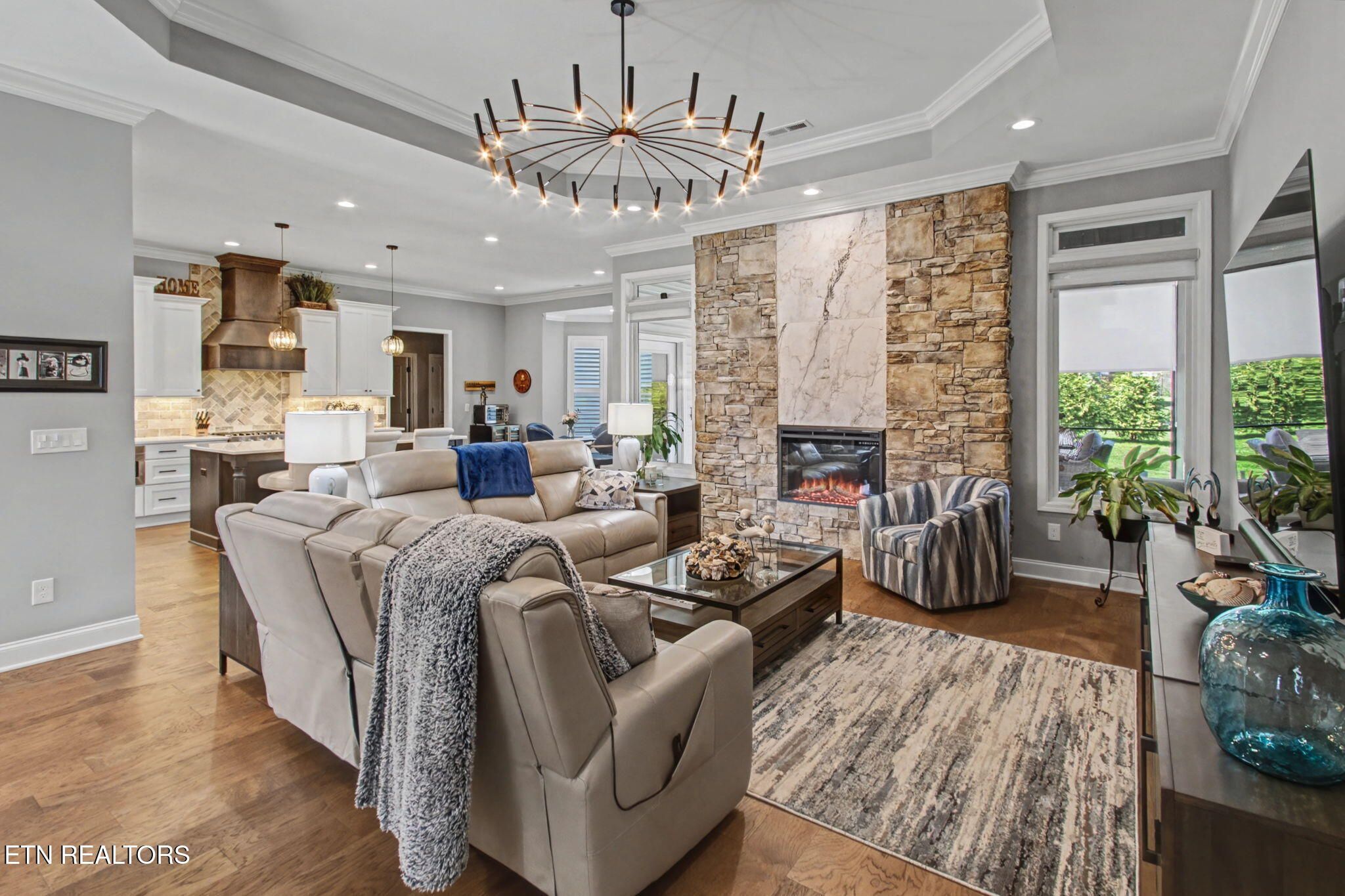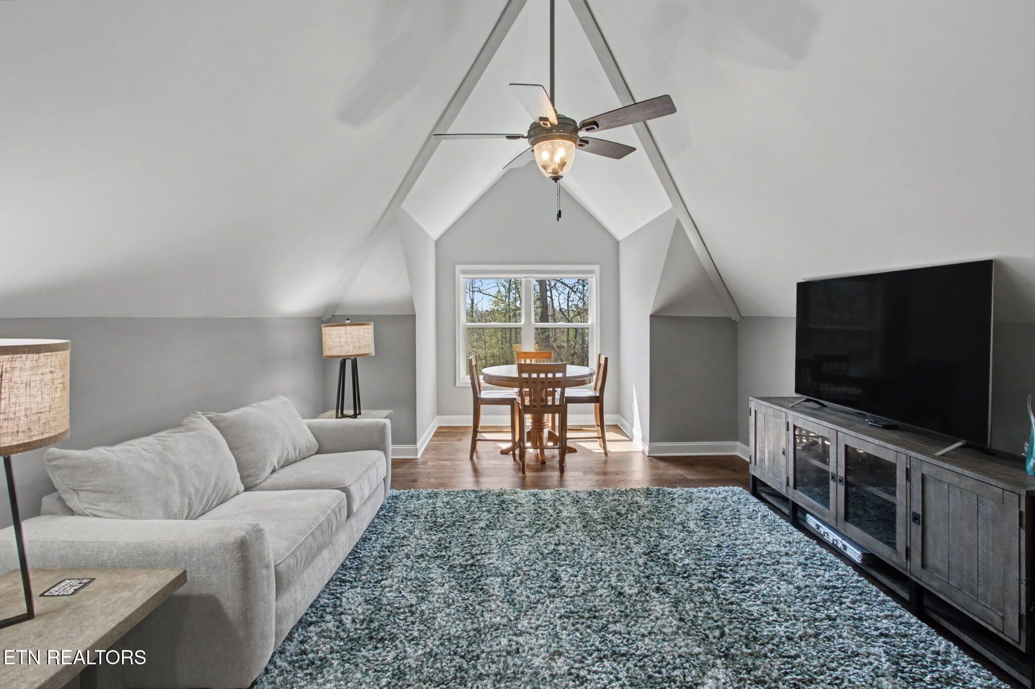 Welcome to better-than-new luxury living at 99 Walosi Way! This immaculate 3-bedroom, 3.5-bath home offers 3,383 sq ft of Elegant, move-in-ready space, built with premium finishes and thoughtful updates throughout. Step through impressive 8-foot double wooden doors and soaring 10-foot ceilings into the foyer. Crown molding throughout the entire home, setting the tone for refined living with Hardwood Flooring Throughout. The formal dining room impresses with an 11-foot cased opening, elegant chandelier, and plantation shutters. The expansive great room is the heart of the home, featuring a cozy electric fireplace with stackstone surround and tile insert, trey ceiling soaring to 12 feet, modern chandelier, and oversized windows framing the views. The chef's kitchen is a showstopper: gleaming white quartz countertops, custom solid-wood cabinetry, top-tier Viking appliances including a 5-burner gas range, tile backsplash with under-cabinet lighting, under-counter microwave, chrome fixtures, massive island perfect for entertaining, a wall of storage cabinets, and a walk-in custom pantry. The eat-in area boasts plantation shutters and seamless flow to the rest of the home. The primary suite is a true retreat: trey ceilings, abundant natural light via plantation shutters, modern chandelier, hardwood flooring, and a spa-like en-suite bath with tile floors, oversized soaking tub, massive walk-in tiled shower. dual quartz vanities, private water closet, and two expansive custom walk-in closets. Two generous guest bedrooms offer plantation shutters, large closets with custom shelving, and share a beautifully remodeled guest bath featuring dual vanities and a floor-to-ceiling tiled walk-in shower with a pocket door. A dedicated office provides serene golf course views and ample custom shelving for storage or organization. Upstairs, an extra-large bonus/game room awaits with a dry bar, full bath with tub/shower combo, seasonal water views, plentiful storage. Outside, enjoy resort-style living: a brand-new driveway, lovely screened porch with roller blinds (ideal for bug-free relaxation), hot tub that conveys, paver patio perfect for grilling, and a level lot with 9-zone irrigation system. Anderson windows throughout the home. Best of all? Prime location directly across from the renowned Toqua Golf Course--one of Tellico Village's premier championship courses with stunning Tellico Lake and Smoky Mountain views. Enjoy seasonal lake glimpses from your own backyard, plus walking distance to the Toqua Clubhouse for dining, events, and community amenities. This home combines modern elegance, high-end upgrades, and an unbeatable golf/lake lifestyle--truly better than new and ready for its next fortunate owners. Don't miss this rare opportunity in one of East Tennessee's most sought-after communities!