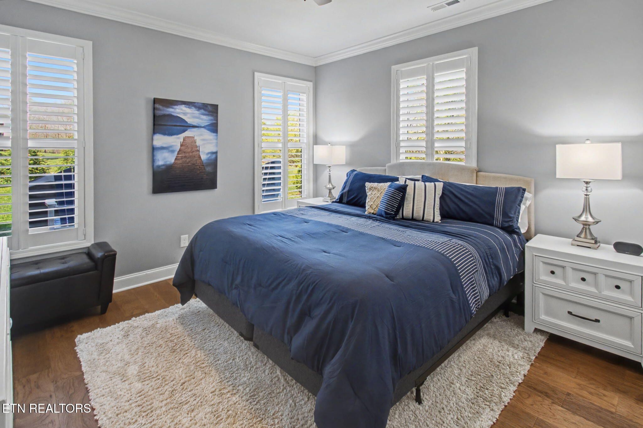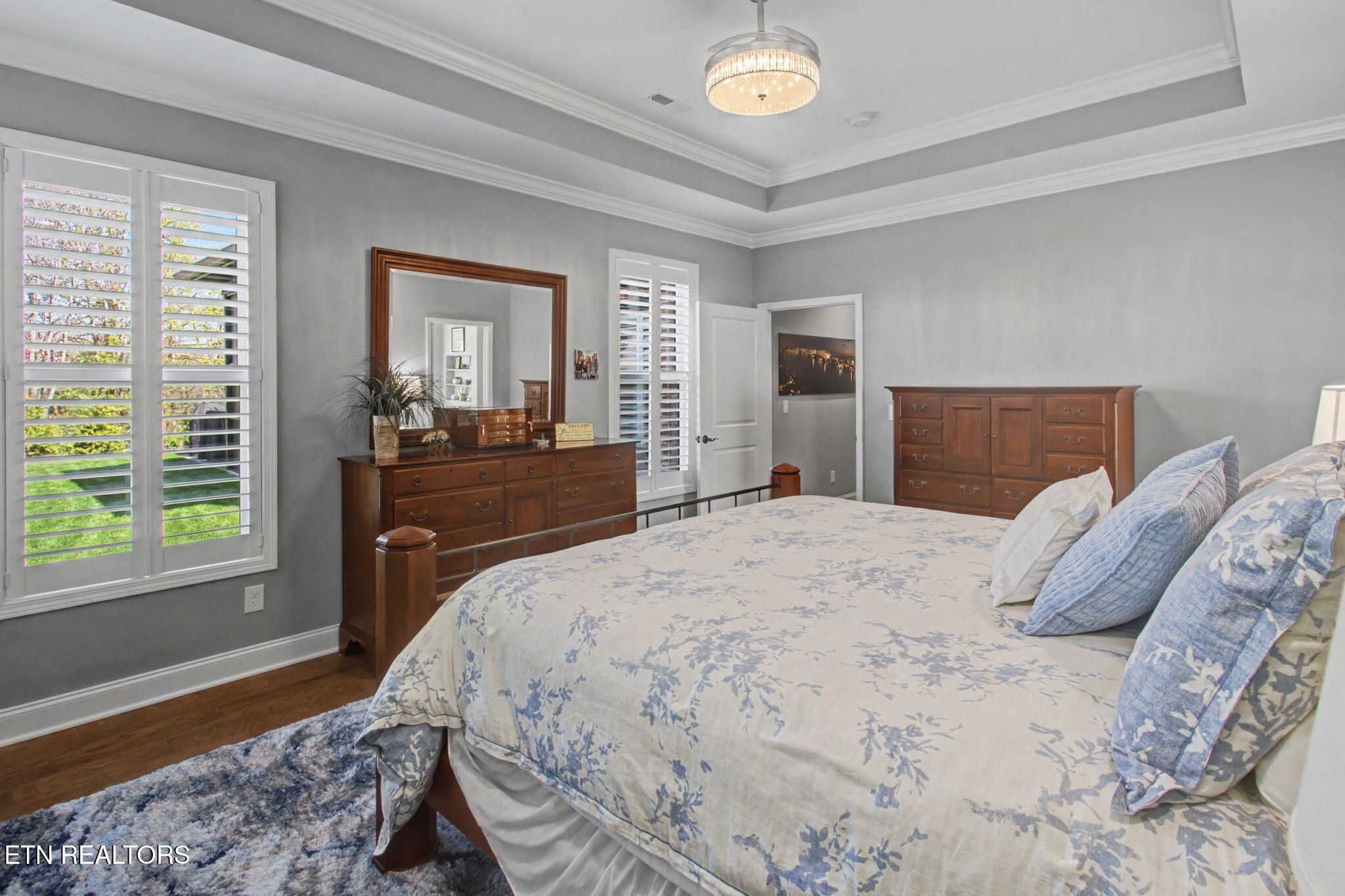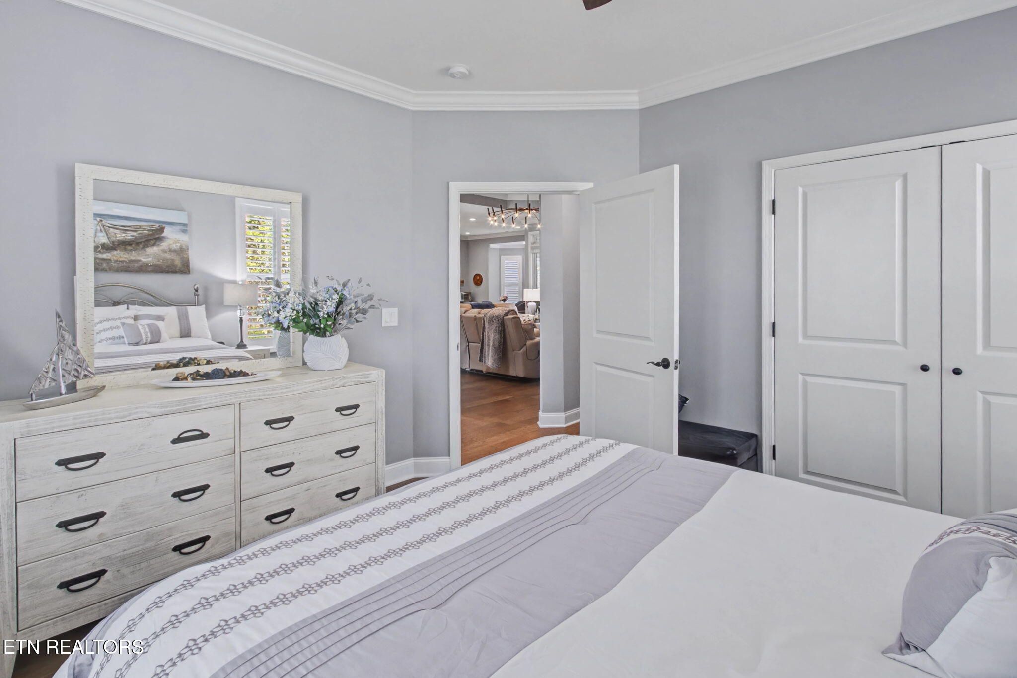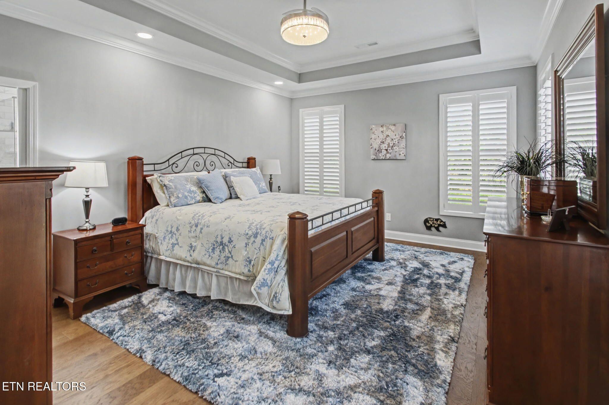 Welcome to better-than-new luxury living at 99 Walosi Way! This immaculate 3-bedroom, 3.5-bath home offers 3,383 sq ft of Elegant, move-in-ready space, built with premium finishes and thoughtful updates throughout. Step through impressive 8-foot double wooden doors and soaring 10-foot ceilings into the foyer. Crown molding throughout the entire home, setting the tone for refined living with Hardwood Flooring Throughout. The formal dining room impresses with an 11-foot cased opening, elegant chandelier, and plantation shutters. The expansive great room is the heart of the home, featuring a cozy electric fireplace with stackstone surround and tile insert, trey ceiling soaring to 12 feet, modern chandelier, and oversized windows framing the views. The chef's kitchen is a showstopper: gleaming white quartz countertops, custom solid-wood cabinetry, top-tier Viking appliances including a 5-burner gas range, tile backsplash with under-cabinet lighting, under-counter microwave, chrome fixtures, massive island perfect for entertaining, a wall of storage cabinets, and a walk-in custom pantry. The eat-in area boasts plantation shutters and seamless flow to the rest of the home. The primary suite is a true retreat: trey ceilings, abundant natural light via plantation shutters, modern chandelier, hardwood flooring, and a spa-like en-suite bath with tile floors, oversized soaking tub, massive walk-in tiled shower. dual quartz vanities, private water closet, and two expansive custom walk-in closets. Two generous guest bedrooms offer plantation shutters, large closets with custom shelving, and share a beautifully remodeled guest bath featuring dual vanities and a floor-to-ceiling tiled walk-in shower with a pocket door. A dedicated office provides serene golf course views and ample custom shelving for storage or organization. Upstairs, an extra-large bonus/game room awaits with a dry bar, full bath with tub/shower combo, seasonal water views, plentiful storage. Outside, enjoy resort-style living: a brand-new driveway, lovely screened porch with roller blinds (ideal for bug-free relaxation), hot tub that conveys, paver patio perfect for grilling, and a level lot with 9-zone irrigation system. Anderson windows throughout the home. Best of all? Prime location directly across from the renowned Toqua Golf Course--one of Tellico Village's premier championship courses with stunning Tellico Lake and Smoky Mountain views. Enjoy seasonal lake glimpses from your own backyard, plus walking distance to the Toqua Clubhouse for dining, events, and community amenities. This home combines modern elegance, high-end upgrades, and an unbeatable golf/lake lifestyle--truly better than new and ready for its next fortunate owners. Don't miss this rare opportunity in one of East Tennessee's most sought-after communities!