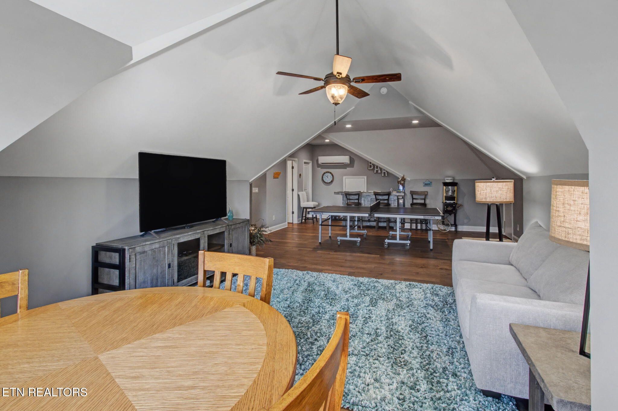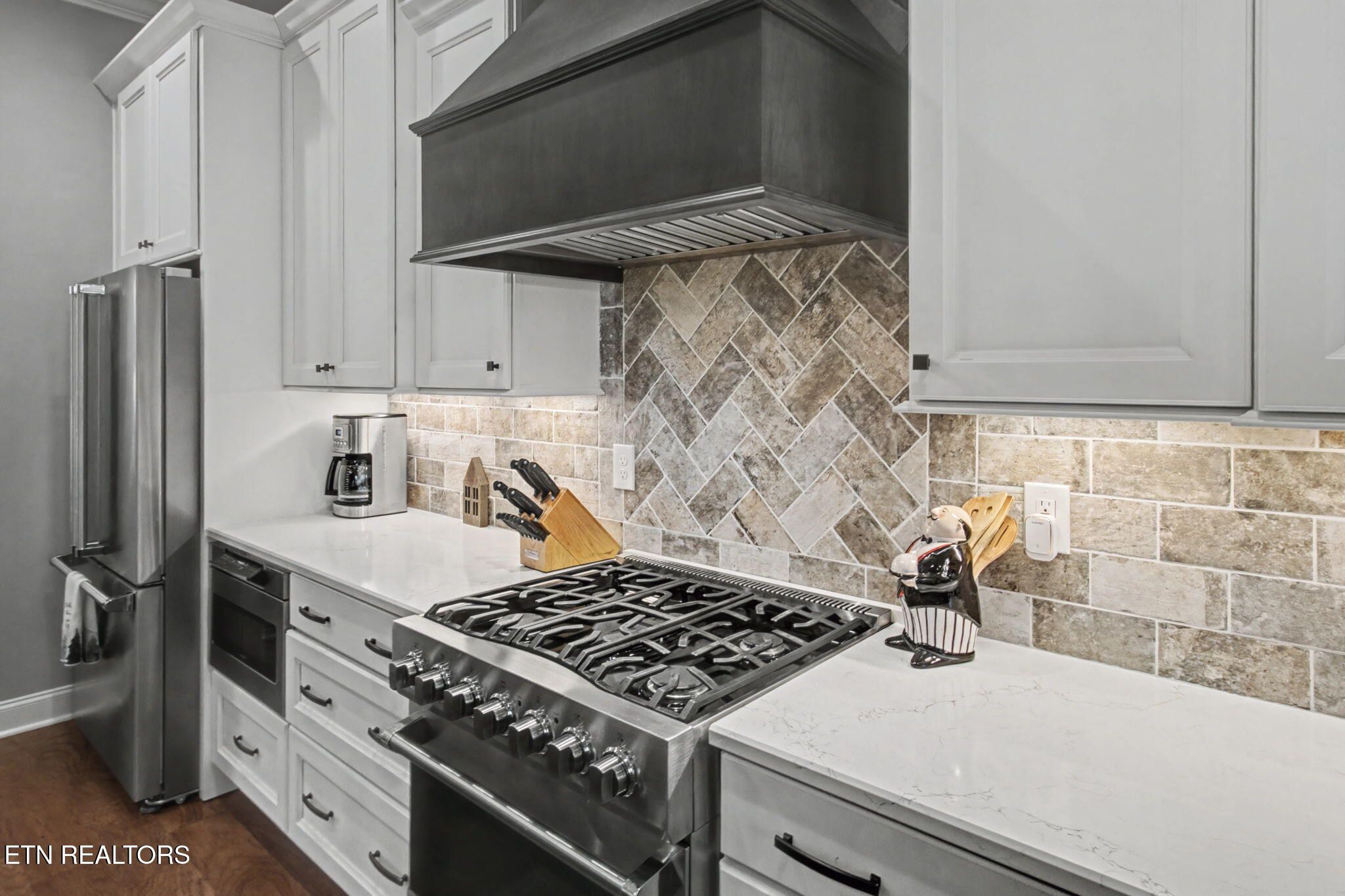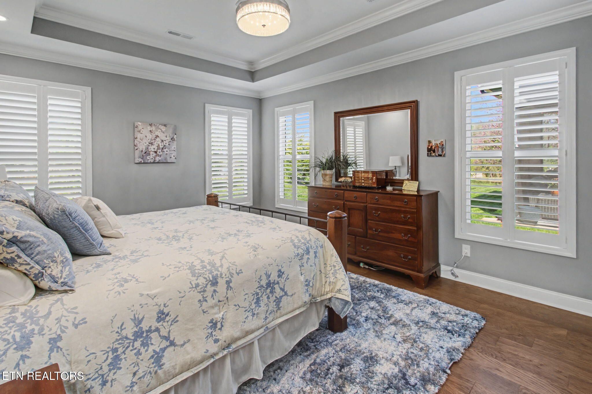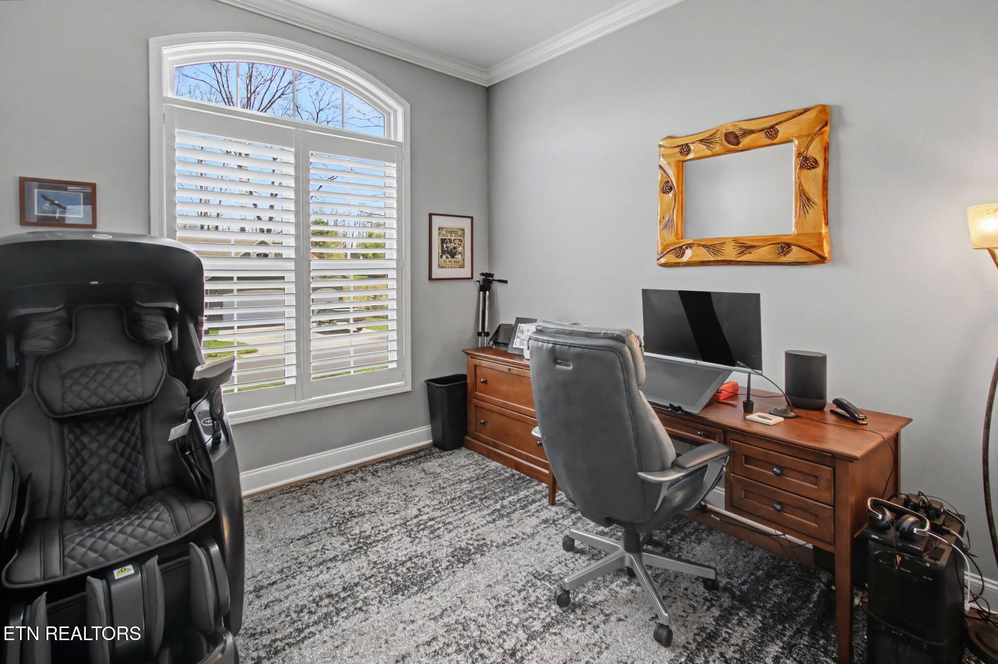 Welcome to better-than-new luxury living at 99 Walosi Way! This immaculate 3-bedroom, 3.5-bath home offers 3,383 sq ft of Elegant, move-in-ready space, built with premium finishes and thoughtful updates throughout. Step through impressive 8-foot double wooden doors and soaring 10-foot ceilings into the foyer. Crown molding throughout the entire home, setting the tone for refined living with Hardwood Flooring Throughout. The formal dining room impresses with an 11-foot cased opening, elegant chandelier, and plantation shutters. The expansive great room is the heart of the home, featuring a cozy electric fireplace with stackstone surround and tile insert, trey ceiling soaring to 12 feet, modern chandelier, and oversized windows framing the views. The chef's kitchen is a showstopper: gleaming white quartz countertops, custom solid-wood cabinetry, top-tier Viking appliances including a 5-burner gas range, tile backsplash with under-cabinet lighting, under-counter microwave, chrome fixtures, massive island perfect for entertaining, a wall of storage cabinets, and a walk-in custom pantry. The eat-in area boasts plantation shutters and seamless flow to the rest of the home. The primary suite is a true retreat: trey ceilings, abundant natural light via plantation shutters, modern chandelier, hardwood flooring, and a spa-like en-suite bath with tile floors, oversized soaking tub, massive walk-in tiled shower. dual quartz vanities, private water closet, and two expansive custom walk-in closets. Two generous guest bedrooms offer plantation shutters, large closets with custom shelving, and share a beautifully remodeled guest bath featuring dual vanities and a floor-to-ceiling tiled walk-in shower with a pocket door. A dedicated office provides serene golf course views and ample custom shelving for storage or organization. Upstairs, an extra-large bonus/game room awaits with a dry bar, full bath with tub/shower combo, seasonal water views, plentiful storage. Outside, enjoy resort-style living: a brand-new driveway, lovely screened porch with roller blinds (ideal for bug-free relaxation), hot tub that conveys, paver patio perfect for grilling, and a level lot with 9-zone irrigation system. Anderson windows throughout the home. Best of all? Prime location directly across from the renowned Toqua Golf Course--one of Tellico Village's premier championship courses with stunning Tellico Lake and Smoky Mountain views. Enjoy seasonal lake glimpses from your own backyard, plus walking distance to the Toqua Clubhouse for dining, events, and community amenities. This home combines modern elegance, high-end upgrades, and an unbeatable golf/lake lifestyle--truly better than new and ready for its next fortunate owners. Don't miss this rare opportunity in one of East Tennessee's most sought-after communities!