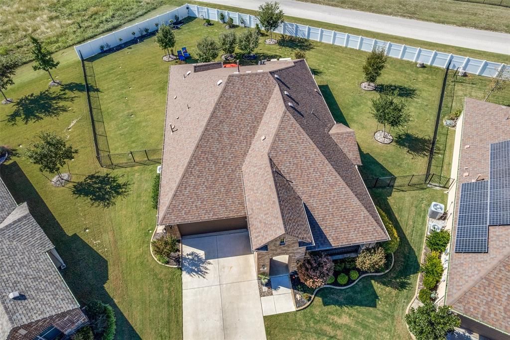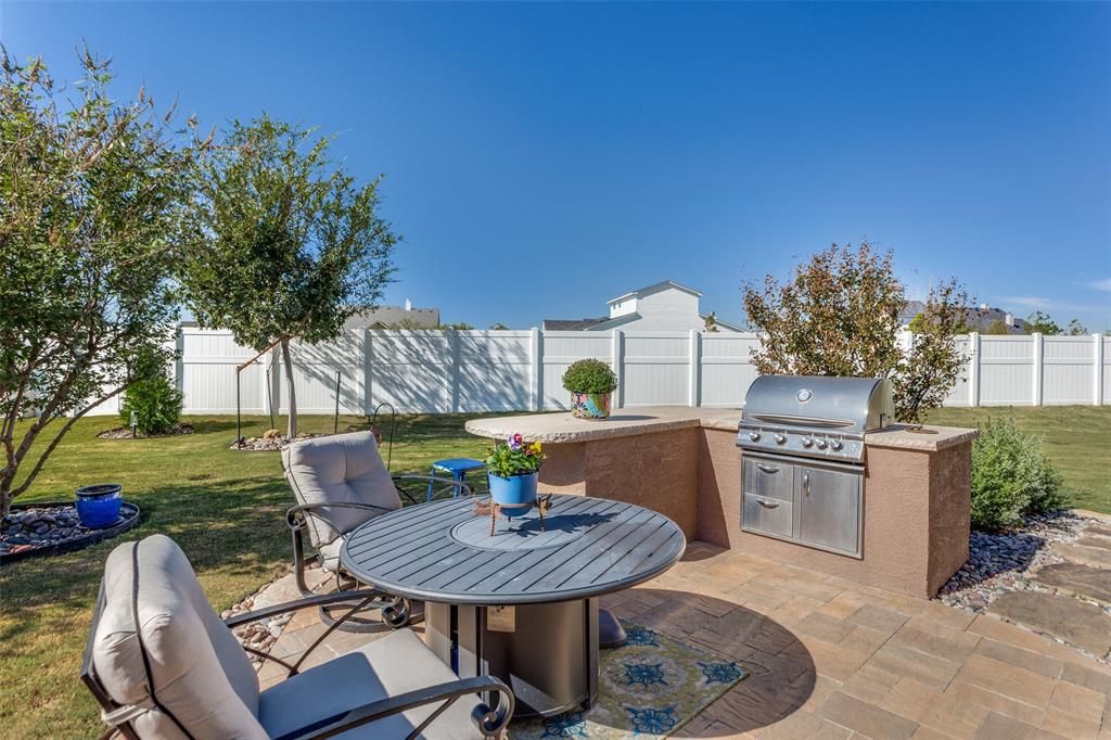 Discover comfort, style, and privacy in this beautifully upgraded home on a large, fully fenced lot in the highly sought-after Robson Ranch, Denton community. Designed with high-end finishes, this open-concept home features a bright, spacious living area, a gourmet kitchen with premium appliances, a Blanco sink, and a built-in outdoor grill with gas line—perfect for entertaining. The primary suite offers a relaxing retreat with a spa-like bath, generous walk-in closet, and peaceful views of the fenced backyard, where you can enjoy beautiful Texas sunsets. Additional features include an attic lift and drop-down stairs, adding convenience and valuable storage space. Step outside to your private, fully fenced backyard oasis—ideal for pets, gardening, or quiet evenings under the covered patio surrounded by mature landscaping. Residents of Robson Ranch enjoy resort-style amenities including 16 pickleball courts, tennis, golf, fitness centers, indoor and outdoor pools, walking trails, community gardens, and a large dog park, plus countless clubs and social events. Newly added Bocce area now available . 9900 Silver Rock Way combines thoughtful upgrades, privacy, and an unbeatable active lifestyle—schedule your private showing today..