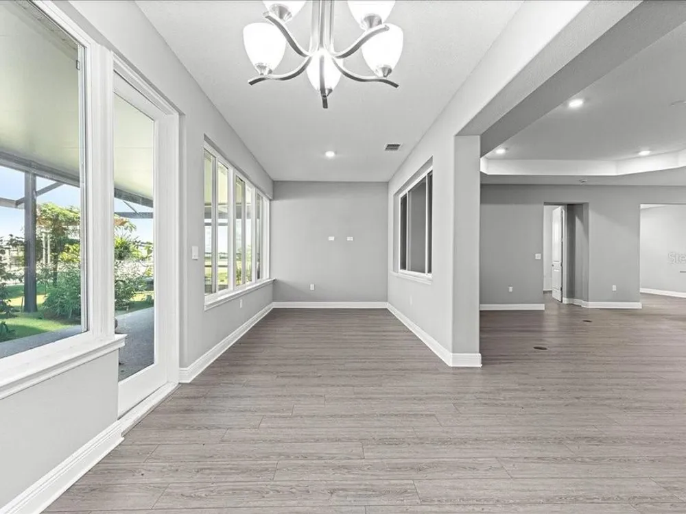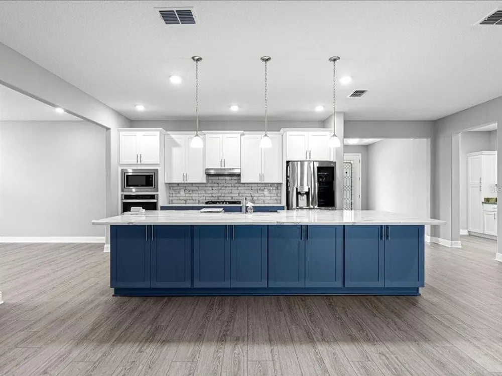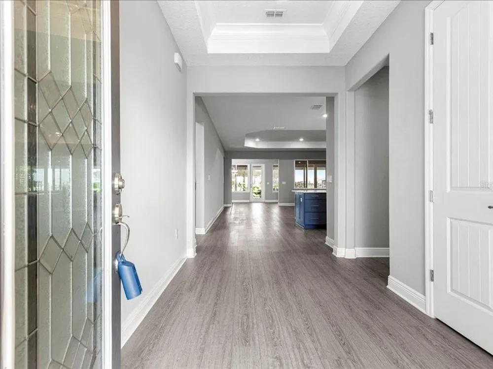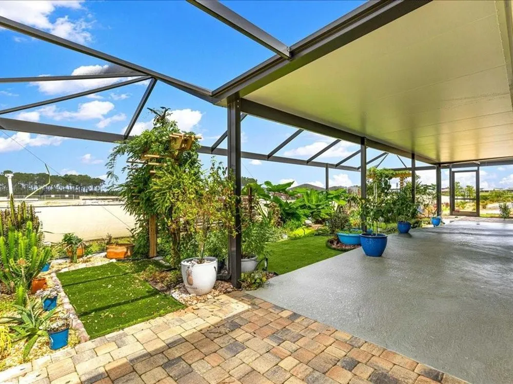 This Wellington model is better than new with many upgrades (See the upgrade sheet in the photos). 3 bedrooms, 3 bathrooms and a 3 car garage built in 2023. The sellers have added a birdcage with garden area on the back. Multiple beautiful plants that will beautify the back of your home and add to the privacy. Paver driveway and walkway. Beautiful neutral flooring throughout the home, pretty quartz counter tops and a chef's dream of a kitchen. Gas top range. Wall oven and microwave. Massive island with a farm sink. Kitchen is wide open to the living area. Large Florida room under heat and air. Primary bedroom with walk in closet. Roll in shower and a double sink, quartz counter top. Tower cabinet on sink for extra storage. Second primary bedroom with step in shower and walk in closet. 3rd bedroom nicely sized with a walk in closet. 3rd bath with a tub/shower combo. Flex space. Owner entrance with multiple cabinets for storage and a butlers pantry was added with shelving for a coffee bar and outlets including USB. Plantation blinds and so MUCH MORE! The new Azura clubhouse is coming soon and only steps from this home. Make your appointment to view today!