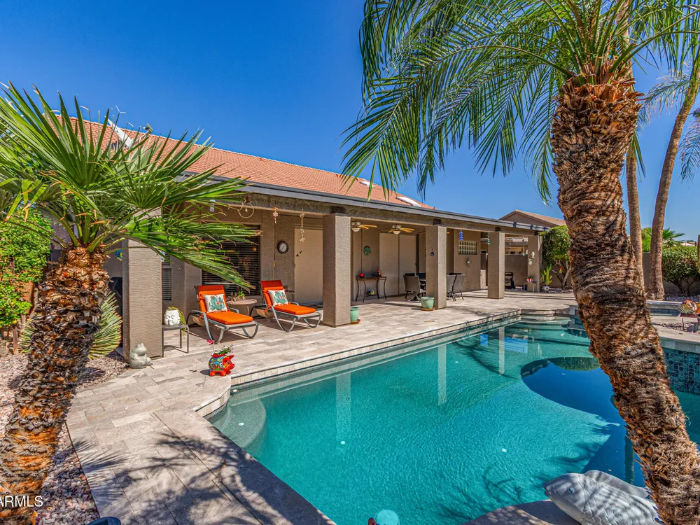 Gorgeous home with Pool! This stunning Bogota model blends style and functionality. The paver driveway, updated exterior paint and gorgeous stone accents greet you upon arrival. Step inside to a well maintained 2 bedroom, 2 bathroom, spacious layout designed for both everyday living and entertaining. The large chef's kitchen is the heart of the home, complete with a gas cooktop, extra sink on the island, and abundant counter space, perfect for cooking and gathering. Entertain with ease thanks to the wet bar with built in wine cooler, ideal for hosting friends and special occasions. A generously sized office/den provides a versatile space for work or hobbies. The private backyard is highlighted by a sparkling pool, perfect for relaxing afternoons and enjoying Arizona's sunny days. When you're ready for even more, you'll love the incredible amenities Sun Lakes has to offer, including golf, tennis, pickleball, pools, fitness centers, restaurants, social clubs, and endless activities. Don't miss the opportunity to enjoy this beautiful home and the lifestyle that comes with it!