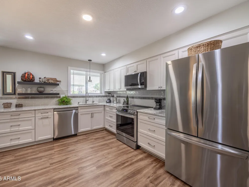 This beautiful Shasta model home is move in ready! Roof 2021, HVAC 2022. Walk in to an open concept kitchen with new appliances and all the comforts you could want in a home. Located on a quiet street with great neighbors. Enjoy your morning coffee and gorgeous sunsets in your fully fenced in block walled yard. Home also has new blown in-insulation.