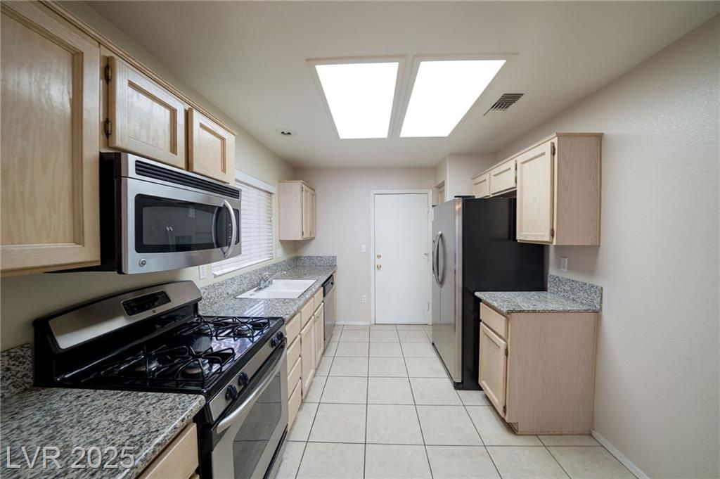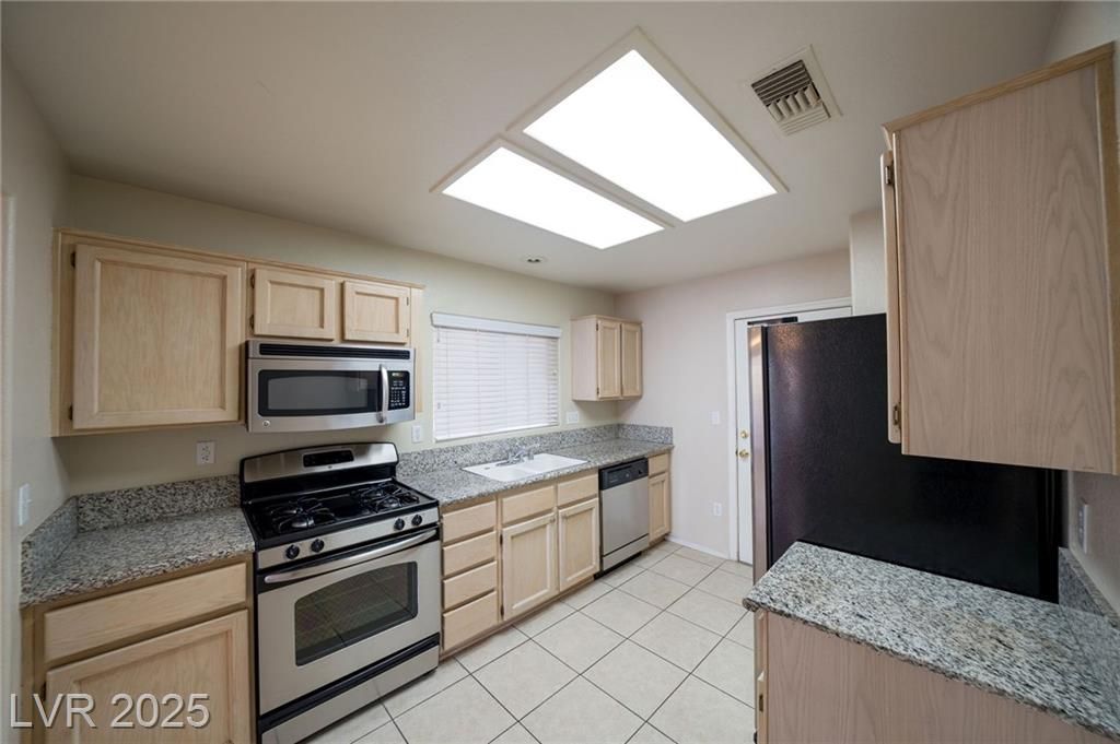 Welcome to this inviting 2-bedroom, 2-bathroom single-story home located in the highly desirable 55+ community of Sun City Summerlin. Featuring an open floor plan with vaulted ceilings and laminate flooring throughout. Primary bedroom provides carpet, a walk-in closet, and an en-suite bath with stone countertops, tile flooring, and a full-size walk-in shower. Secondary bathroom includes stone counters, tile flooring, and a bath/shower combo. Kitchen is spacious with storage and Formica countertops, a microwave, refrigerator, stove, and dishwasher. Enjoy low-maintenance desert landscaping in the front and backyard, along with a covered patio. This home has an attached 2-car garage with dedicated laundry space. Sun City Summerlin residents enjoy amenities including 4 community centers, 3 golf courses, multiple pools, fitness facilities, tennis, pickleball, and more. Conveniently located near Downtown Summerlin for shopping, dining, & entertainment, with easy access to the 215 freeway.