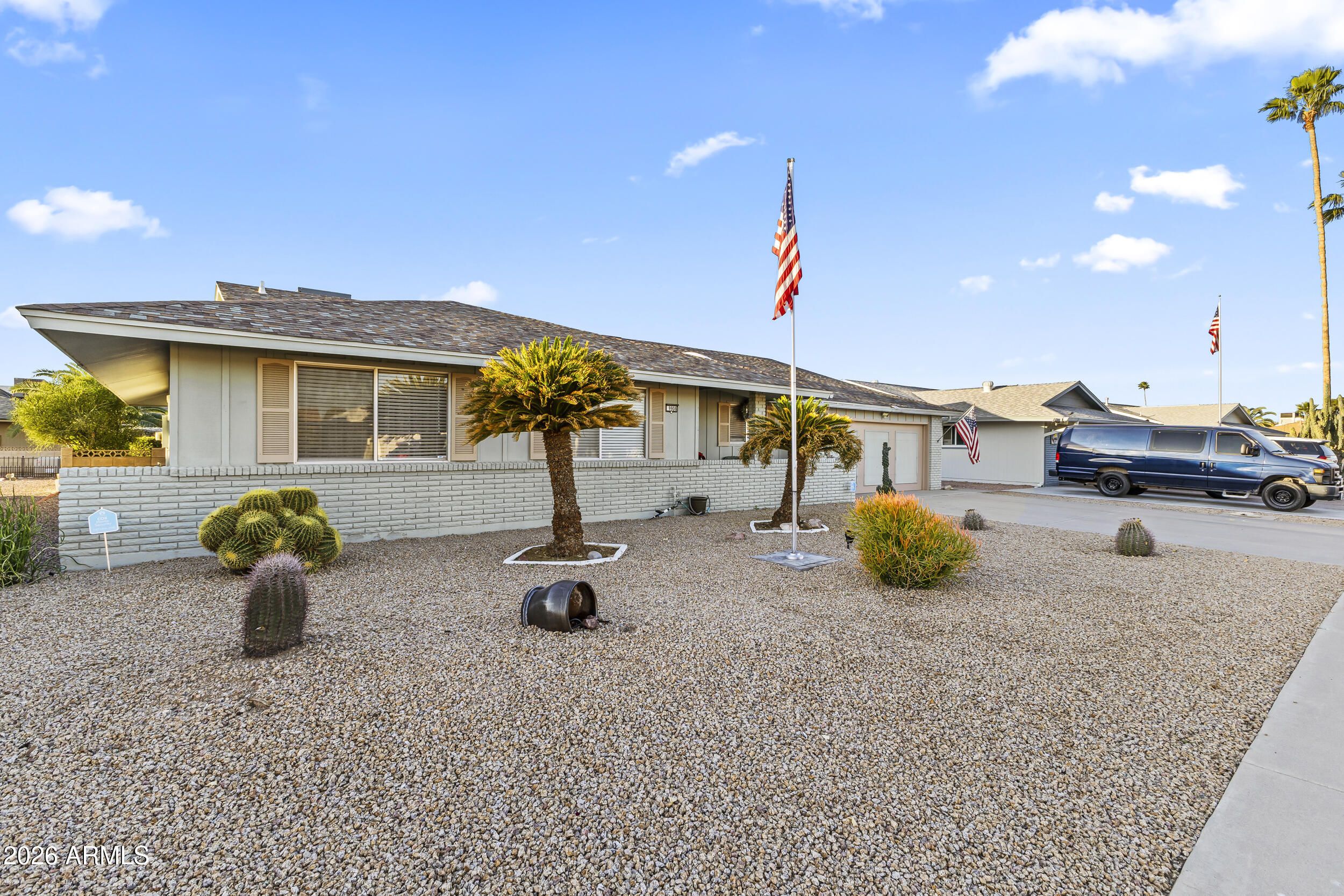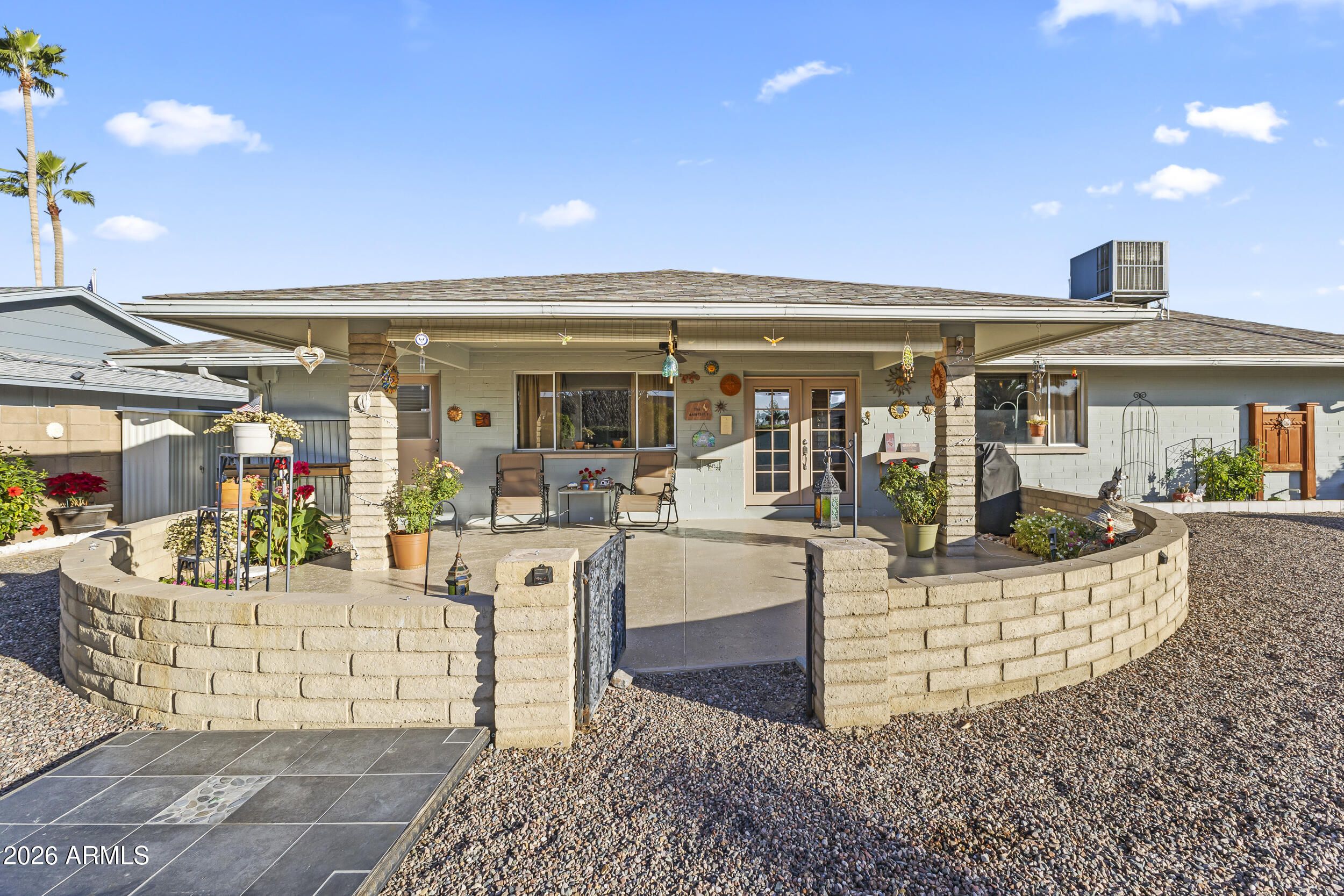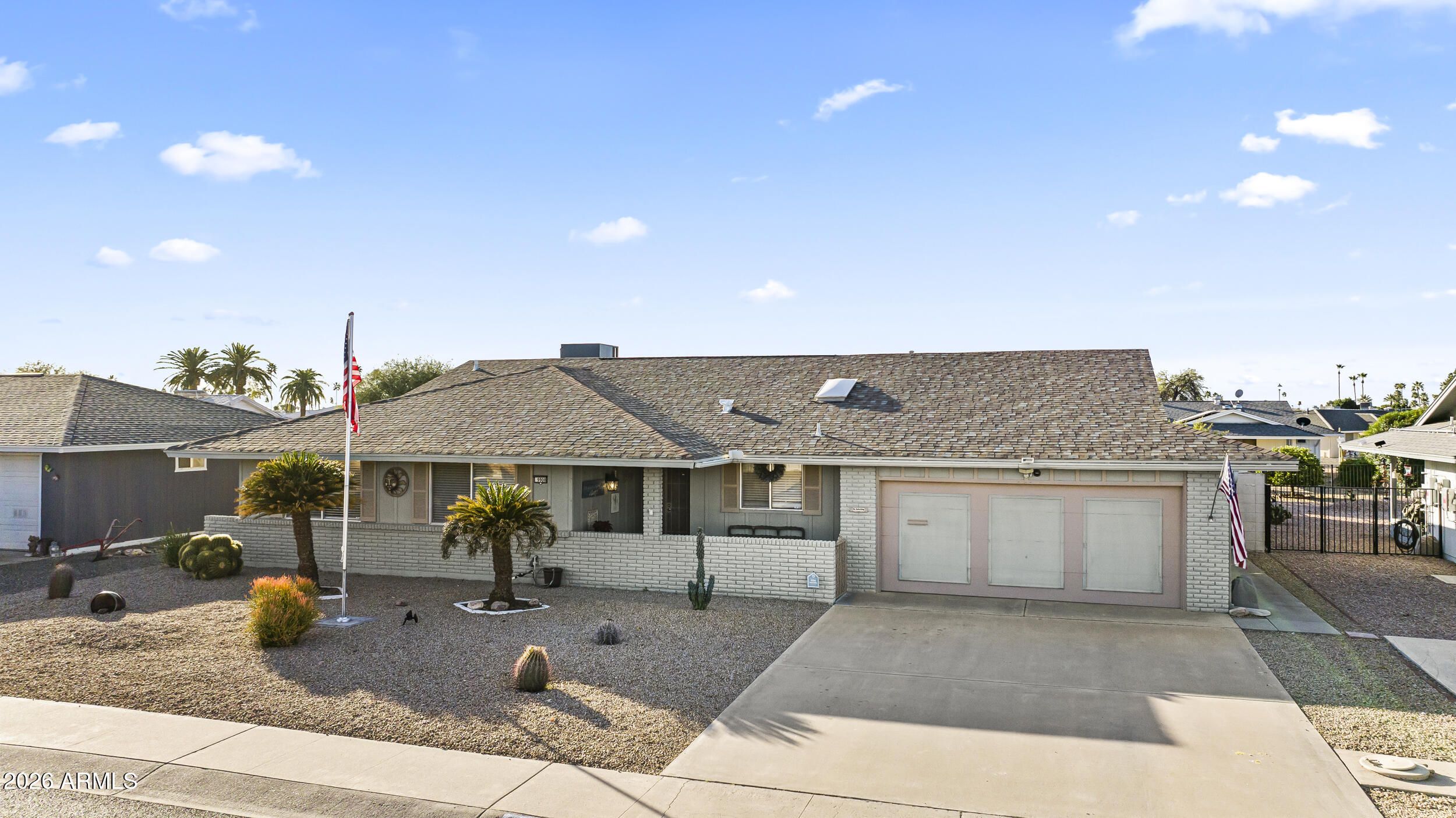 Come see this tastefully updated open floor plan located on a quiet street in beautiful Sun City! Walk in and see the open flow of the home out to the back covered patio through the French doors where you can enjoy a morning cup of coffee or evening glass of wine. This gorgeous home is move-in ready! Newer roof (2021), NEW AC (2024), new cabinets, quartz granite counter tops, and new appliances. Extra bonus room, epoxy garage floors.