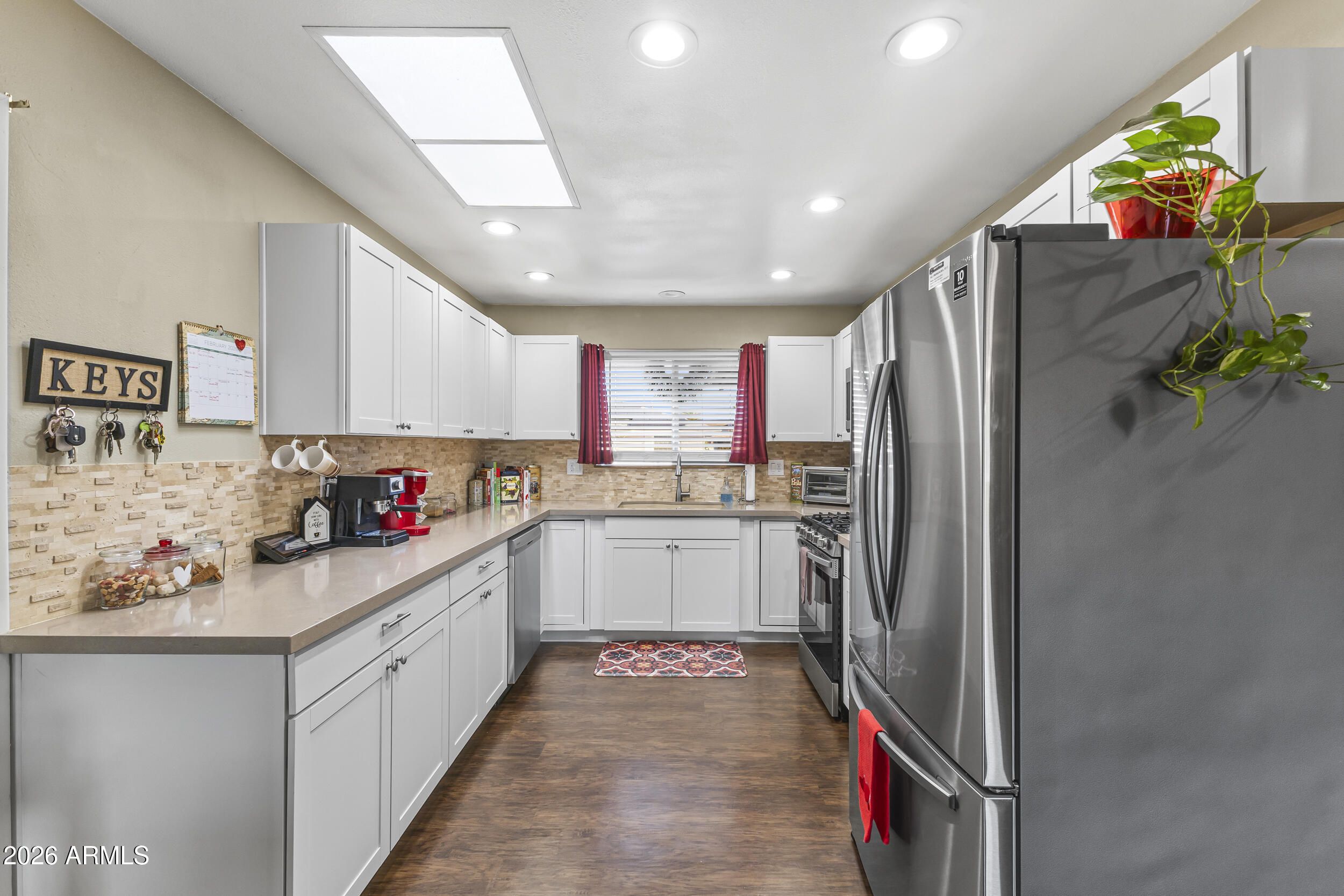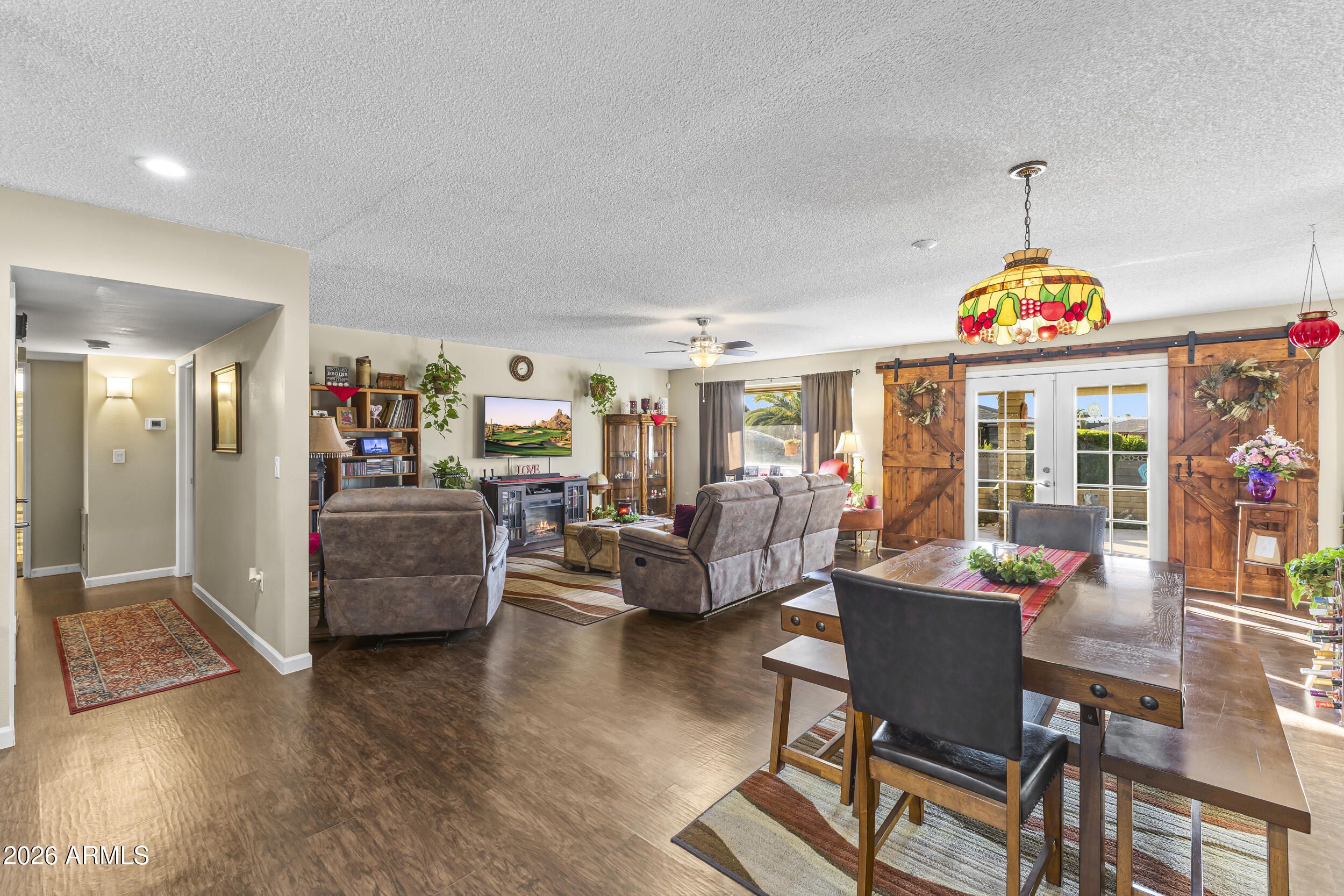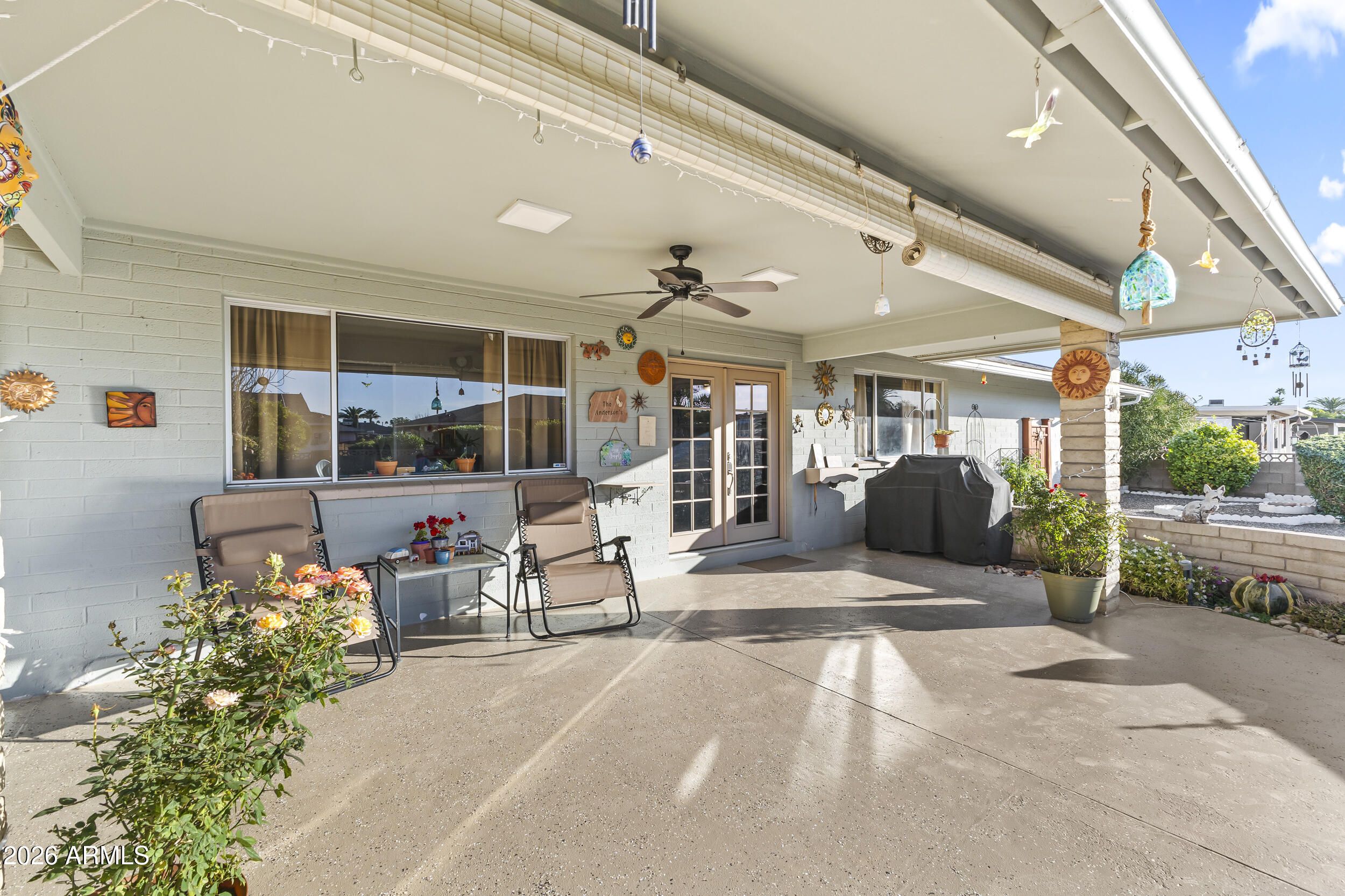 Come see this tastefully updated open floor plan located on a quiet street in beautiful Sun City! Walk in and see the open flow of the home out to the back covered patio through the French doors where you can enjoy a morning cup of coffee or evening glass of wine. This gorgeous home is move-in ready! Newer roof (2021), NEW AC (2024), new cabinets, quartz granite counter tops, and new appliances. Extra bonus room, epoxy garage floors.
