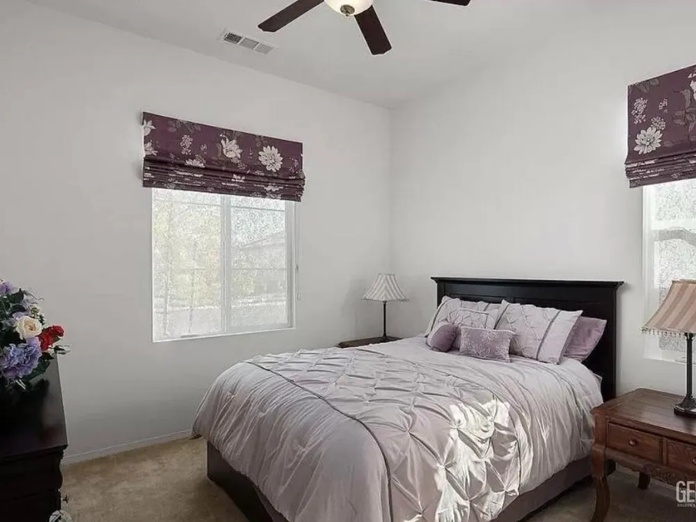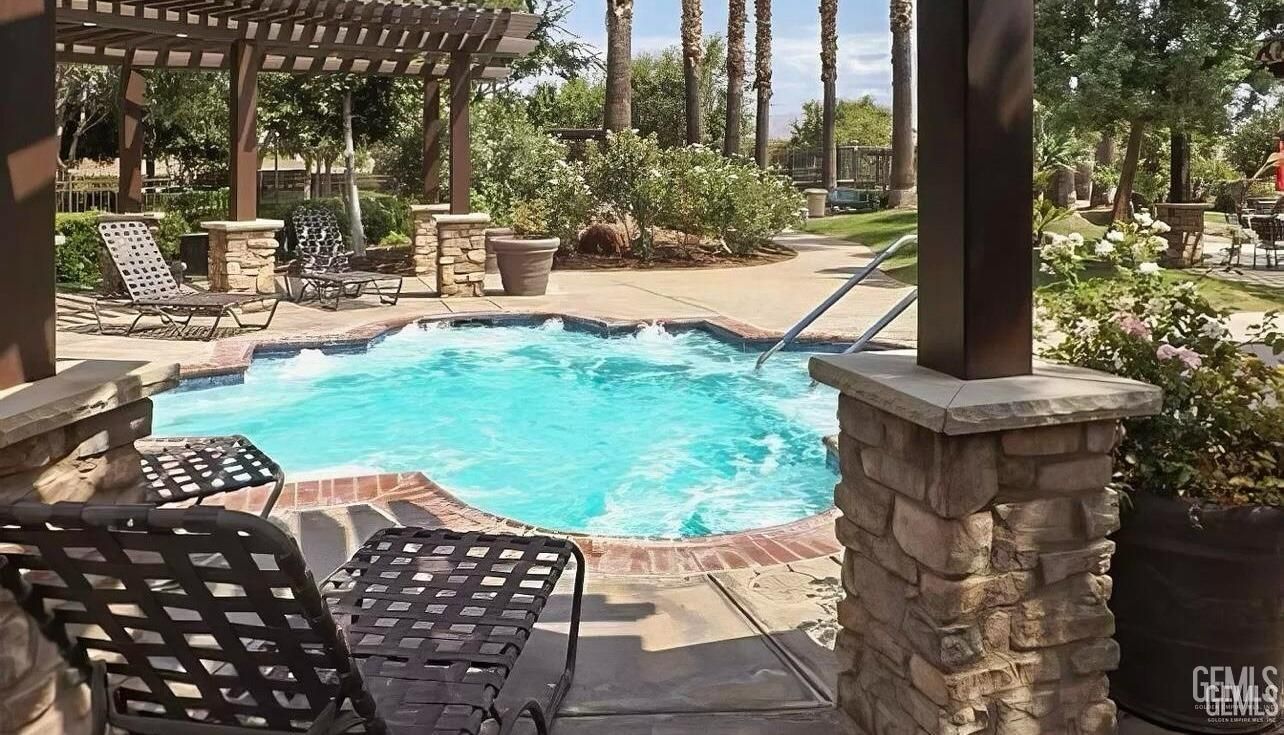 Welcome to the Four Seasons gated community in Bakersfield! This 3 bedroom 3 bathroom home boasts in elegance, open space and lots of natural light! With each bedroom having its own full bathroom, not something you'll easily find! The master suite offers beautiful bay windows, a huge master bathroom w a soaking tub a separate shower and a huge walk in closet! A stunning patio w Munji landscaping and a bubbling fountain. Also a 2 car garage with space for a golf cart or your personal storage. This fabulous 55+gated community w resort type amenities offers much to enjoy including lodge, cafe, tennis court, pickle ball, library, game room, pool, spa, theater, salon and more! This is not just a home, its a life style to enjoy!