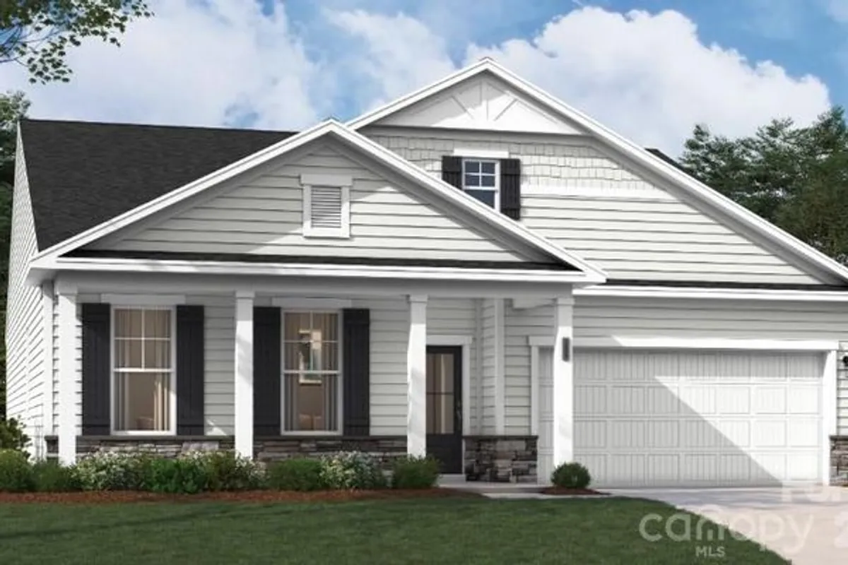 Thoughtfully designed home offering comfort, flexibility, and easy living in a 55+ community. Situated on a desirable interior homesite, this inviting residence features a charming covered front porch—perfect for morning coffee or casual neighbor connections. Offering the ease of main-level living, the home includes a spacious primary suite with a luxurious en-suite bath and walk-in closet, two additional bedrooms, and a full bath. A tucked-away pocket office provides a quiet space for work or hobbies. The kitchen boasts upgraded finishes with a large center island, quartz countertops, and stainless steel appliances, opening to a welcoming living area with a gas fireplace and access to a screened-in back porch overlooking a serene, wooded backdrop for seamless indoor-outdoor living. Combining modern comfort, smart design, and timeless appeal, this home is a standout opportunity—schedule your showing today!