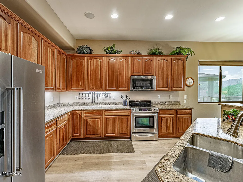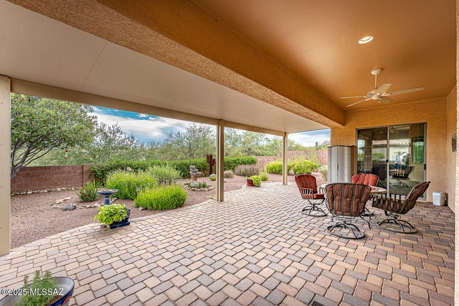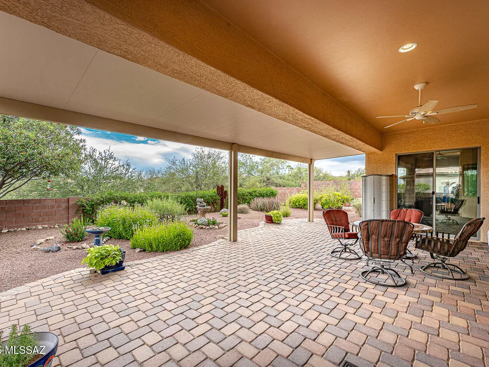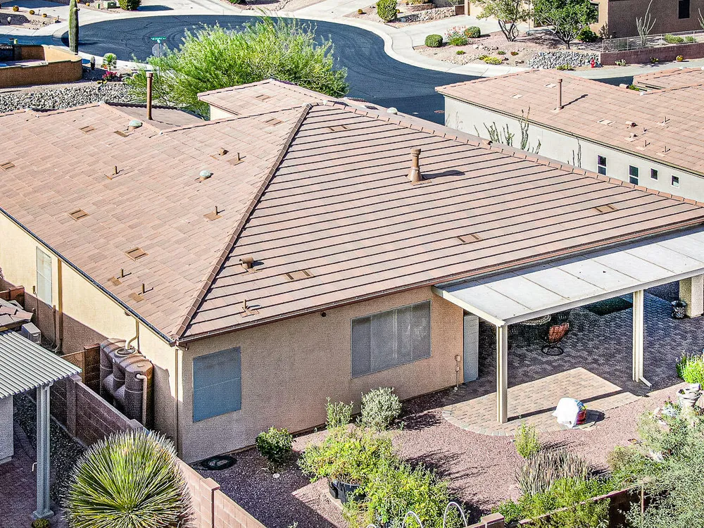 Beautiful Las Campanas Home with Views, 3 Bedroom, 3 Baths, 3 Car Garage - Great Room, Living Room, and a Den/Office. 1st Class Home, so many great features, Tile/Bamboo Flooring, Granite Countertop, Gas Fireplace, Built-In Cabinets, Mini Split (Bedroom#2), Solor Tub, Custom Closet Shelving, just too many features to list them all. A private Back Patio (Backs-Up to Open Desert) would be great for entertainment, a larges water collection system, raised vegetable garden. The roof underlayment was replaced in 2025 (over 20K). Must see this home.