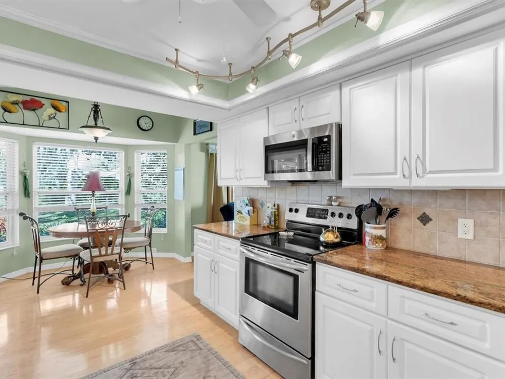 - Cathedral Ceiling(s), Ceiling Fan(s), Crown Molding, Eat-in Kitchen, Kitchen/Family Room Combo, Living/Dining Room, Open Floorplan, Split Bedrooms, Stone Counters, Walk-In Closet(s), Window Treatments