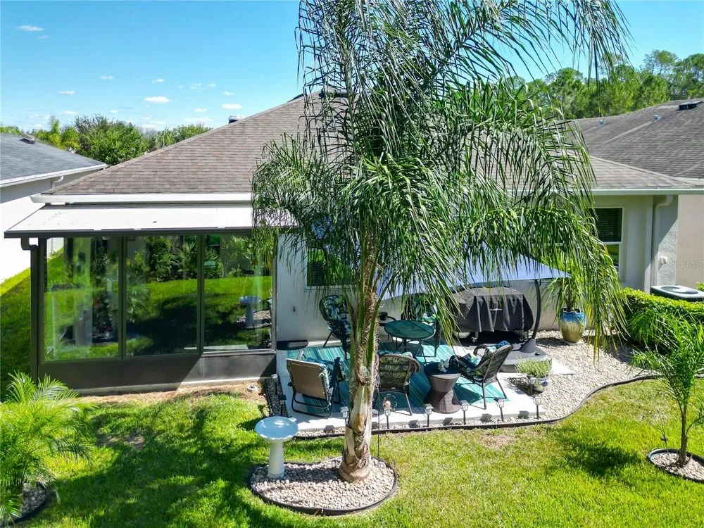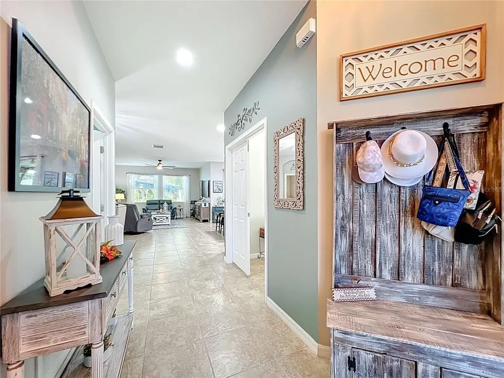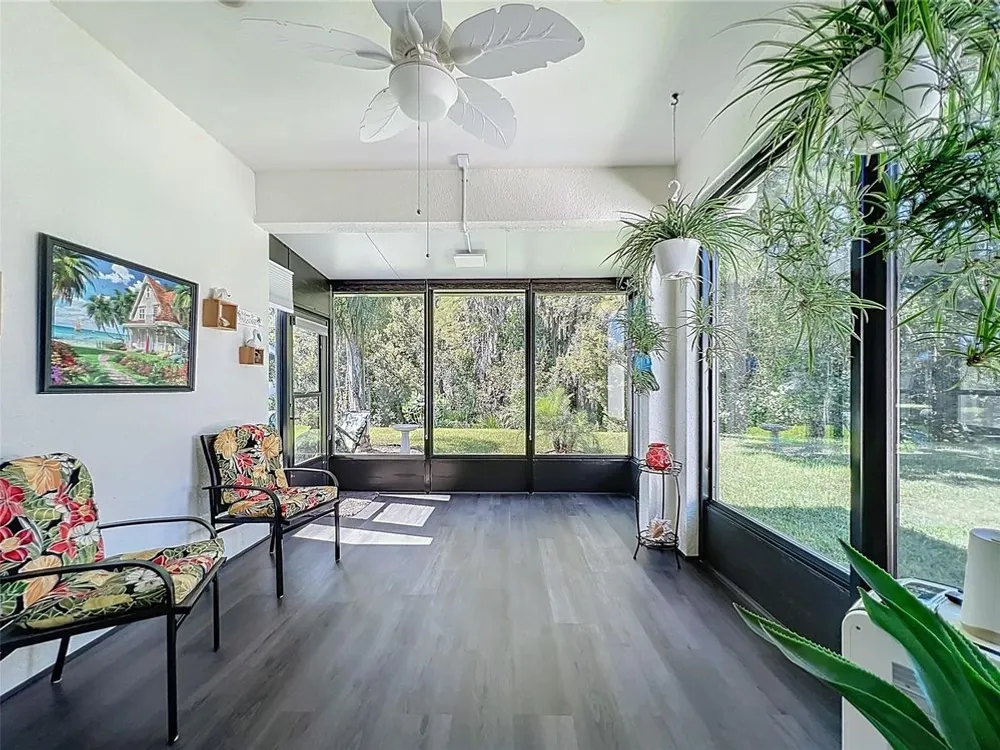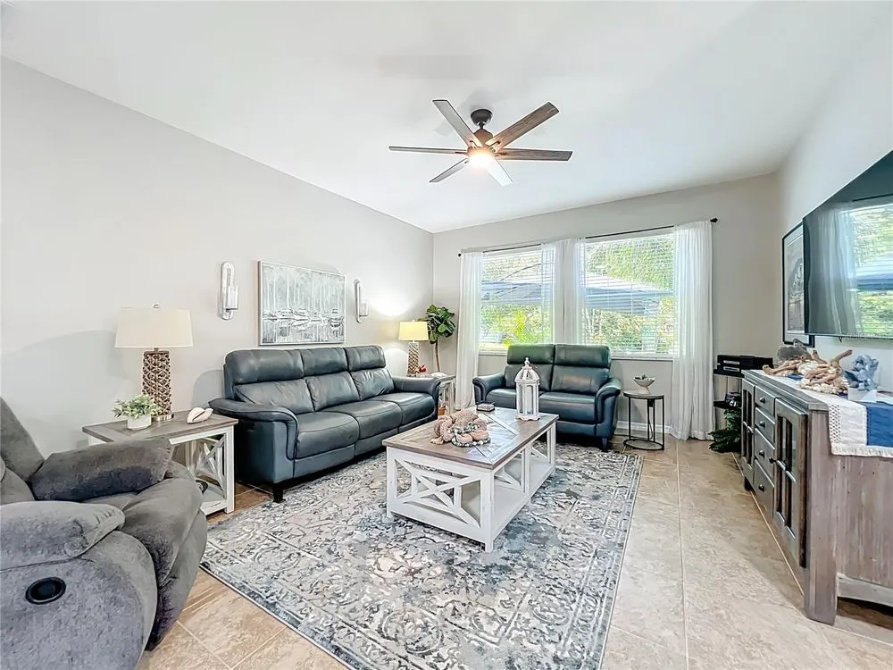 Beautiful, Newer Home located in the fabulous, gated community of Tampa Bay Golf and Country Club a 55 and over community. Built in 2017, this home is truly move-in ready with gorgeous upgrades totaling over 40K. Both bathrooms feature the taller granite vanity counters, tiled showers, and updated lighting. The kitchen features Stainless Steel appliances, Tile Backsplash, and Granite Counters kitchen also has a Walkin pantry and island sink with new quartz counter tops. Very open concept home with the additional 4' extension at time of construction. Large master bedroom has room for king size bed plus sitting area. Tile floor throughout except in primary and two guest bedrooms which have new vinyl plank. Home also features New 13' X12' enclosed Floridia room with double pain windows and A/C overlooking the conservation and a small view of a pond where you just might see a deer or two. Off the Florida room is a 13X11 sitting area / barbecue area. Newly painted Driveway and garage accent the Beautiful new landscaping, other features are Gutters all around, three new skylights, new interior and exterior paint. HOA fee includes Cable, Internet, Lawn Care, not to mention, an unparalleled country-club lifestyle with a 15,000 square-foot clubhouse just renovated to the tune of $1.5 million, two championship golf courses, a full workout facility, library, ballroom, restaurant, bar and much more! You won't want to forget about the two dog parks, tennis and pickle ball courts, shuffleboard, and a variety of activities such as card groups, dance lessons, painting lessons and more. Don't miss out on this peaceful and tranquil home. Schedule your tour today!