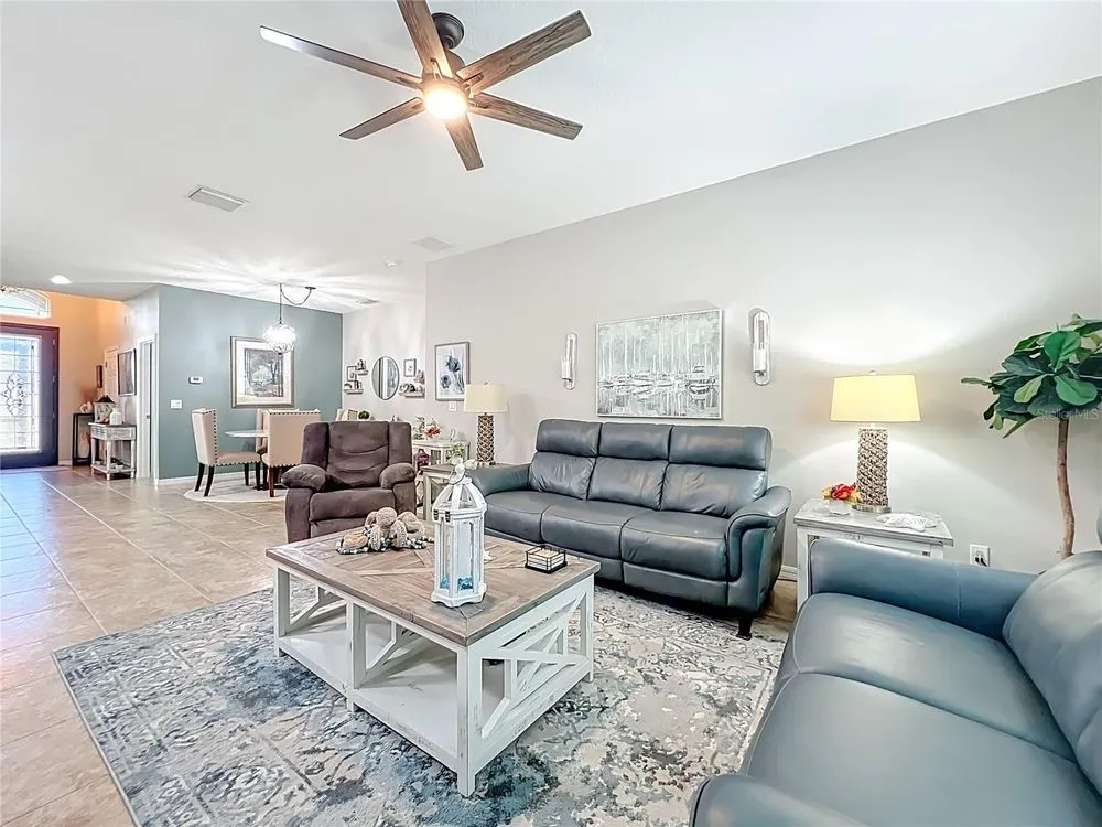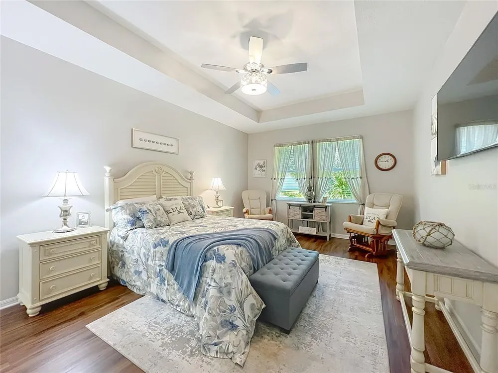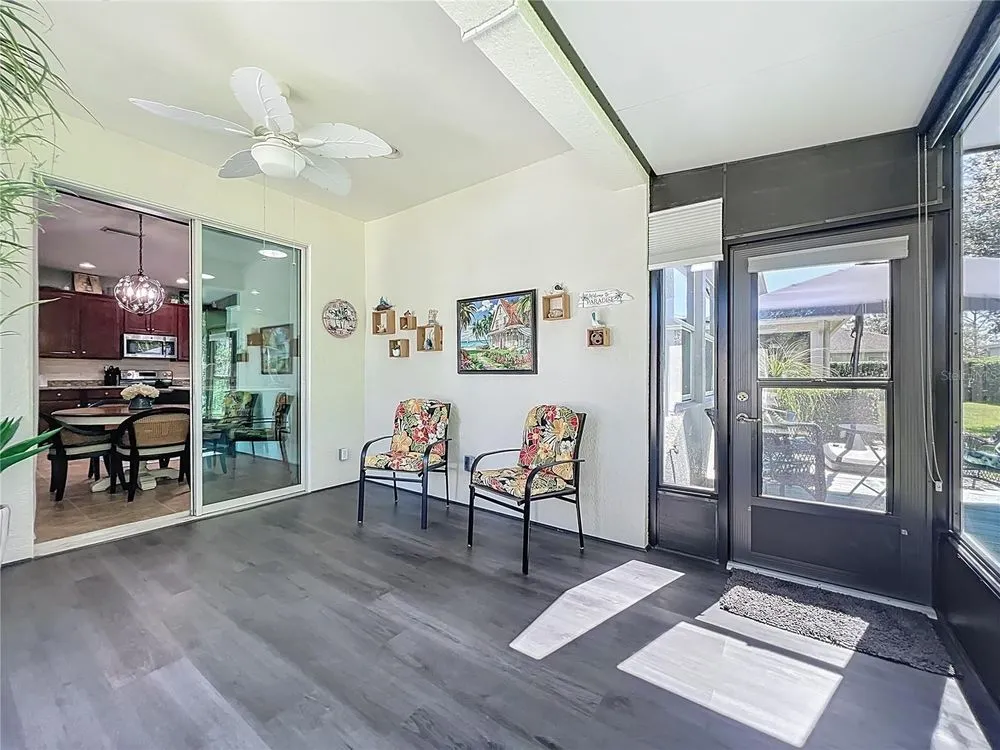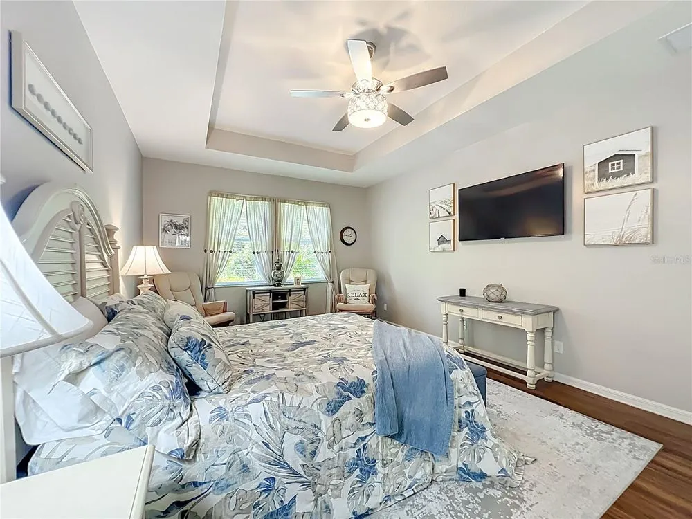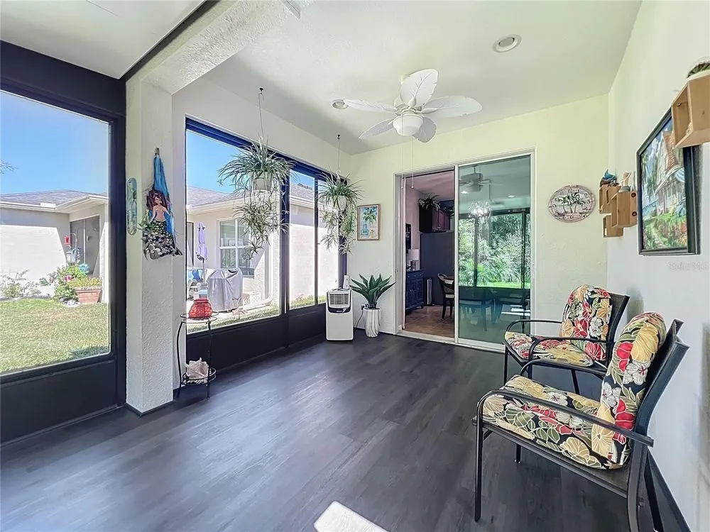 Beautiful, Newer Home located in the fabulous, gated community of Tampa Bay Golf and Country Club a 55 and over community. Built in 2017, this home is truly move-in ready with gorgeous upgrades totaling over 40K. Both bathrooms feature the taller granite vanity counters, tiled showers, and updated lighting. The kitchen features Stainless Steel appliances, Tile Backsplash, and Granite Counters kitchen also has a Walkin pantry and island sink with new quartz counter tops. Very open concept home with the additional 4' extension at time of construction. Large master bedroom has room for king size bed plus sitting area. Tile floor throughout except in primary and two guest bedrooms which have new vinyl plank. Home also features New 13' X12' enclosed Floridia room with double pain windows and A/C overlooking the conservation and a small view of a pond where you just might see a deer or two. Off the Florida room is a 13X11 sitting area / barbecue area. Newly painted Driveway and garage accent the Beautiful new landscaping, other features are Gutters all around, three new skylights, new interior and exterior paint. HOA fee includes Cable, Internet, Lawn Care, not to mention, an unparalleled country-club lifestyle with a 15,000 square-foot clubhouse just renovated to the tune of $1.5 million, two championship golf courses, a full workout facility, library, ballroom, restaurant, bar and much more! You won't want to forget about the two dog parks, tennis and pickle ball courts, shuffleboard, and a variety of activities such as card groups, dance lessons, painting lessons and more. Don't miss out on this peaceful and tranquil home. Schedule your tour today!