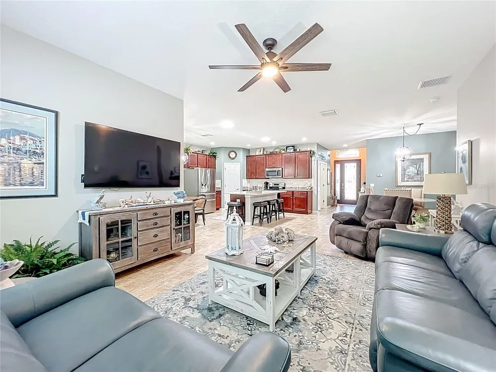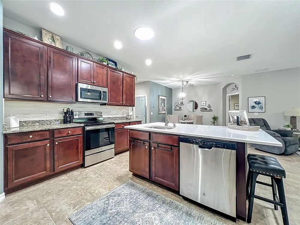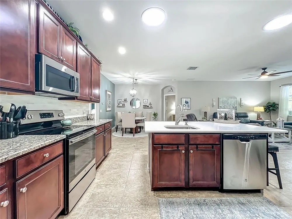- Ceiling Fan(s), Eat-in Kitchen, Kitchen/Family Room Combo, Open Floorplan, Split Bedrooms, Stone Counters, Walk-In Closet(s)