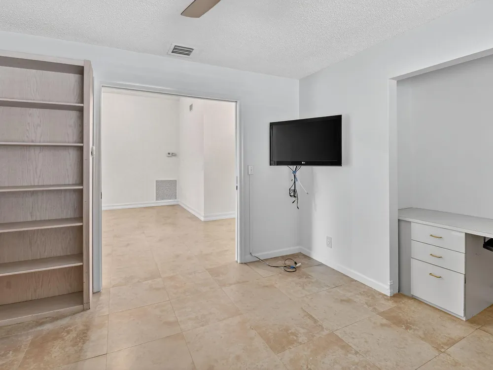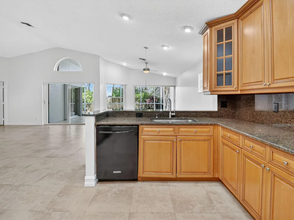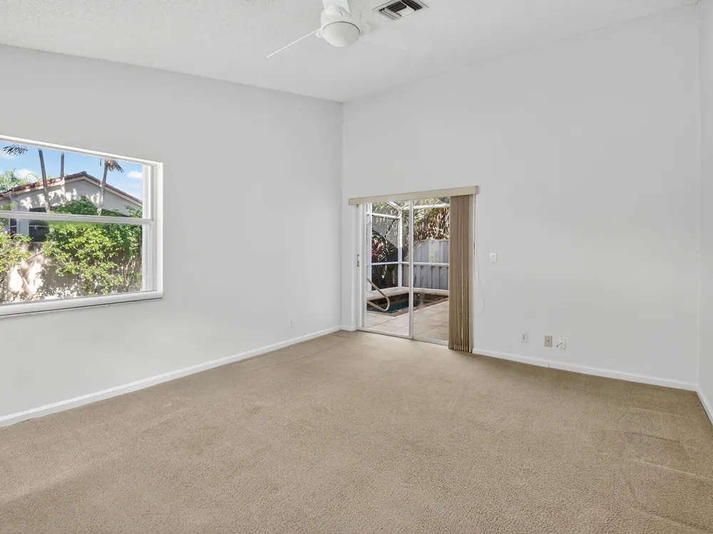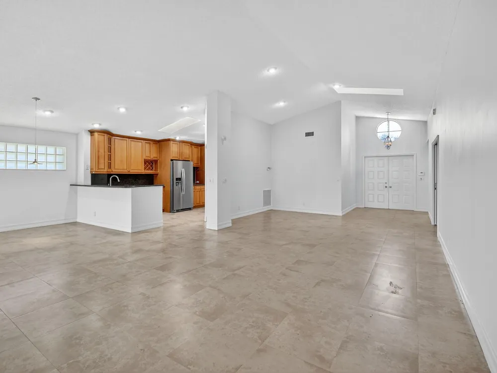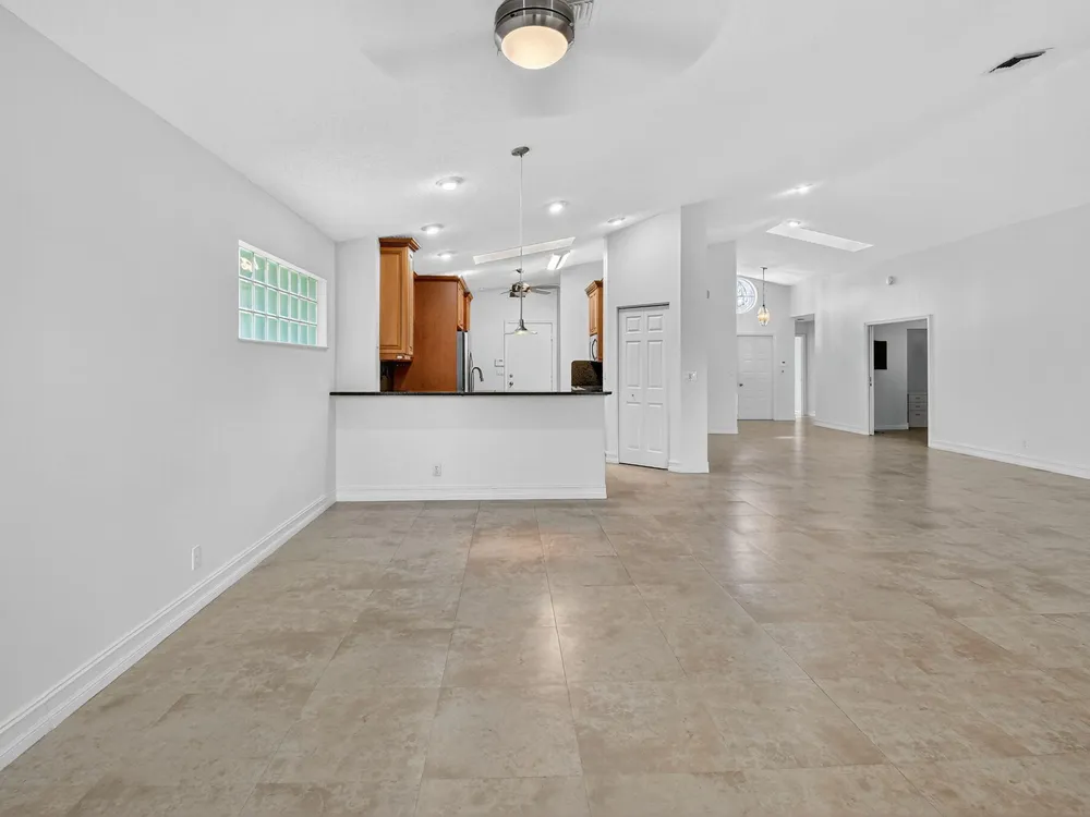 Welcome to a one-of-a-kind home in the vibrant Palm Isles community! This charming 3-bedroom, 2-bathroom residence features a spacious open floor plan and a private inground pool/spa--ideal for entertaining. With porcelain tile throughout and cozy carpeting in two bedrooms, enjoy the elegance of granite countertops, wood cabinets, and stainless steel appliances in the kitchen, alongside convenient pull-out drawers and an oversized washer and dryer.